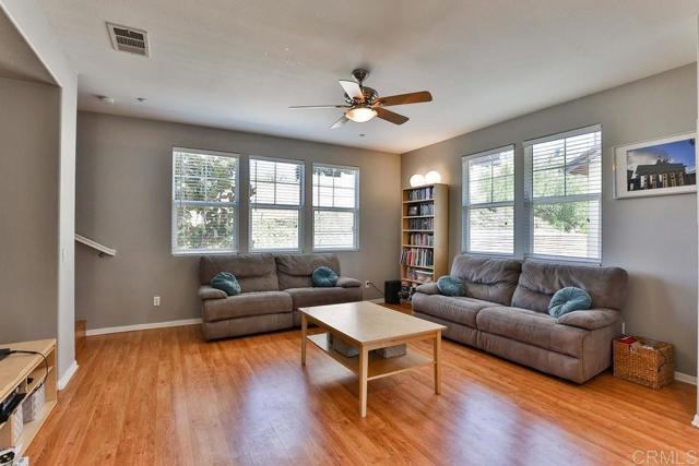 This townhome is located in one of the most quiet and private locations in the entire gated community of Altair. The main living level features a spacious living room & dining room that opens up to a large kitchen with a bonus breakfast nook - or work space. All three bedrooms are located on the third level and the master bedroom features a master bathroom offering ample counter space. The bonus room is located on the main entry level and includes a 1/2 bathroom. This room can be used for a home gym or office, game room or whatever you want to create! The community also has a wonderful pool, spa & play area. This community is freeway close to both the 52 and 67.