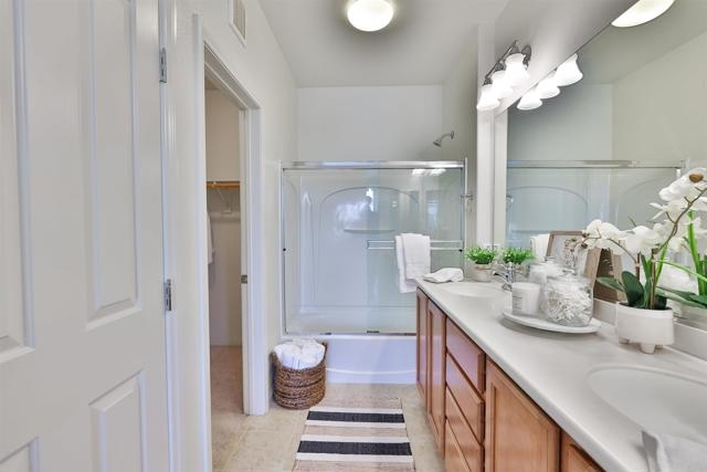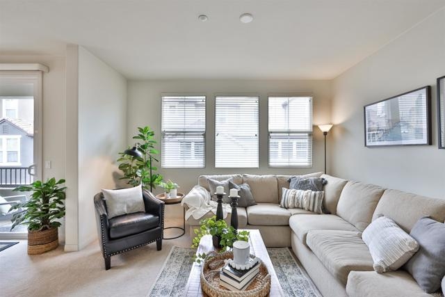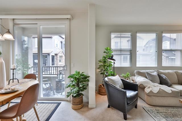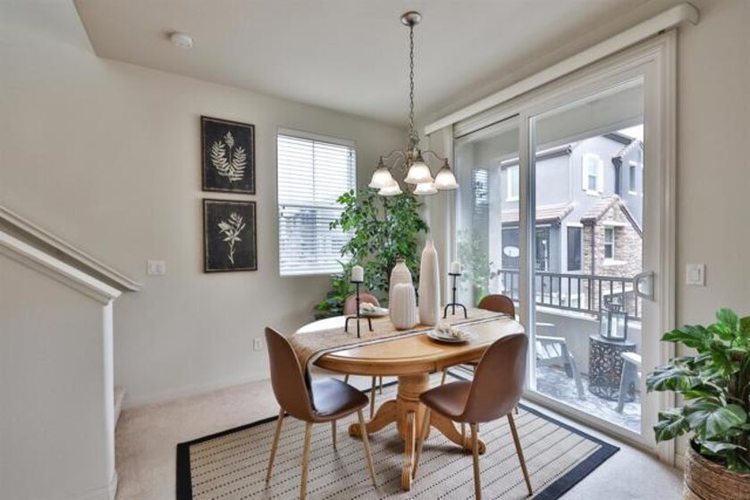 Contemporary townhome nestled within the coveted community of Aubrey Glen. This 2 bed, 2.5 bath home offers an inviting and modern open-concept living space full of natural light and perfect for entertaining. The spacious and luxurious primary suite includes a window bench and an ensuite bathroom with dual sinks and a walk-in closet. Additional features of this wonderful home include central air conditioning, dual paned windows, full size in-unit laundry, a cozy balcony with room for a BBQ, and a large 2 car garage with direct access into the home. Aubrey Glen offers an open green space and heated pool and spa. Conveniently located in western Santee, near Mission Trails, restaurants and shopping with easy freeway access.