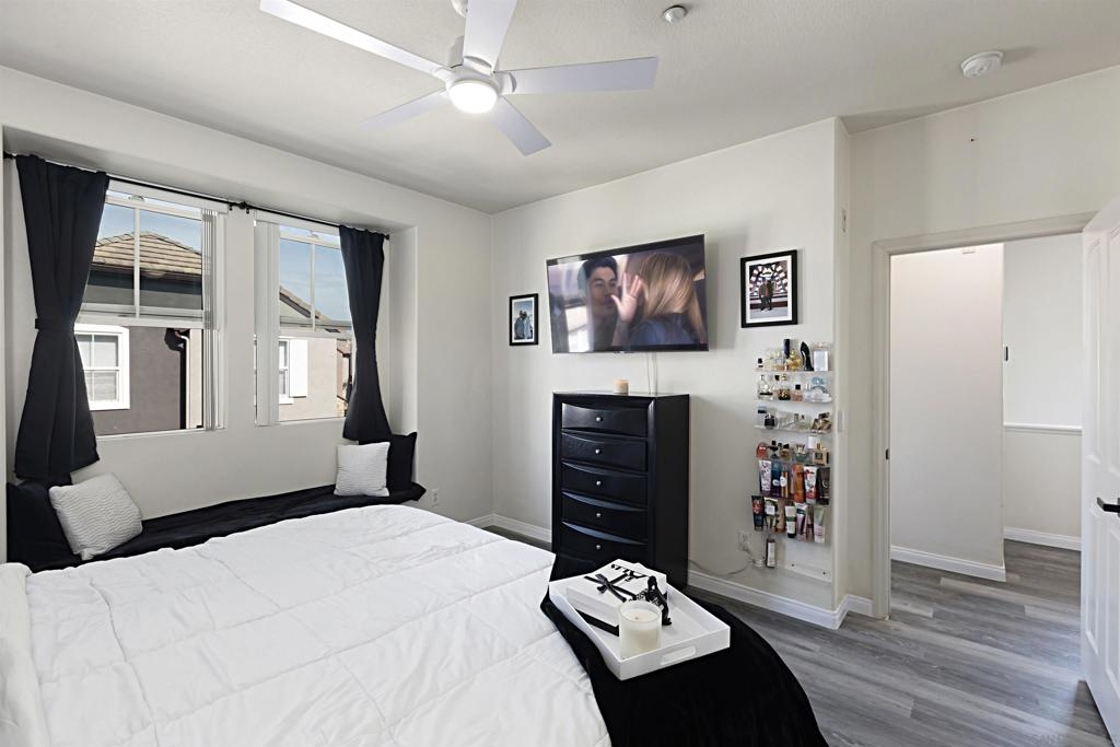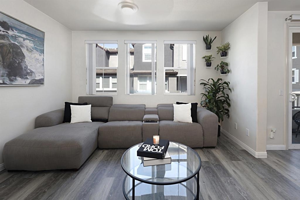 This three-story townhouse features 2 bedrooms and 2.5 bathrooms, with an attached two-car garage is equipped with paid off solar panels and whole house water filtration and softener system. The modern kitchen is equipped with SMART app based newer appliances including: gas stove, microwave, refrigerator, washer and dryer, and ECOBEE thermostat. Dining area opens into the living room, creating a spacious and inviting atmosphere. The luxury vinyl flooring throughout the home adds a touch of elegance and is easy to maintain. The top floor boasts a primary bedroom with a walk-in closet and direct access to a full bathroom. The second bedroom is equally spacious and has convenient access to a full hall bathroom. The second-floor living area includes a stylish powder room, perfect for guests. This home is equipped with fully paid solar panels, a water filtration system, and a water softener, making it an eco-friendly and sustainable choice. The washer and dryer are conveniently located in the unit, adding to the convenience of this home. Located in a desirable condominium complex built in 2007, this home offers access to a community pool, perfect for those hot summer days. The complex is conveniently located near an abundance of shopping and dining options, making it easy to enjoy all that the area has to offer. This property is a great opportunity for anyone looking for a modern and sustainable home in a prime location. Don't miss out on this chance to make this beautiful townhouse your own!