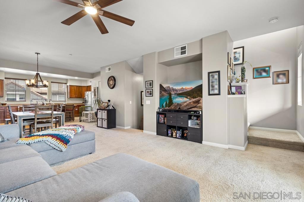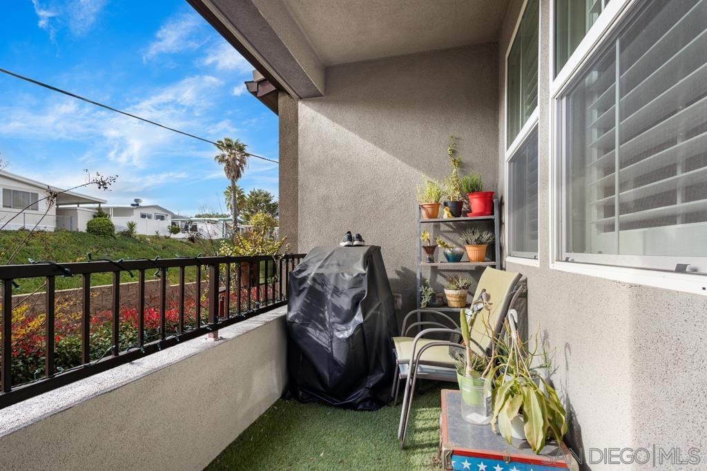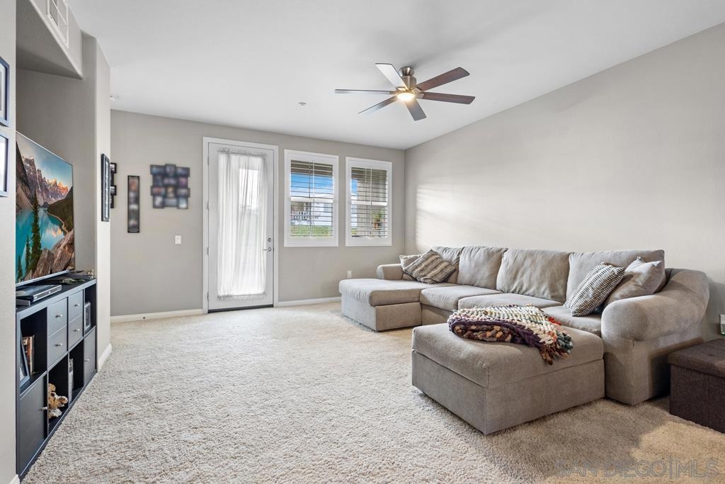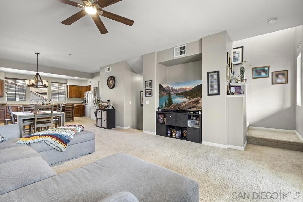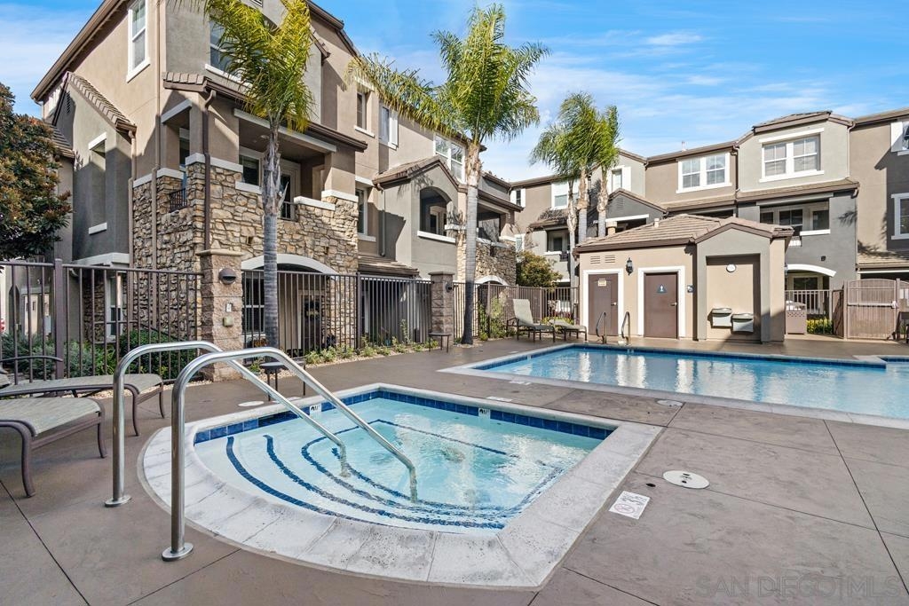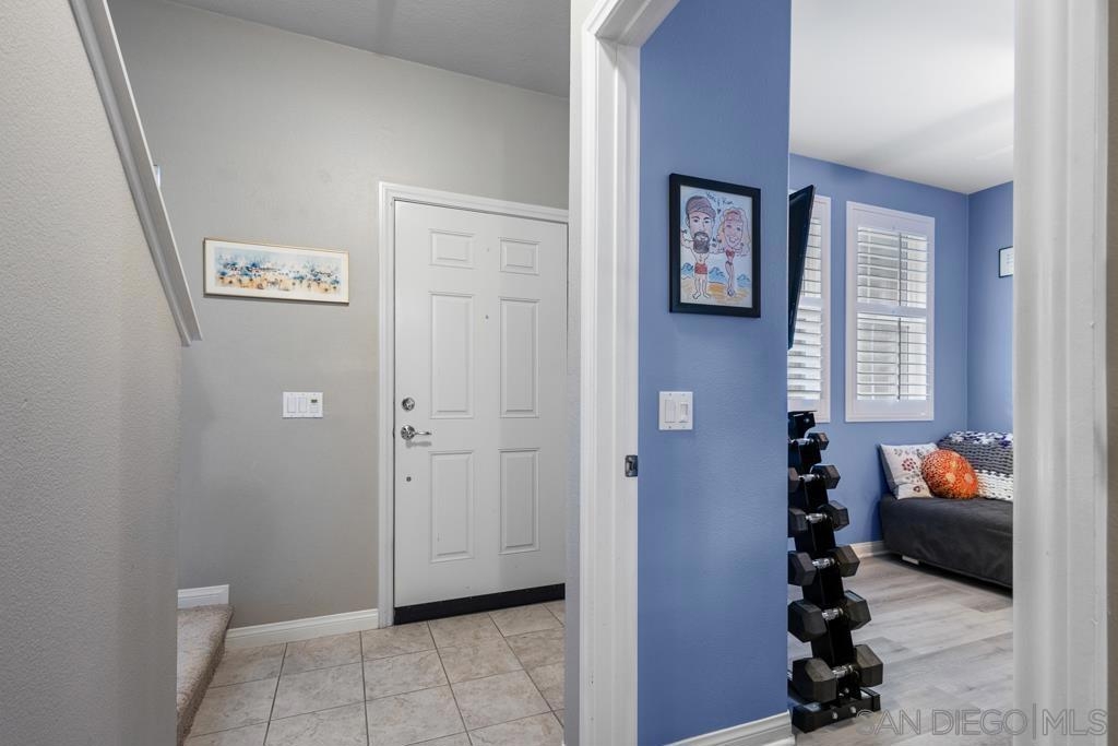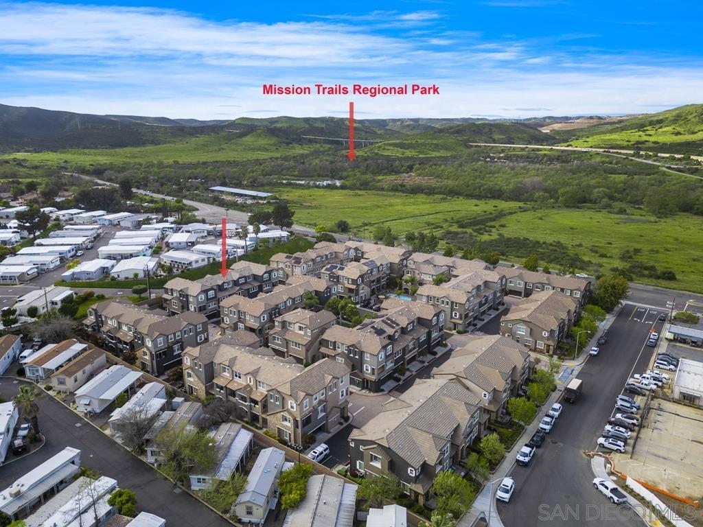 Beautifully maintained & highly upgraded 3 story townhome located at the highly sought after Aubrey Glen community. A multitude of amenities too numerous to list. Please reference Supplemental Section for more detailed information. Nestled within the south west corner of Santee, this residence provides for very convenient freeway access with minimal traffic exposure. Close to restaurants, stores, schools and public parks/ Mission Trails Regional Park/ Santee Lakes as well as the Carlton Oaks Golf Course. The Aubrey Glen community hosts several family friendly events throughout the year, including a Halloween party & parade for kids, movies on the grass, Easter and other holiday potlucks. Come view this condo before it's scooped up into contract. This home is replete with the following: Custom window plantation shutters throughout. New vanity & faucet in downstairs bathroom. New flooring in downstairs bedroom (luxury vinyl). First floor bedroom's (downstairs) entry is ADA compliant. Stairway closet maximizes storage space. All closet doors are mirrored. New tile in downstairs hallway & laundry room. Ceiling fans installed in each bedroom as well as the living room. Installed light dimmer switches in kitchen & living room. New stainless appliances to include double oven (Bluetooth enabled) as well as a new garbage disposal. The dishwasher, double oven ( of which one is a convection oven) & microwave are GE Profile. The refrigerator is a Whirlpool 4 (middle drawer has its own temperature setting depending on items). Spacious island conducive to entertaining. Dining room has built in entertainment center. Living boasts an alcove for the TV. Increased ceiling height affords greater space and sense of well being. Balcony has faux grass & wood. Custom barn door in primary bathroom. New custom cabinets/shelves above washer/dryer (these specific appliances will not convey). New water heater. New garage storage racks above. Built in cabinet upper and lower in garage. Recent service and new cables and hardware for electric garage door. Ring doorbell and video keypad for garage (utilized for deliveries & minimizes possible theft). Refrigerator in garage does not convey.