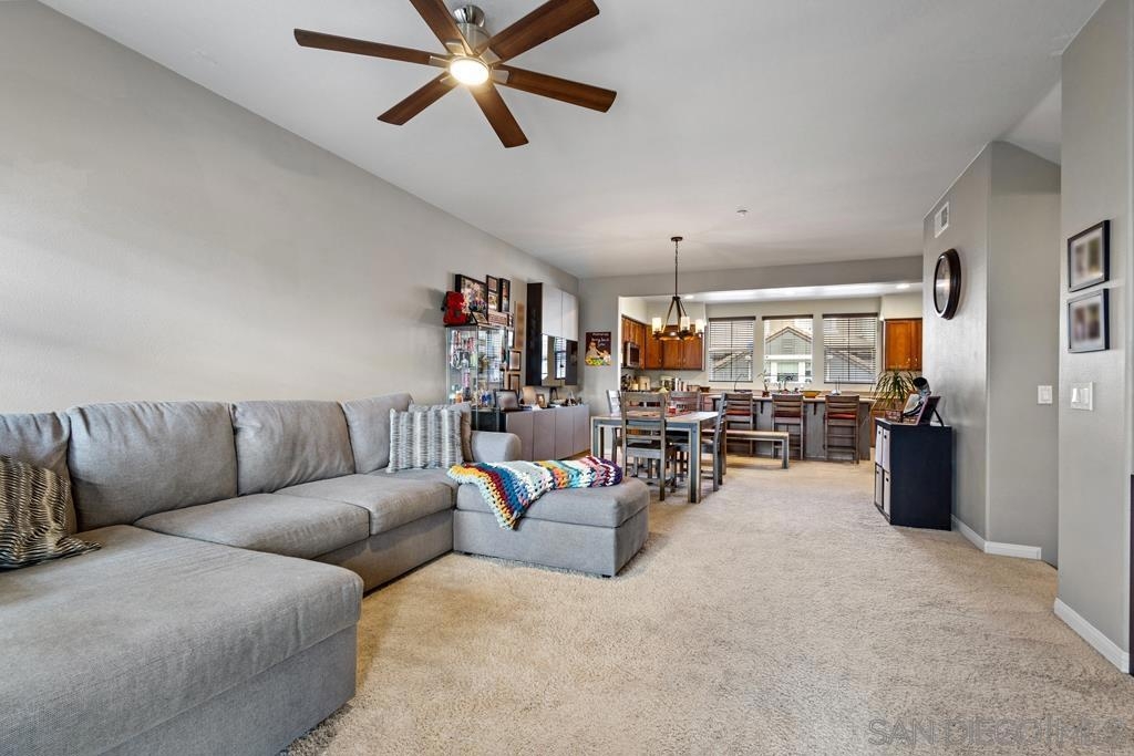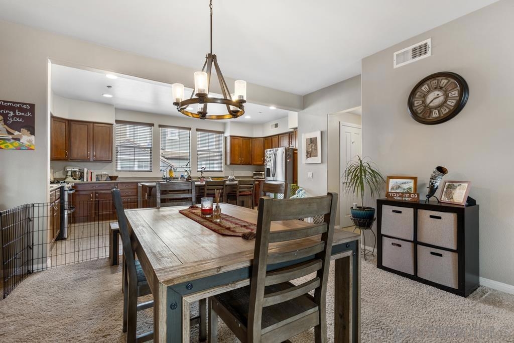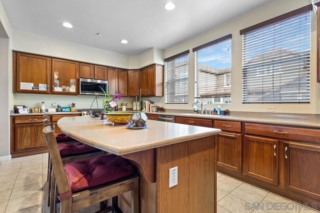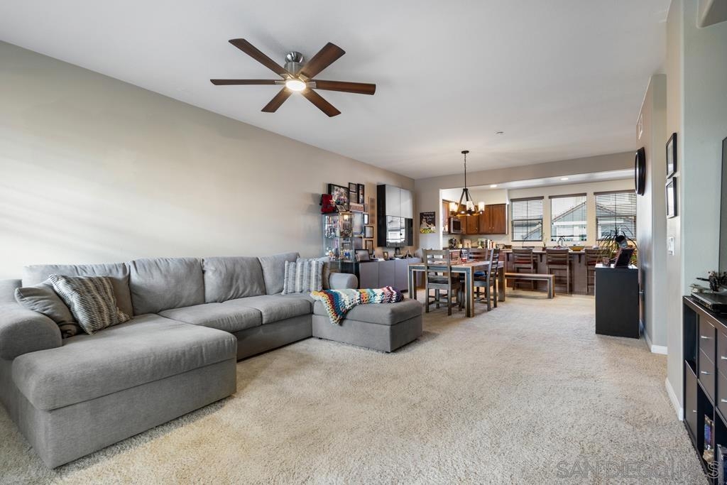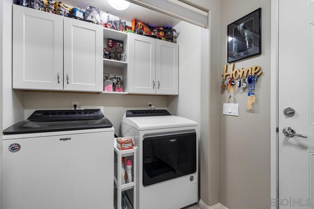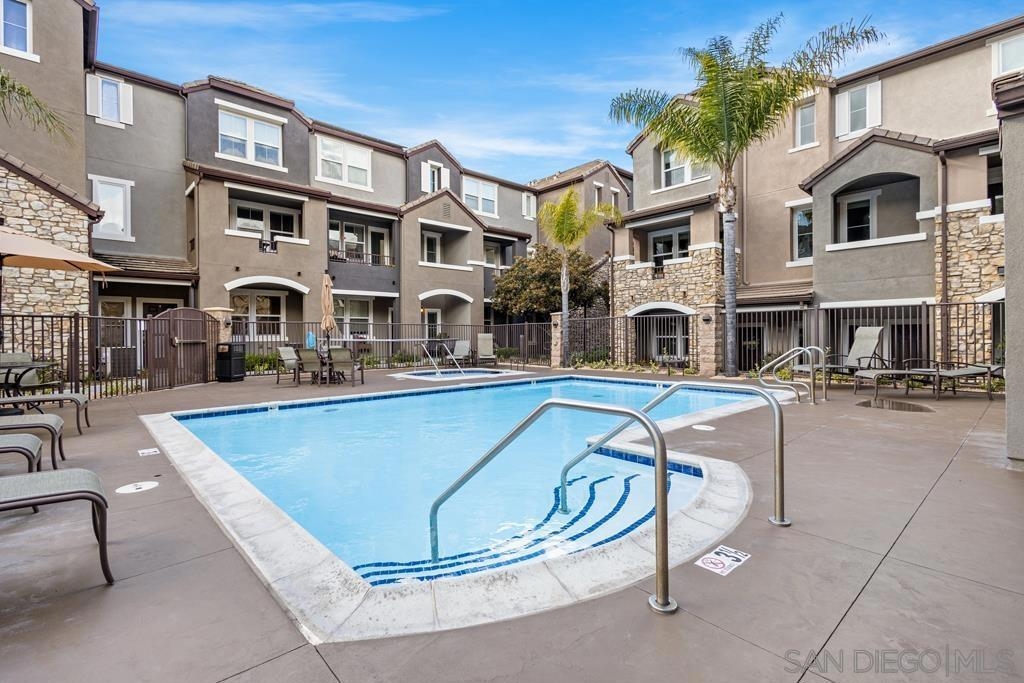 Beautifully maintained & highly upgraded 3 story townhome located at the highly sought after Aubrey Glen community. A multitude of amenities too numerous to list. Please reference Supplemental Section for more detailed information. Nestled within the south west corner of Santee, this residence provides for very convenient freeway access with minimal traffic exposure. Close to restaurants, stores, schools and public parks/ Mission Trails Regional Park/ Santee Lakes as well as the Carlton Oaks Golf Course. The Aubrey Glen community hosts several family friendly events throughout the year, including a Halloween party & parade for kids, movies on the grass, Easter and other holiday potlucks. Come view this condo before it's scooped up into contract. This home is replete with the following: Custom window plantation shutters throughout. New vanity & faucet in downstairs bathroom. New flooring in downstairs bedroom (luxury vinyl). First floor bedroom's (downstairs) entry is ADA compliant. Stairway closet maximizes storage space. All closet doors are mirrored. New tile in downstairs hallway & laundry room. Ceiling fans installed in each bedroom as well as the living room. Installed light dimmer switches in kitchen & living room. New stainless appliances to include double oven (Bluetooth enabled) as well as a new garbage disposal. The dishwasher, double oven ( of which one is a convection oven) & microwave are GE Profile. The refrigerator is a Whirlpool 4 (middle drawer has its own temperature setting depending on items). Spacious island conducive to entertaining. Dining room has built in entertainment center. Living boasts an alcove for the TV. Increased ceiling height affords greater space and sense of well being. Balcony has faux grass & wood. Custom barn door in primary bathroom. New custom cabinets/shelves above washer/dryer (these specific appliances will not convey). New water heater. New garage storage racks above. Built in cabinet upper and lower in garage. Recent service and new cables and hardware for electric garage door. Ring doorbell and video keypad for garage (utilized for deliveries & minimizes possible theft). Refrigerator in garage does not convey.
