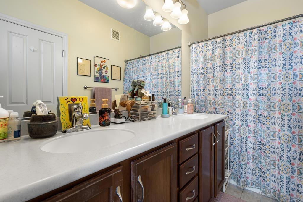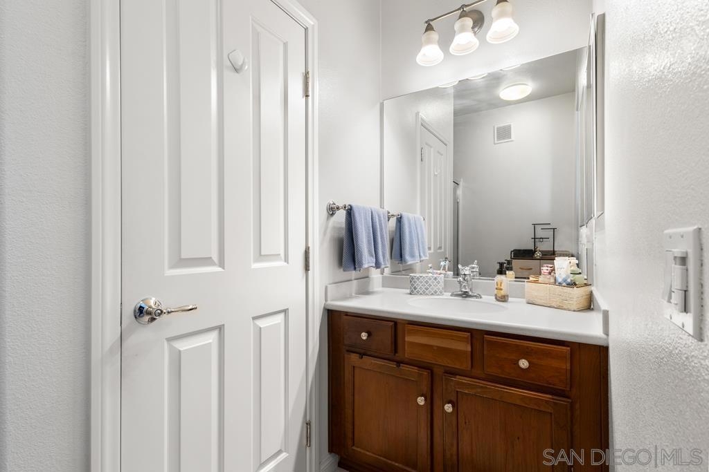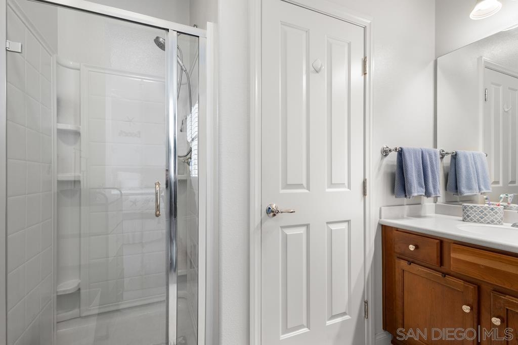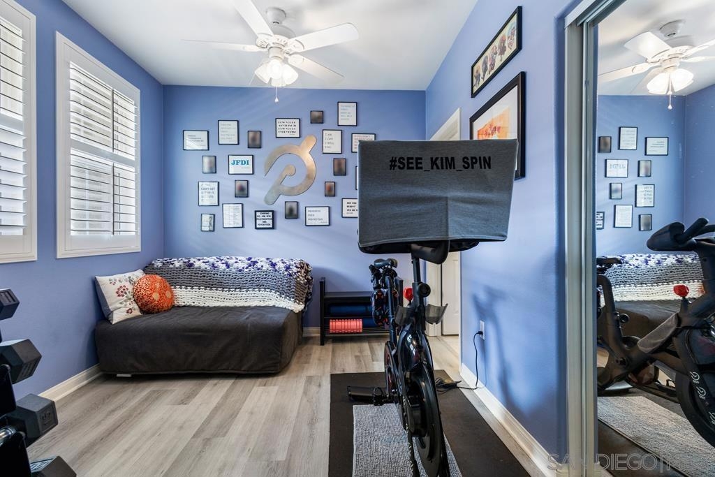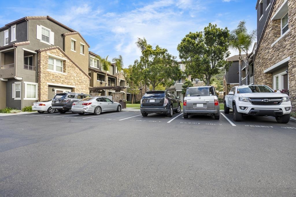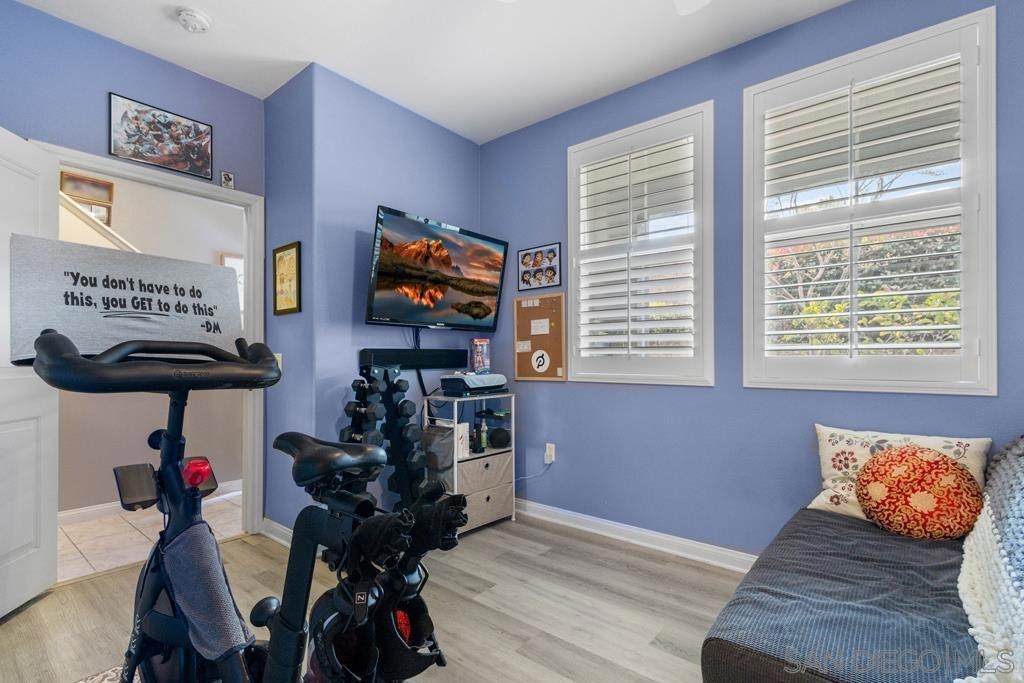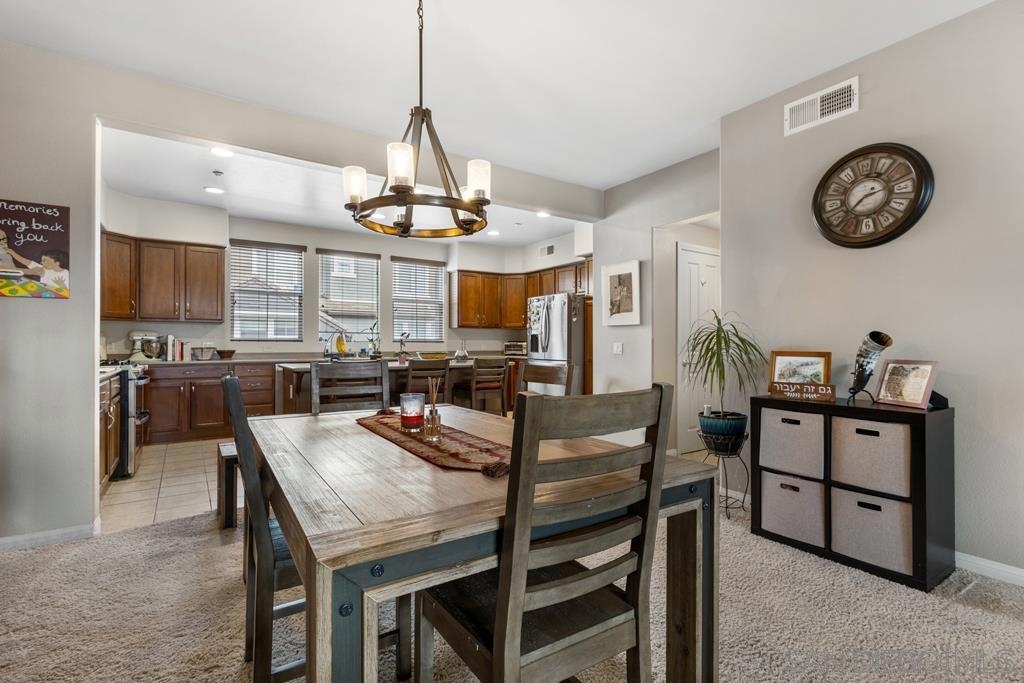 Beautifully maintained & highly upgraded 3 story townhome located at the highly sought after Aubrey Glen community. A multitude of amenities too numerous to list. Please reference Supplemental Section for more detailed information. Nestled within the south west corner of Santee, this residence provides for very convenient freeway access with minimal traffic exposure. Close to restaurants, stores, schools and public parks/ Mission Trails Regional Park/ Santee Lakes as well as the Carlton Oaks Golf Course. The Aubrey Glen community hosts several family friendly events throughout the year, including a Halloween party & parade for kids, movies on the grass, Easter and other holiday potlucks. Come view this condo before it's scooped up into contract. This home is replete with the following: Custom window plantation shutters throughout. New vanity & faucet in downstairs bathroom. New flooring in downstairs bedroom (luxury vinyl). First floor bedroom's (downstairs) entry is ADA compliant. Stairway closet maximizes storage space. All closet doors are mirrored. New tile in downstairs hallway & laundry room. Ceiling fans installed in each bedroom as well as the living room. Installed light dimmer switches in kitchen & living room. New stainless appliances to include double oven (Bluetooth enabled) as well as a new garbage disposal. The dishwasher, double oven ( of which one is a convection oven) & microwave are GE Profile. The refrigerator is a Whirlpool 4 (middle drawer has its own temperature setting depending on items). Spacious island conducive to entertaining. Dining room has built in entertainment center. Living boasts an alcove for the TV. Increased ceiling height affords greater space and sense of well being. Balcony has faux grass & wood. Custom barn door in primary bathroom. New custom cabinets/shelves above washer/dryer (these specific appliances will not convey). New water heater. New garage storage racks above. Built in cabinet upper and lower in garage. Recent service and new cables and hardware for electric garage door. Ring doorbell and video keypad for garage (utilized for deliveries & minimizes possible theft). Refrigerator in garage does not convey.