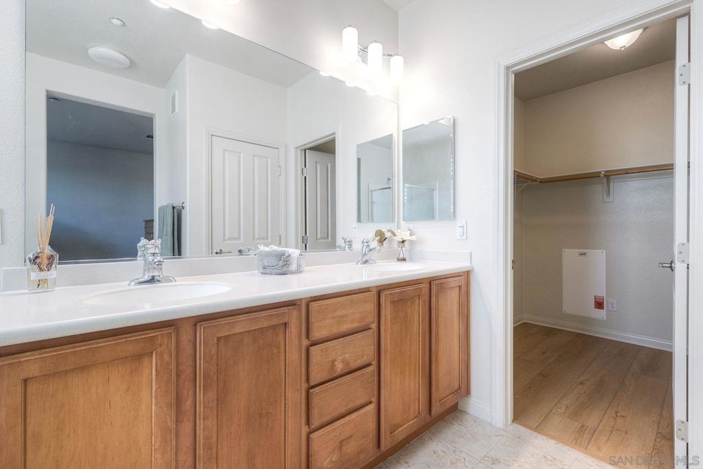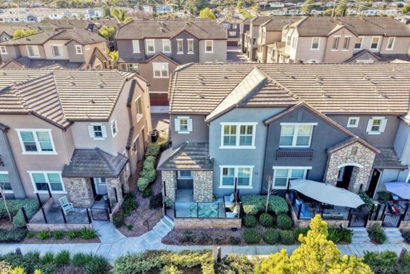 Turnkey 3 bedroom 2 1/2 bath 2007 Construction end unit townhome in West Santee. Additional office space with built in desk. New Luxury vinyl flooring, stainless steel appliances and fresh paint. Full size indoor laundry on 2nd floor. Stylish plantation shutters, new bathroom light fixtures. Lovely primary bedroom with walk in closet and soaking tub. Custom built in cabinetry in the 2 car garage. Low HOA and No Mello Roo. Well maintained pet friendly community. Close to the 52, 125, Mission Trails, Shopping and Great schools. Lovely community of West Santee is close to Trader Joes, Costco and tons of shopping. Pride of ownership home and well maintained community of Aubrey Glen on the cusp of Del Cerro and Mission Trails. No mello roo community. Great schools from k-8.