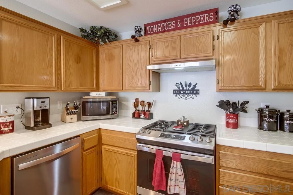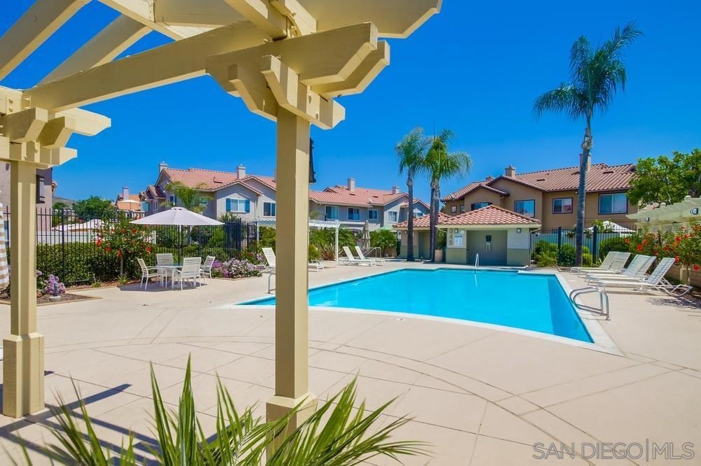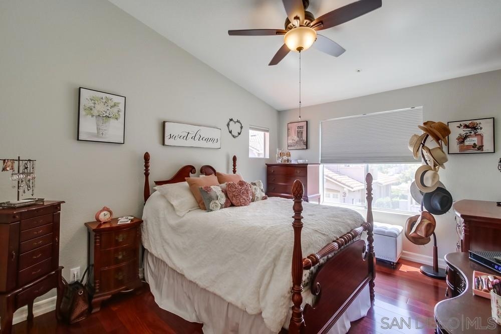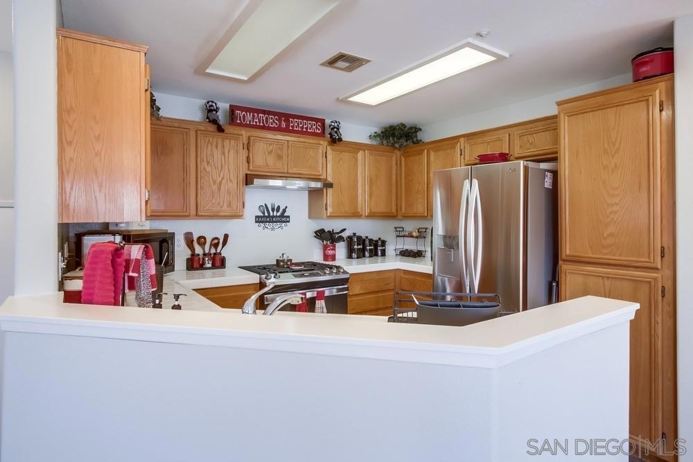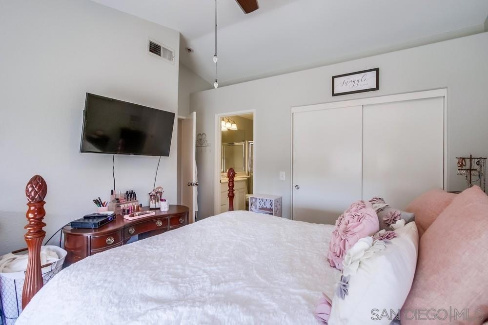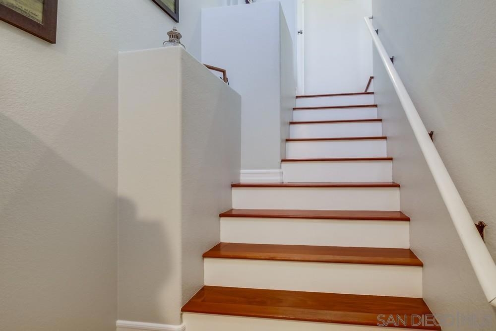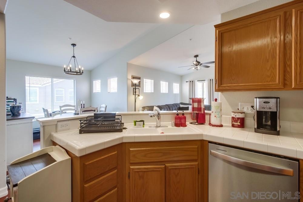 PRICED TO SELL!! LOWEST $$ 2/2 WITH 2 CAR GARAGE IN SANTEE!!! Welcome to this Beautifully Upgraded 2-Bedroom, 2-Bath Condo in the Heart of Santee. This home is in the highly sought after complex of California Mariposa. This 2-story corner unit is perfectly situated in a prime location. Upon entry, a striking cherry wood staircase leads to a light-filled living room featuring Vaulted ceilings, an open floor plan, and elegant cherry hardwood flooring throughout the home. Designer ceiling fans, faux wood blinds, and abundant natural light enhance the home’s warm, inviting feel. A cozy gas fireplace anchors the living space, creating a perfect setting for relaxation or entertaining. The dining area flows seamlessly into the kitchen, which is perfect for gatherings and everyday living. The kitchen boasts of newer stainless-steel appliances, recessed lighting, tile countertops and flooring, plus rich wood cabinetry. The master bedroom includes its own private bath, while the second bedroom is equally spacious. A hallway bath offers a shower/tub combination for added convenience. The HVAC system was replaced approximately 5 years ago offering comfort and peace of mind. From the living room, step out onto the inviting balcony—perfect for enjoying your morning coffee or relaxing after a long day. The finished garage offers an automatic roll-up door, workbench, storage space, and laundry hookups. Community amenities include a sparkling pool, spa, and playground. It is conveniently located within walking distance to shopping, dining, parks, trails, schools and freeways!