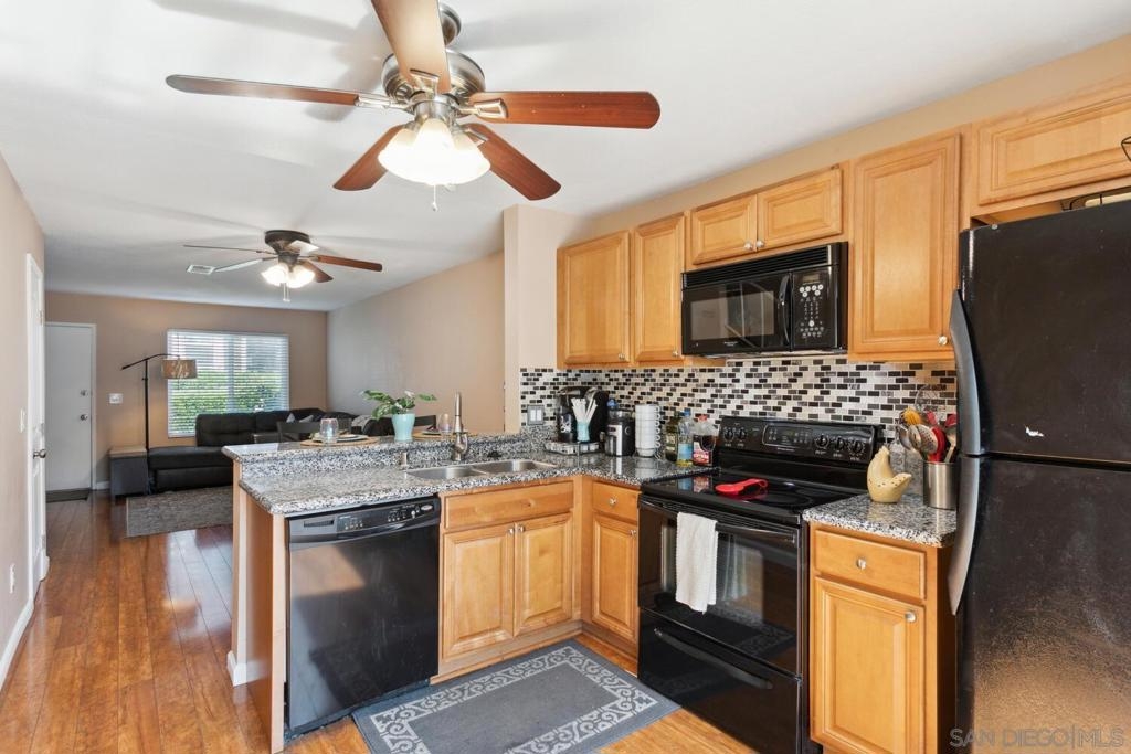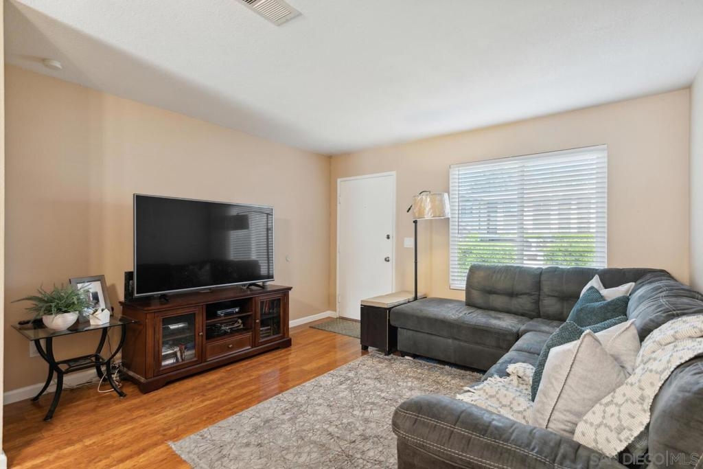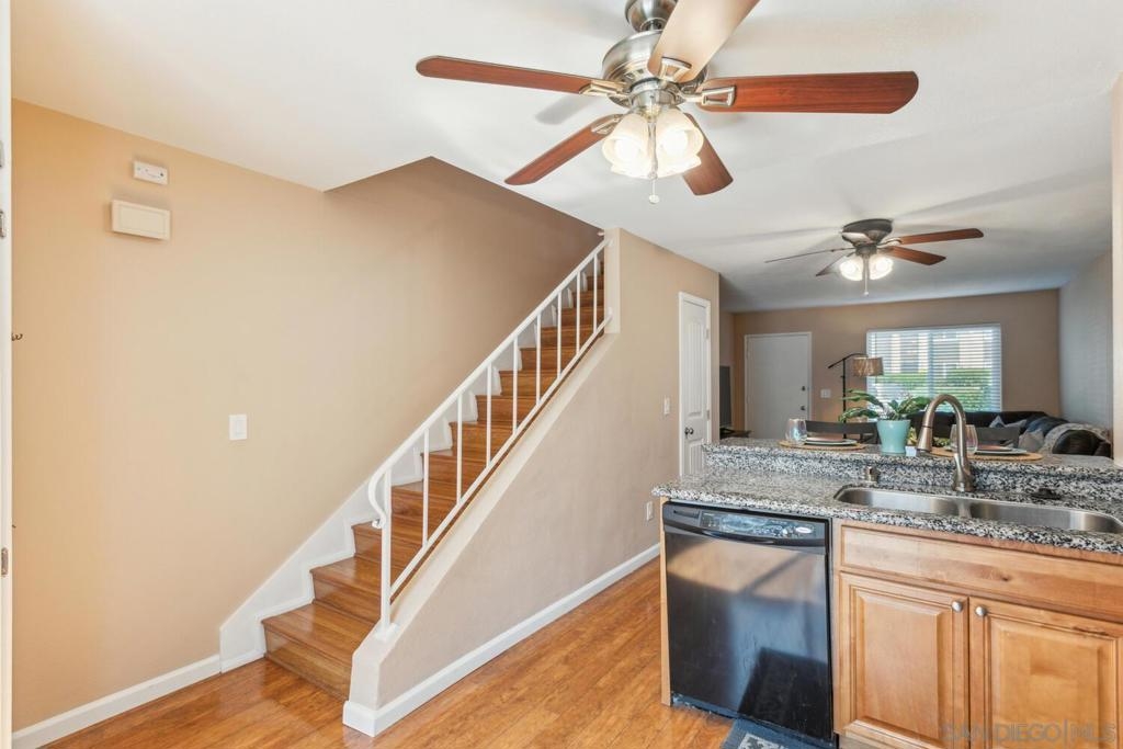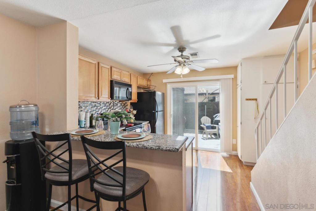 One of the best priced condos in Santee with so many upgrades!! Bring an offer today! With modern touches throughout, this well-maintained property is move-in ready and designed for your comfort. Upgraded dual pane windows, ceiling fans, and central heat & A/C ensure year-round comfort! The spacious kitchen with granite countertops, solid wood cabinetry, a stylish tile backsplash, and a convenient storage pantry. Wood laminate flooring upstairs and downstairs, complemented by bright, airy upstairs rooms. Step outside to your private patio, perfect for relaxing or hosting gatherings, complete with a large storage closet. Plus, enjoy the convenience of a garage with a laundry area, as well as ample open parking just steps away. Located near shopping, dining, schools, and easy highway access, this home offers the ideal blend of modern living and convenience. Make it yours today!