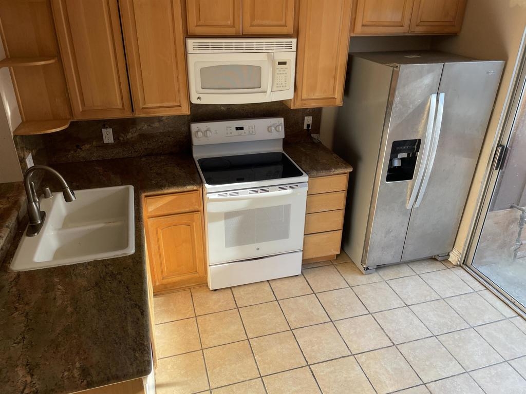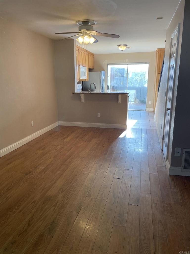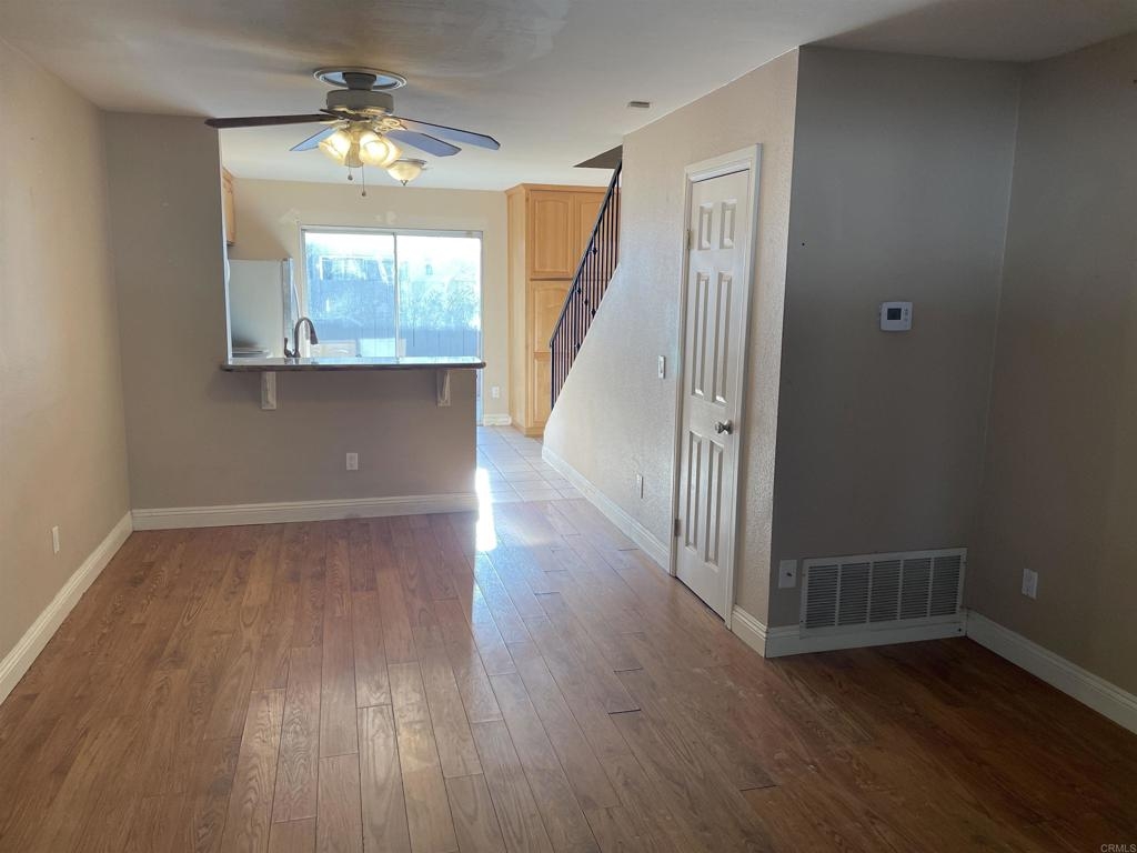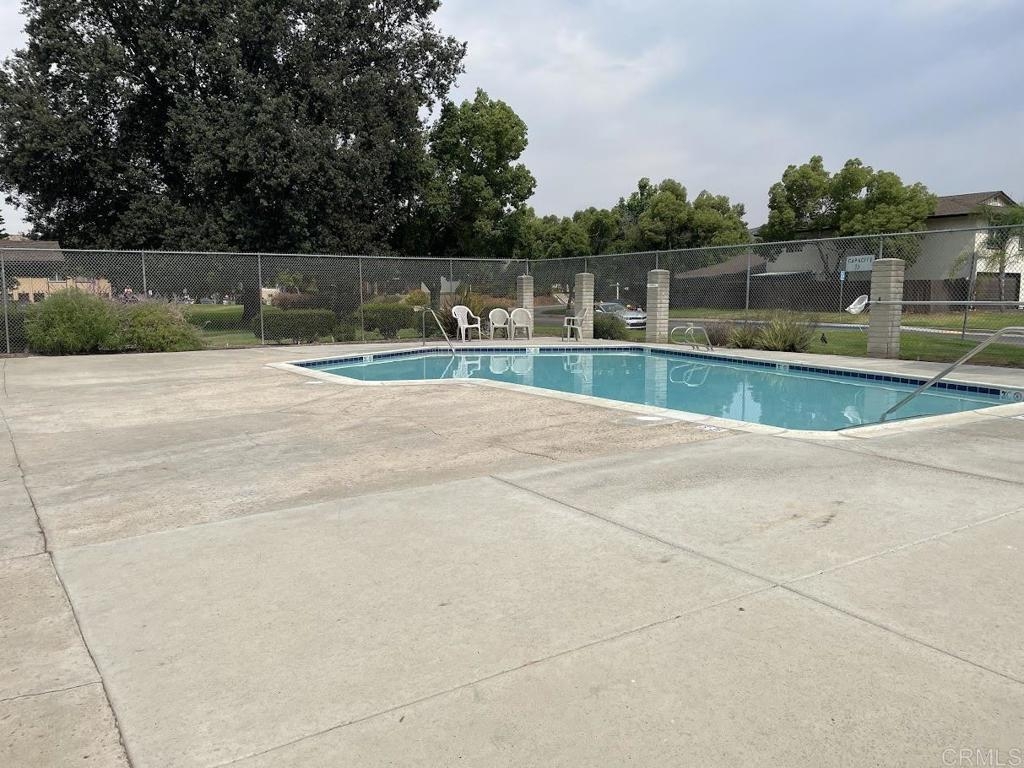 The best-priced 2-bedroom condo in all of Santee! Bedrooms and bath are upstairs, downstairs are a spacious living room and dining area, and the updated kitchen, with electric stove, microwave oven, dishwasher, granite countertops, and plenty of cupboard and shelf space! Bonus: the new central air conditioner was installed just last year! It needs some work, flooring and paint, kitchen cabinets need paint or resurfacing. Recent sales of the same unit fully remodeled in this desirable complex have gone for as high as $515,000! The kitchen opens up onto a private, fenced patio, with a storage closet. There is a single space within a multiple-car garage, with storage, and an assigned open parking space in front of the garage. Additional open parking is just in front of the unit, and throughout the complex. For leisure and recreation, the complex features include a large open lawn adjacent to the pool area, a popular amenity during these warm summer months! Common laundry room close to the unit.