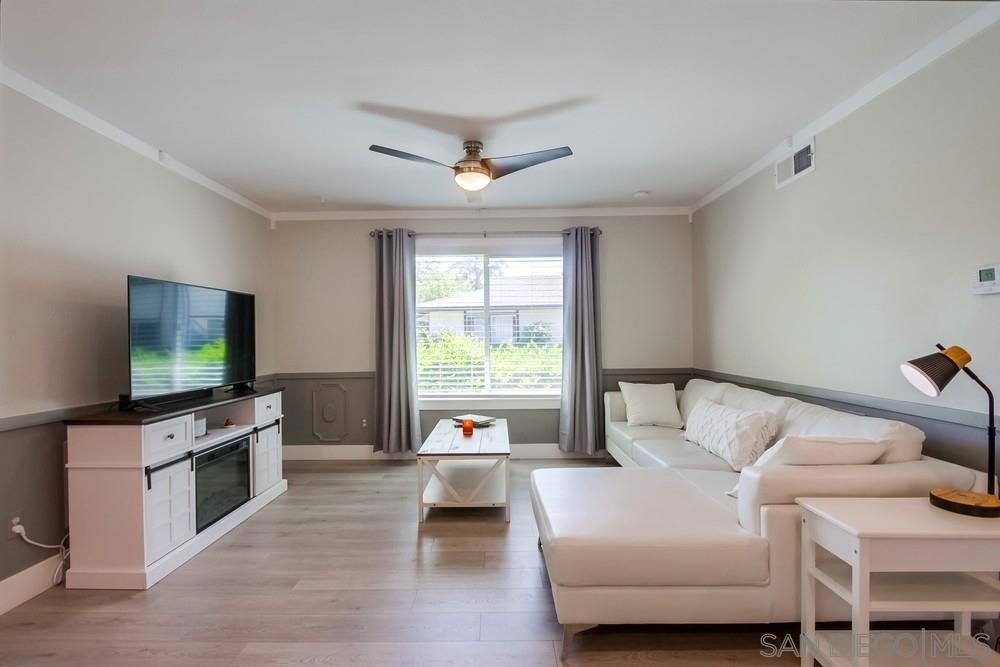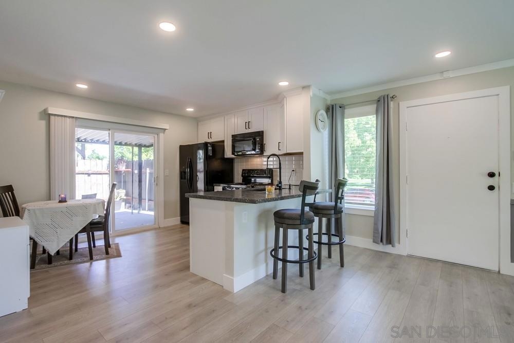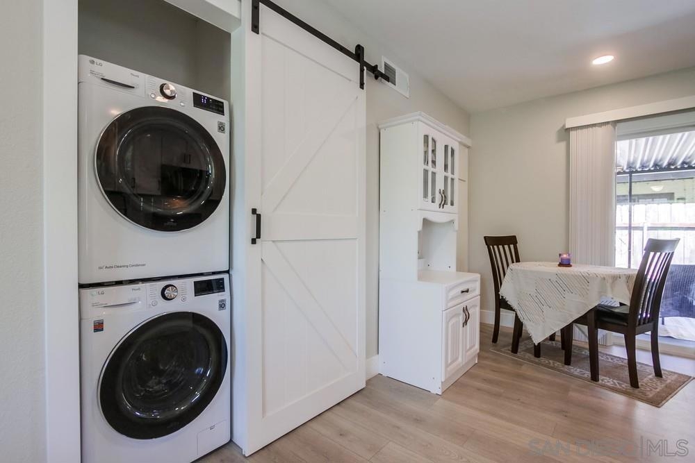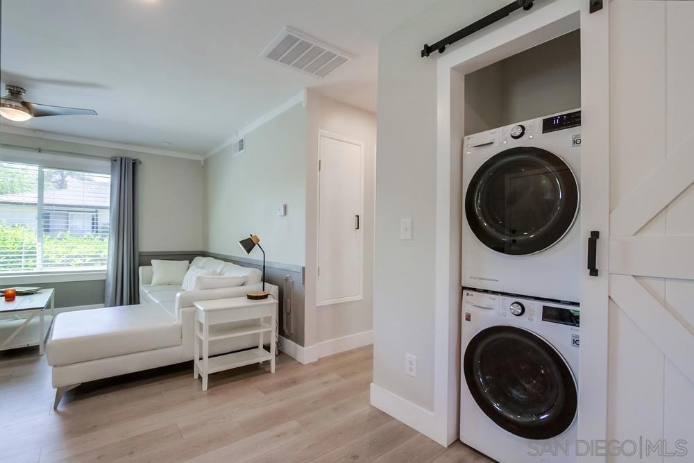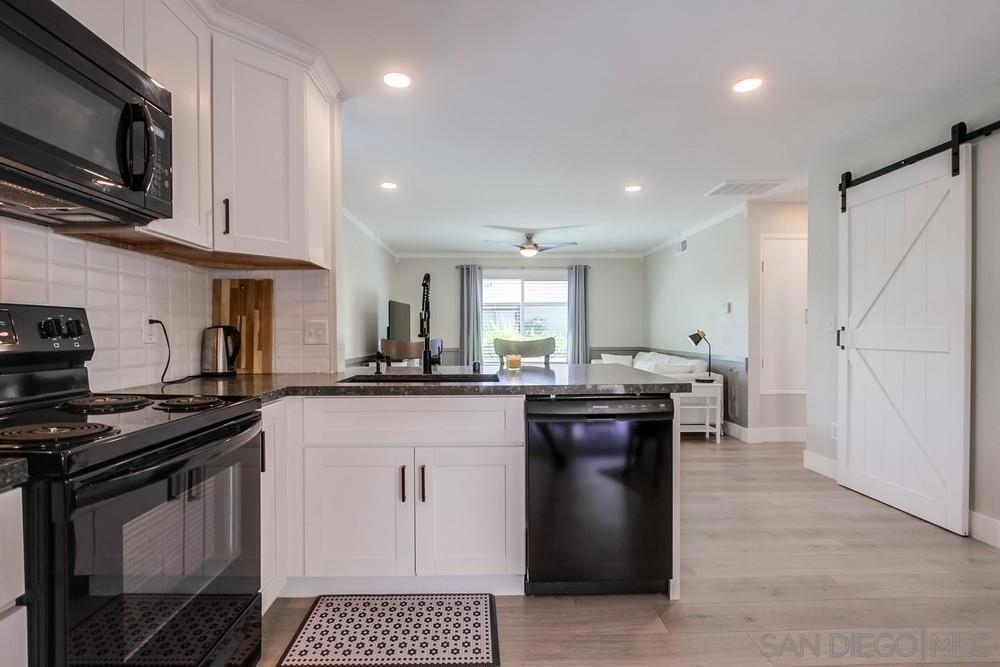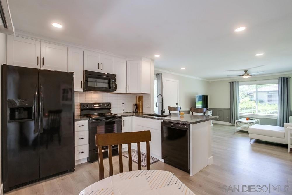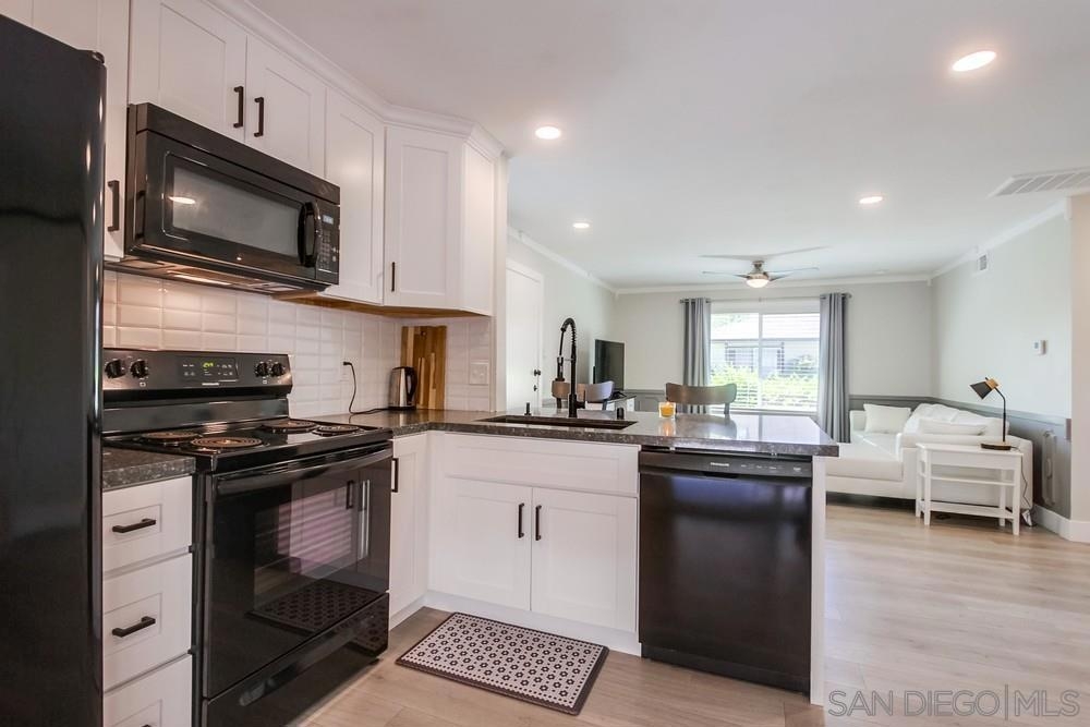 Exquisite, single-story end unit offering a stunning remodel from top to bottom. This captivating home features a newer HVAC system, as well as a beautifully renovated kitchen and bathroom with elegant white shaker cabinets. Enjoy the sleek quartz counters, complemented by modern black appliances and stylish fixtures, faucets, and hardware. The waterproof Mohawk laminate flooring, custom paint, and closet doors add a touch of sophistication throughout. Experience the luxury of a tile shower and a rejuvenating bathtub, along with the convenience of an in-unit washer/dryer. The kitchen also boasts a pantry and opens up to a private large patio, perfect for relaxation. Nestled in a park-like setting, this complex offers a refreshing pool and a sprawling grass area for outdoor enjoyment. The property includes a one-car garage, additional parking in front, and ample street parking. Sought after location near restaurants and shopping! This is a must see! VA and FHA approved complex!