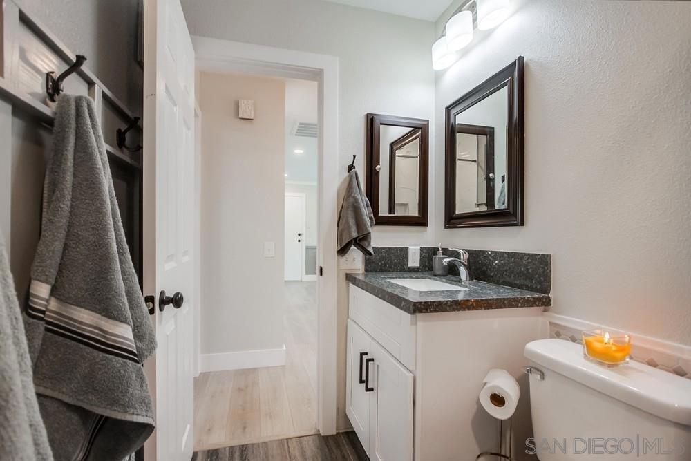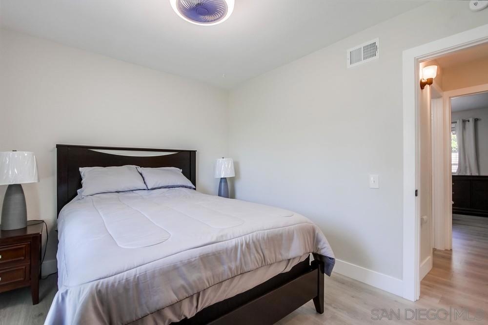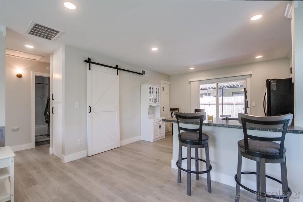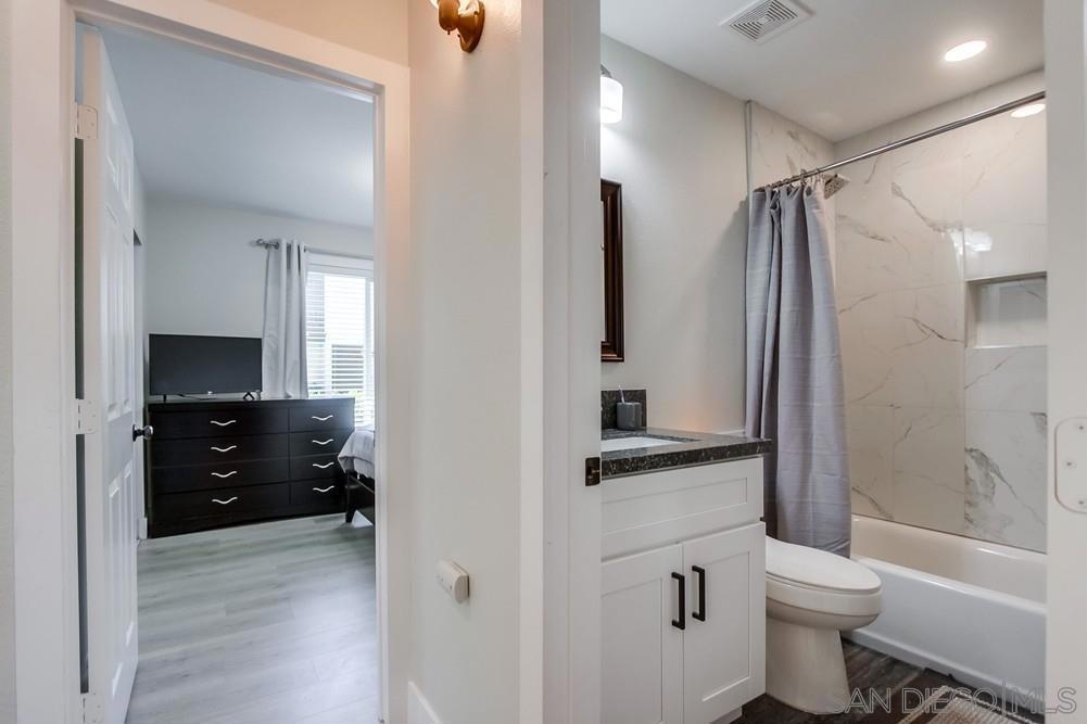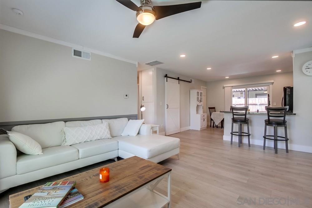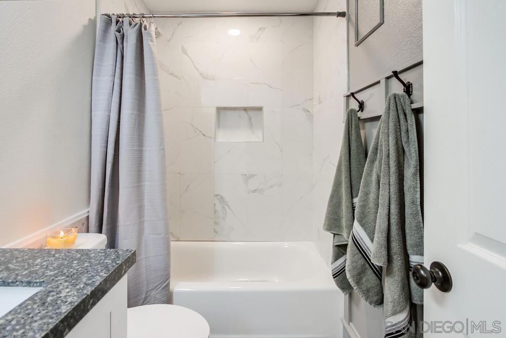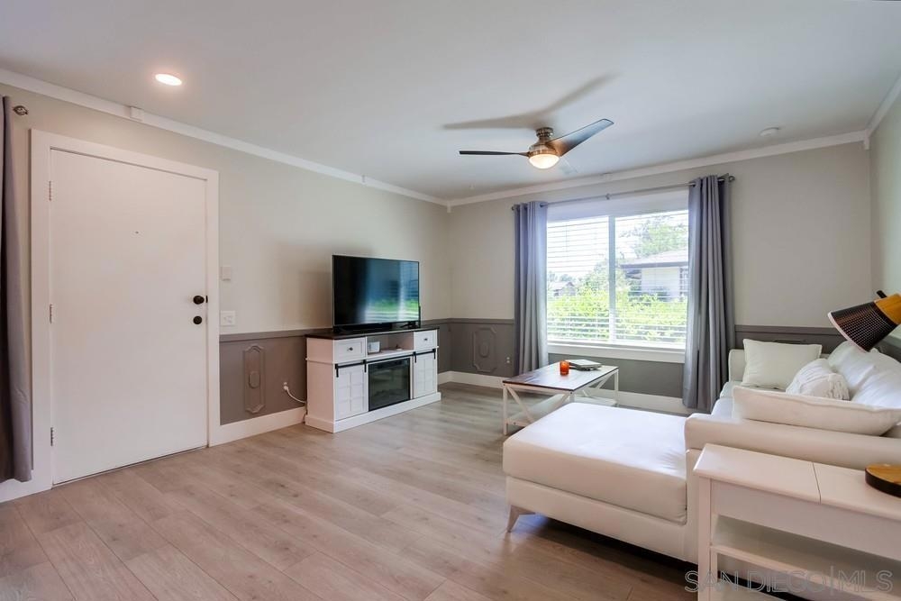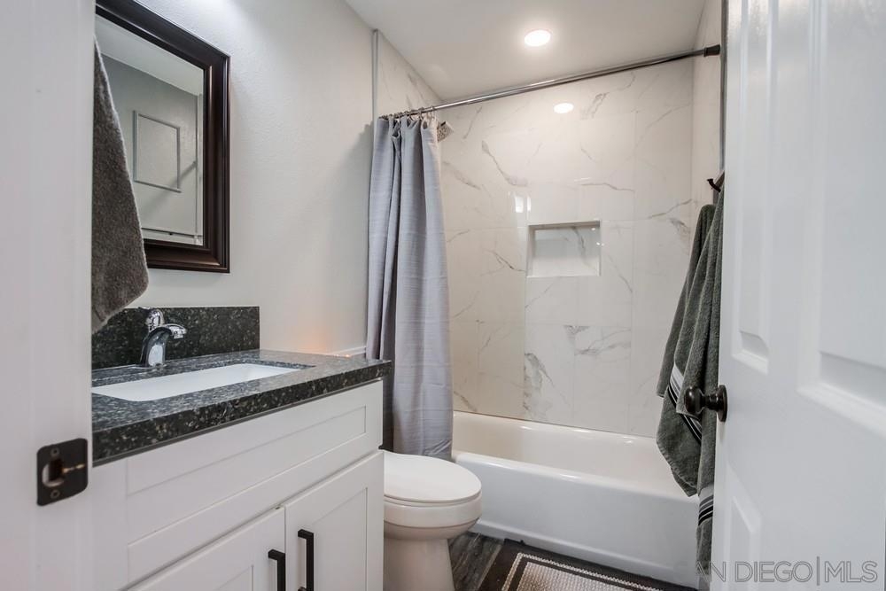 Exquisite, single-story end unit offering a stunning remodel from top to bottom. This captivating home features a newer HVAC system, as well as a beautifully renovated kitchen and bathroom with elegant white shaker cabinets. Enjoy the sleek quartz counters, complemented by modern black appliances and stylish fixtures, faucets, and hardware. The waterproof Mohawk laminate flooring, custom paint, and closet doors add a touch of sophistication throughout. Experience the luxury of a tile shower and a rejuvenating bathtub, along with the convenience of an in-unit washer/dryer. The kitchen also boasts a pantry and opens up to a private large patio, perfect for relaxation. Nestled in a park-like setting, this complex offers a refreshing pool and a sprawling grass area for outdoor enjoyment. The property includes a one-car garage, additional parking in front, and ample street parking. Sought after location near restaurants and shopping! This is a must see! VA and FHA approved complex!