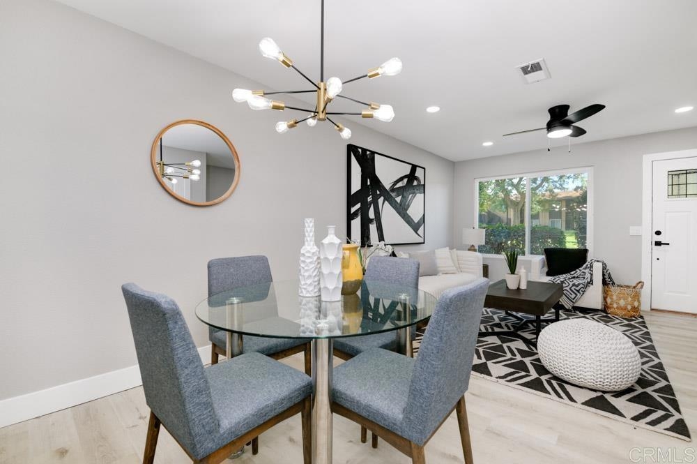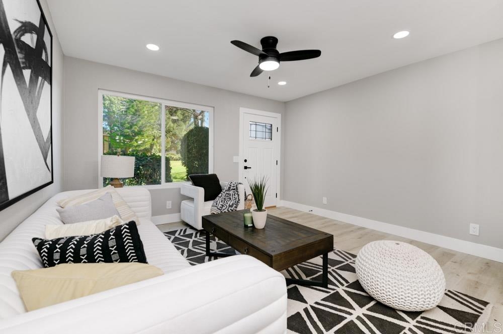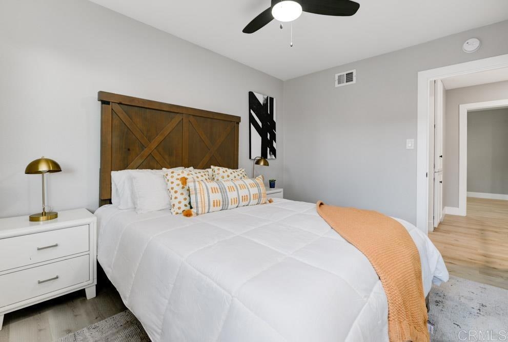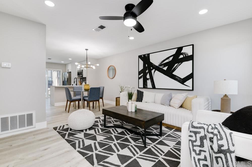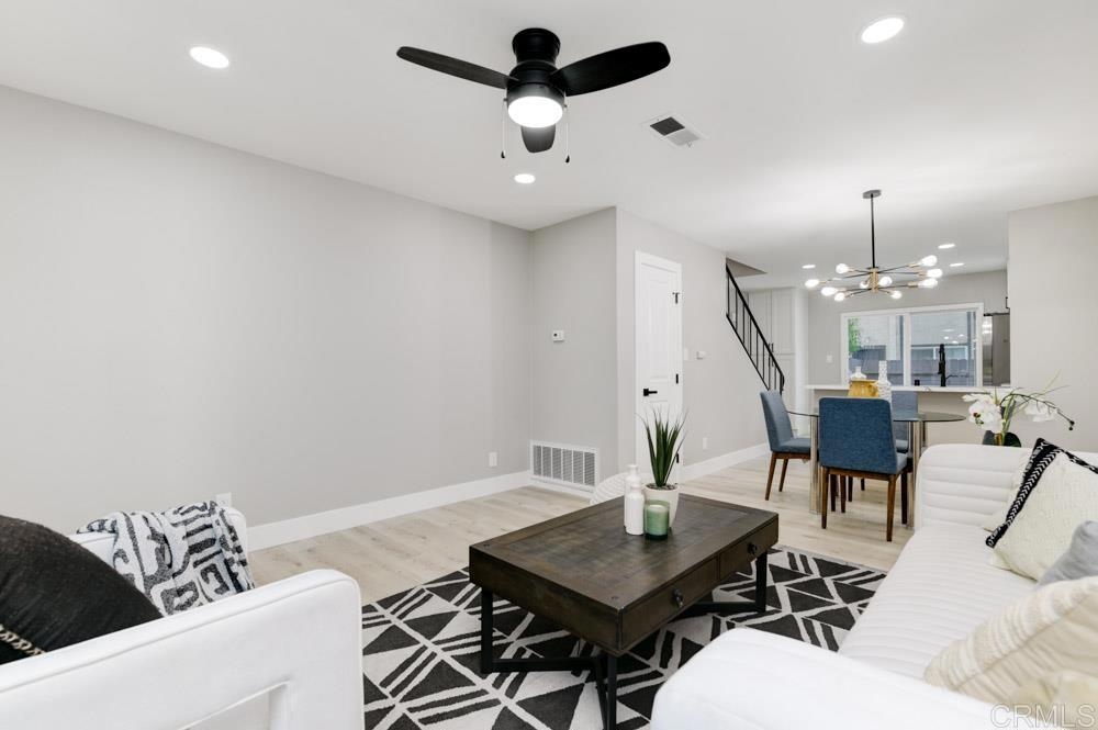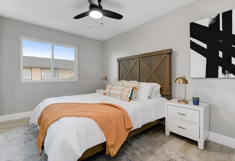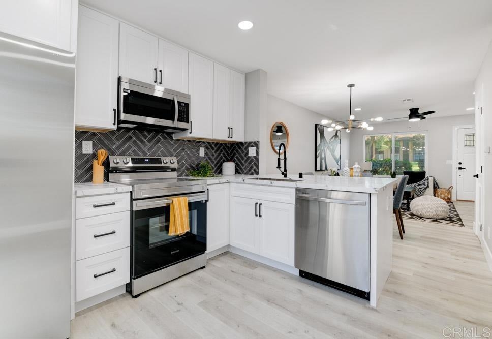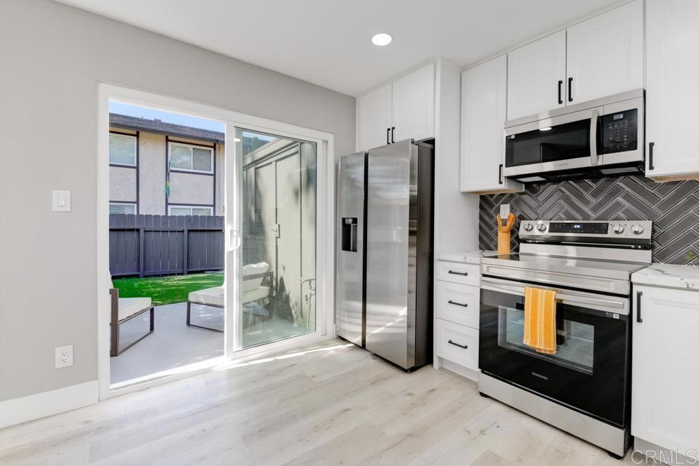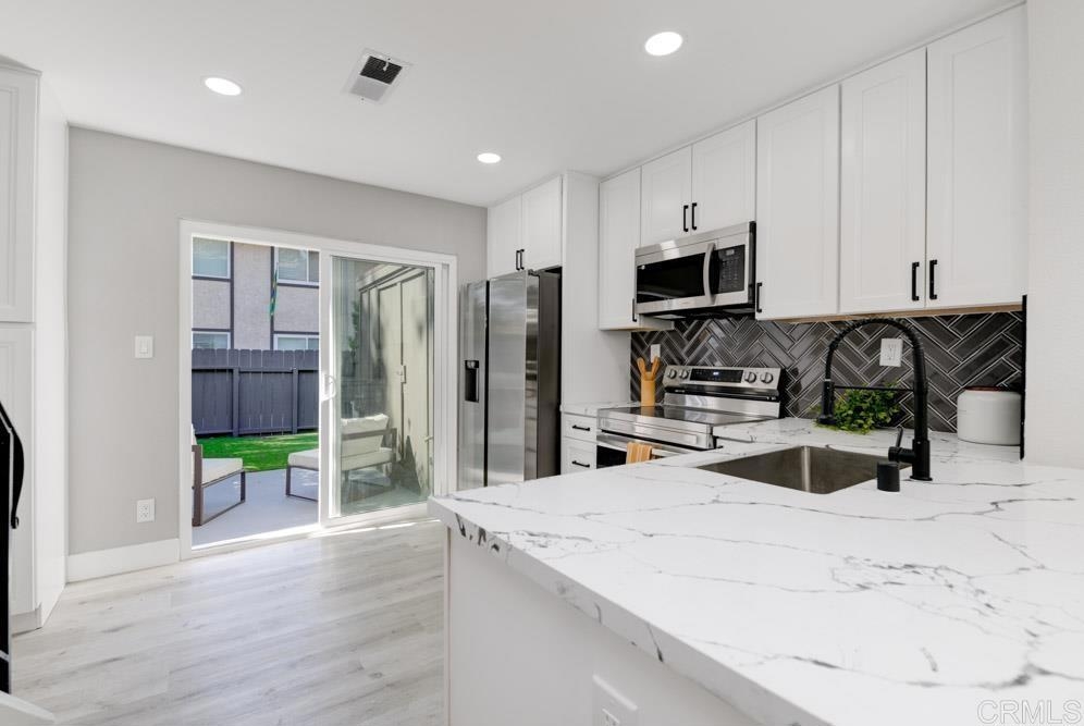 Welcome to this stunning two-story condominium, completely remodeled and located in the desirable locale of Santee, CA. Upon entering, you'll be greeted by an open floor plan, accentuated by luxury vinyl plank flooring throughout. The entire property has been freshly painted which is complemented by updated ceiling fans for optimal comfort. Experience this sleek and modern kitchen, featuring quartz countertops, stainless steel appliances, and of course extra cabinetry for all your cooking supplies. Adjacent to the kitchen, the property boasts a spacious private backyard, a perfect retreat for outdoor relaxation or entertaining guests. Also, with two comfortable bedrooms located upstairs, peaceful relaxation awaits. Cabinets are also present on the same level for convenient storage of your belongings, ensuring a neat and well-organized living environment. This condo offers a flawless blend of style and function in a prime location; waiting to be your next home. Don’t miss out.