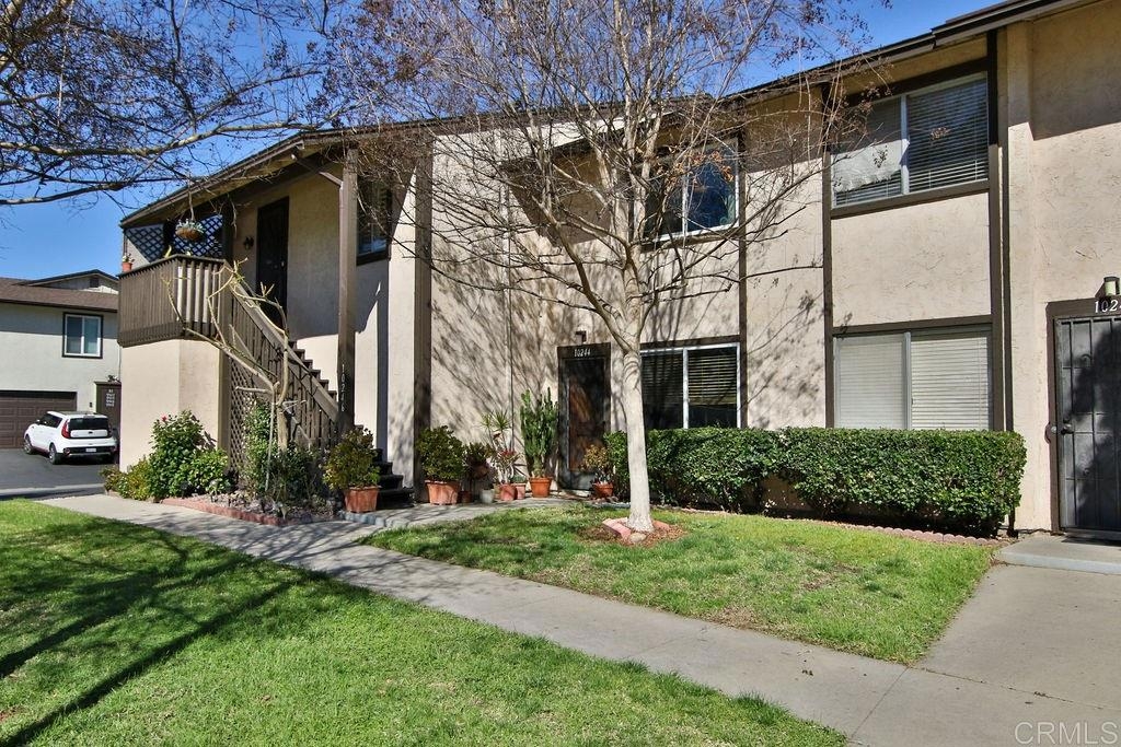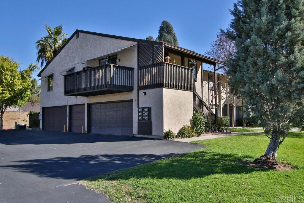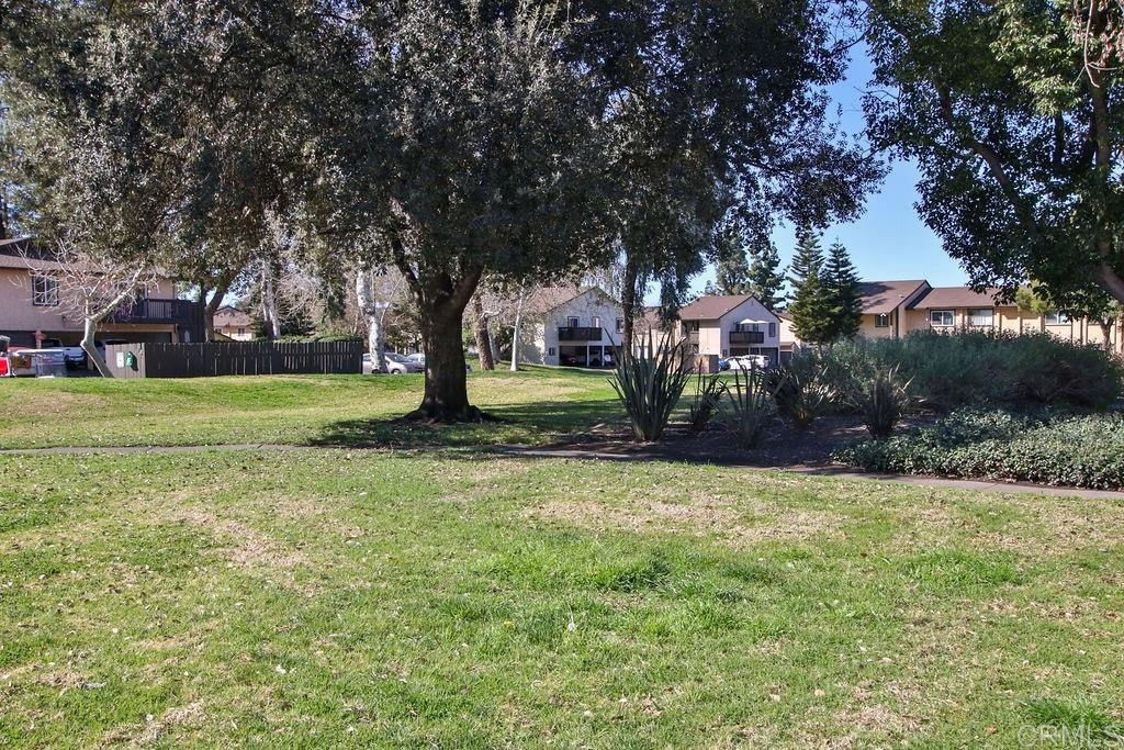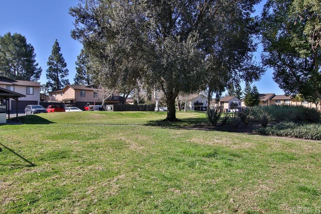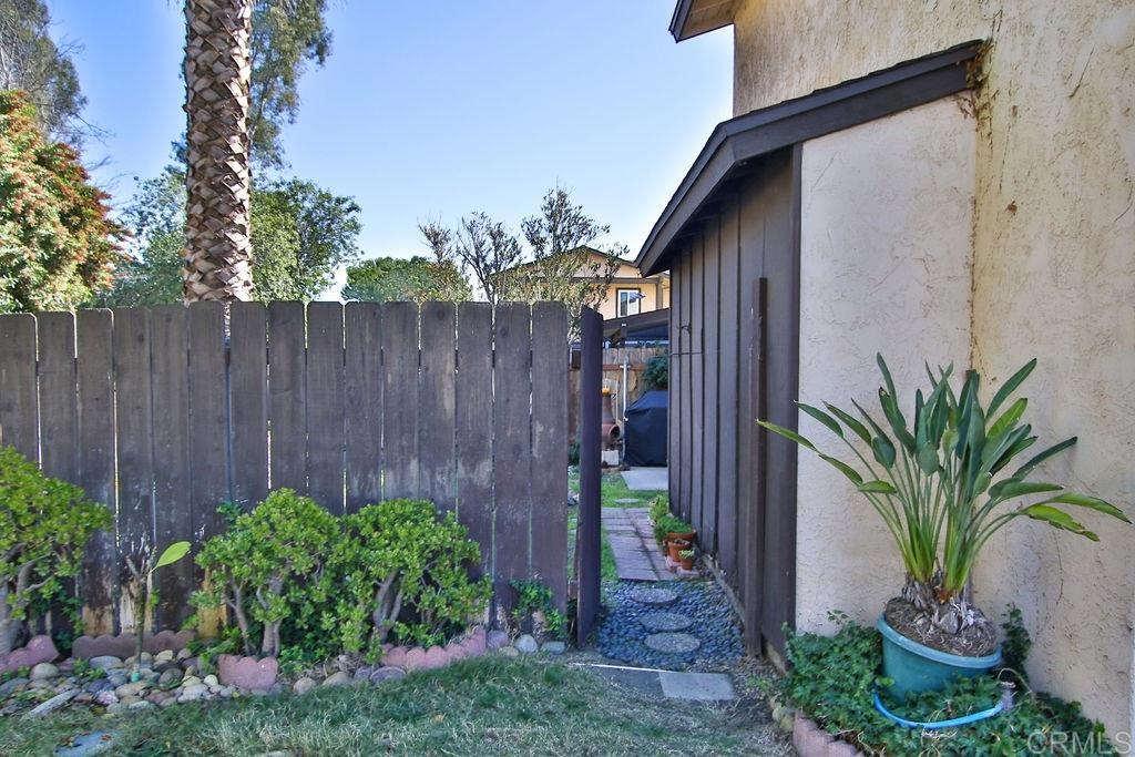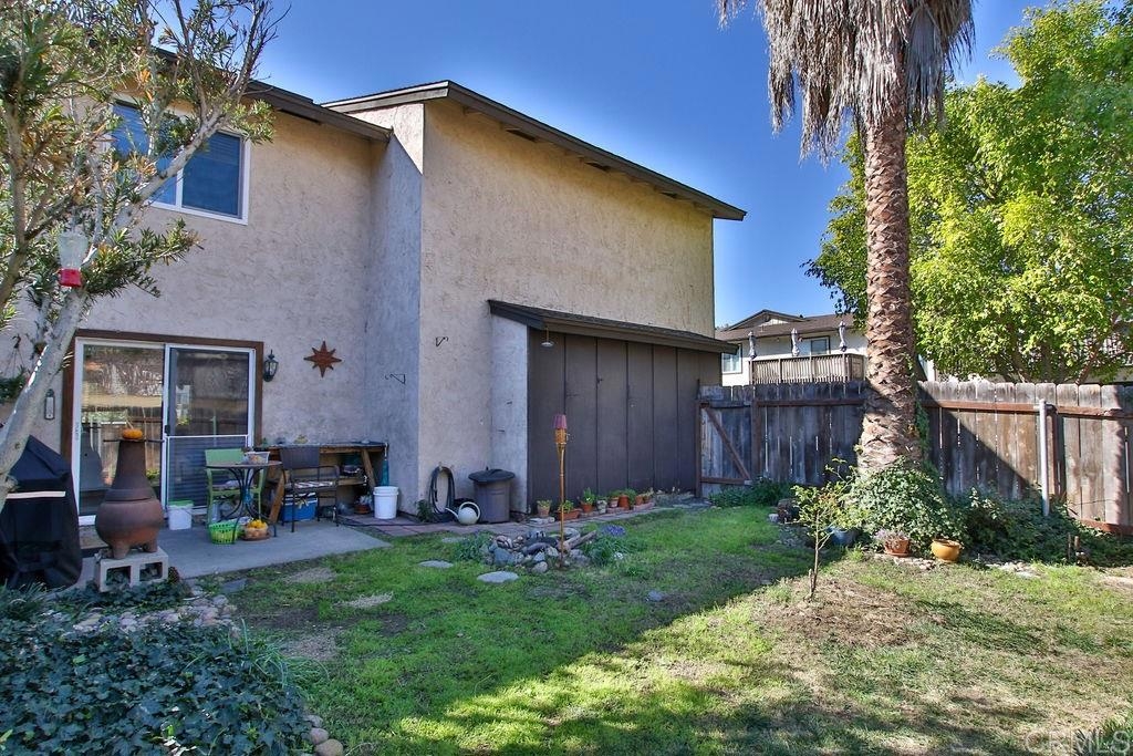 Welcome to one of if not the largest yard in Carefree East! This huge corner lot sits on the back of the property, across an alley from the shared laundry facility, and even offers an additional parking space! Owner of 20 years has lovingly maintained the grass yard lined with mature plants and local river rocks. This unit is bi-level, with 2 bedrooms and a bathroom upstairs. Upgrades include dual-pane solar-tinted windows with custom blinds, and sunny tile in the kitchen and bathroom. The North-South orientation shades this unit from the hot afternoon sun. On hot days, walk across Carefree Drive to take a dip in the pool. Next to the pool is a large grassy knoll shaded with plenty of trees, perfect for dog-walking or throwing a football. This location in Santee is within 1 mile of multiple hiking trails and the YMCA, and within walking distance to shopping, local restaurants and Santana High School. The back yard gate is right next to the garage for quick access to your car, with extra parking right outside your gate. The garage has 3 large, lockable storage cabinets.