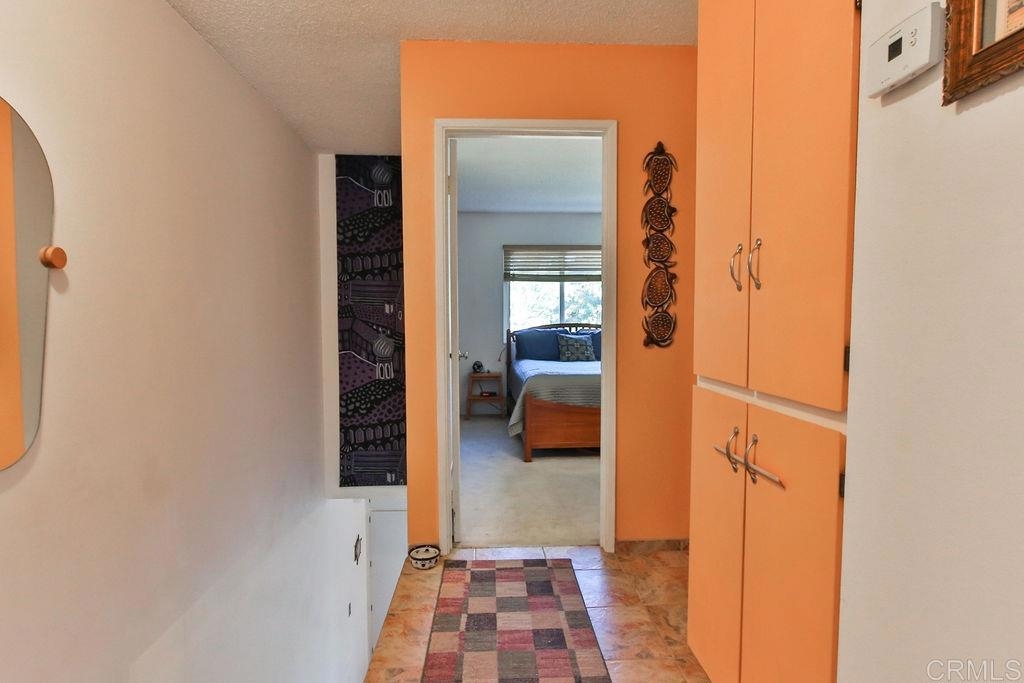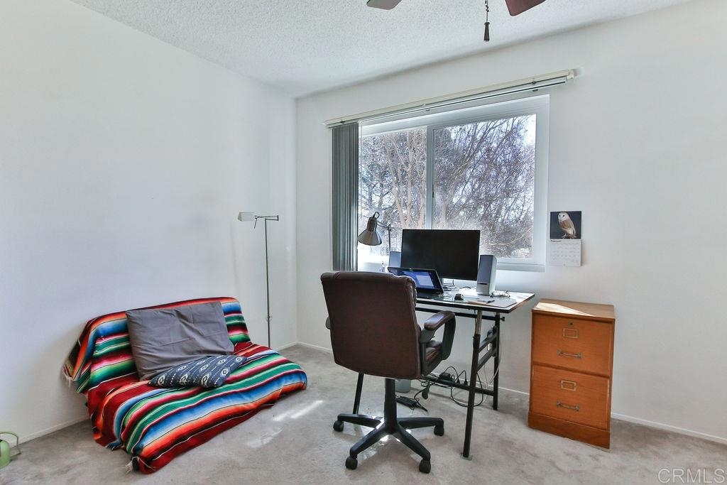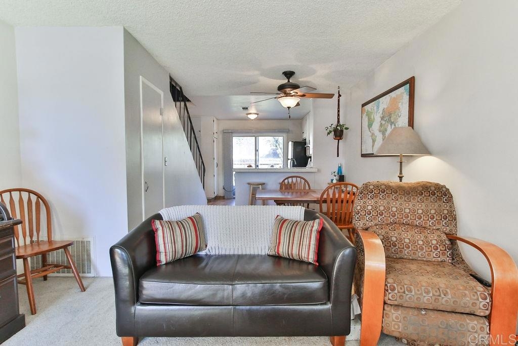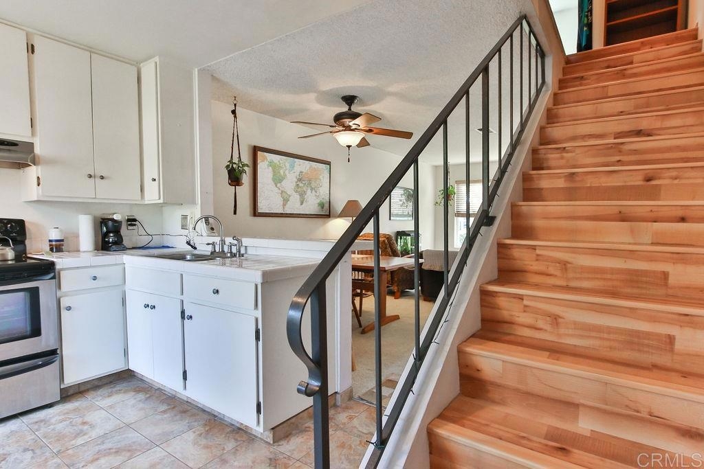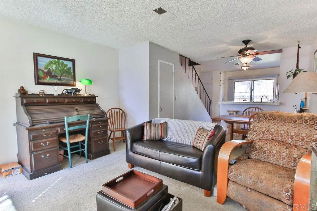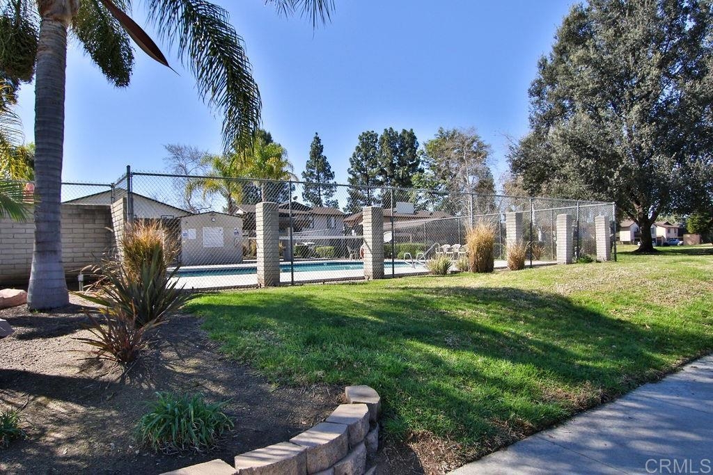 Welcome to one of if not the largest yard in Carefree East! This huge corner lot sits on the back of the property, across an alley from the shared laundry facility, and even offers an additional parking space! Owner of 20 years has lovingly maintained the grass yard lined with mature plants and local river rocks. This unit is bi-level, with 2 bedrooms and a bathroom upstairs. Upgrades include dual-pane solar-tinted windows with custom blinds, and sunny tile in the kitchen and bathroom. The North-South orientation shades this unit from the hot afternoon sun. On hot days, walk across Carefree Drive to take a dip in the pool. Next to the pool is a large grassy knoll shaded with plenty of trees, perfect for dog-walking or throwing a football. This location in Santee is within 1 mile of multiple hiking trails and the YMCA, and within walking distance to shopping, local restaurants and Santana High School. The back yard gate is right next to the garage for quick access to your car, with extra parking right outside your gate. The garage has 3 large, lockable storage cabinets.