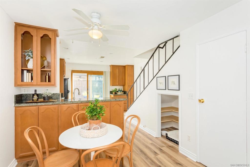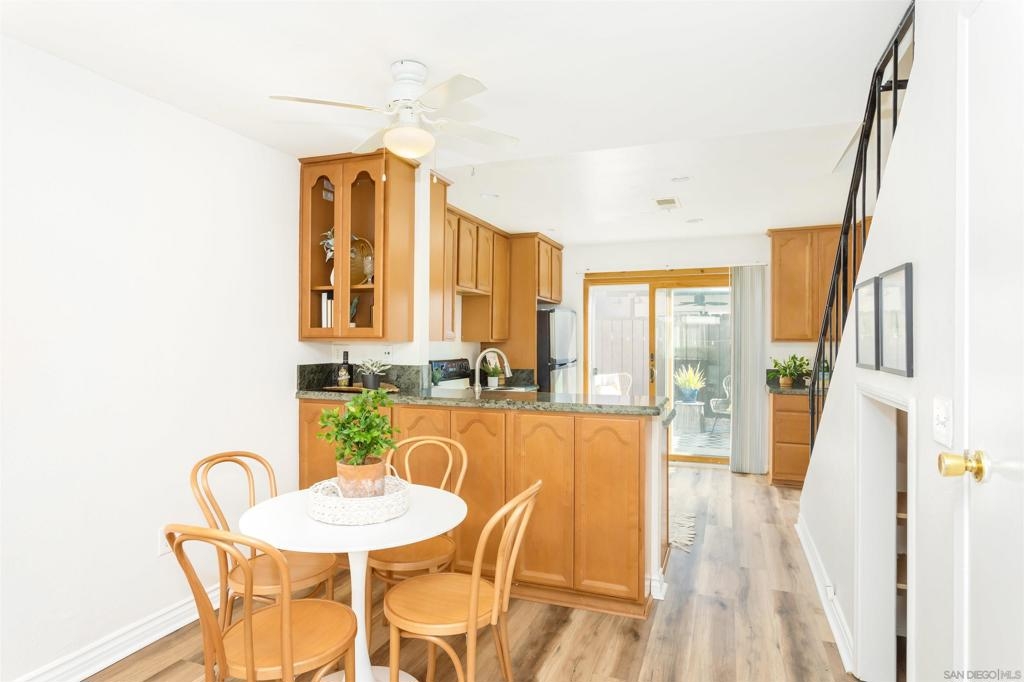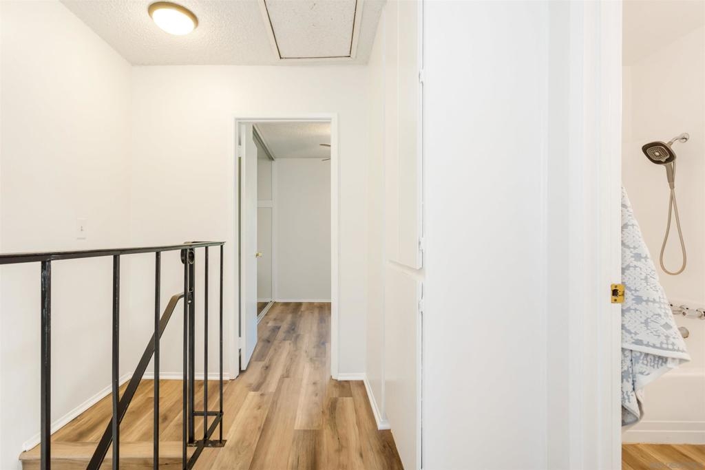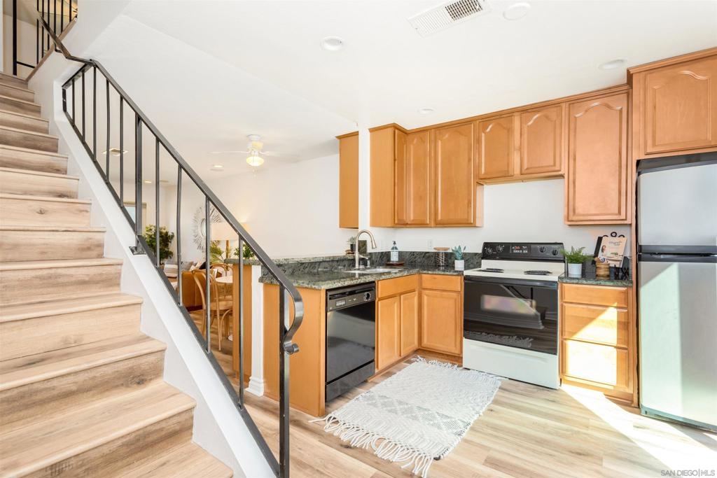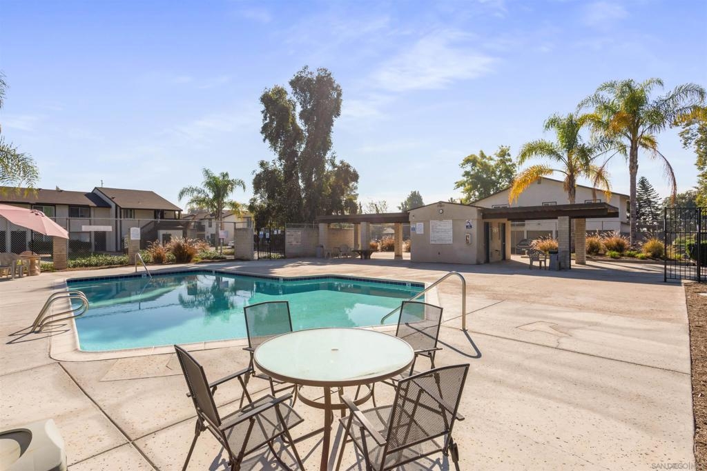 Turnkey, 2 Bedroom, 1 Bath Condominium in centrally located Santee. Open floor plan with spacious kitchen beautiful kitchen cabinets and granite countertops with direct access to the charming patio. Freshly painted and new luxury vinyl flooring installed throughout unit. 2 spacious bedrooms upstairs with large closets and ceiling fans. Unit has central heat and AC, 2 assigned parking spaces (1 in a shared garage). Community features a beautiful swimming pool and community laundry. Walking distance to Santana High School, and many convenient shops. Minutes to hiking and biking trails, and easy access to major freeways. VA & FHA approved complex and ready for immediate occupancy. Complex Features: , Sewer: Sewer Connected, Public Sewer Topography: LL