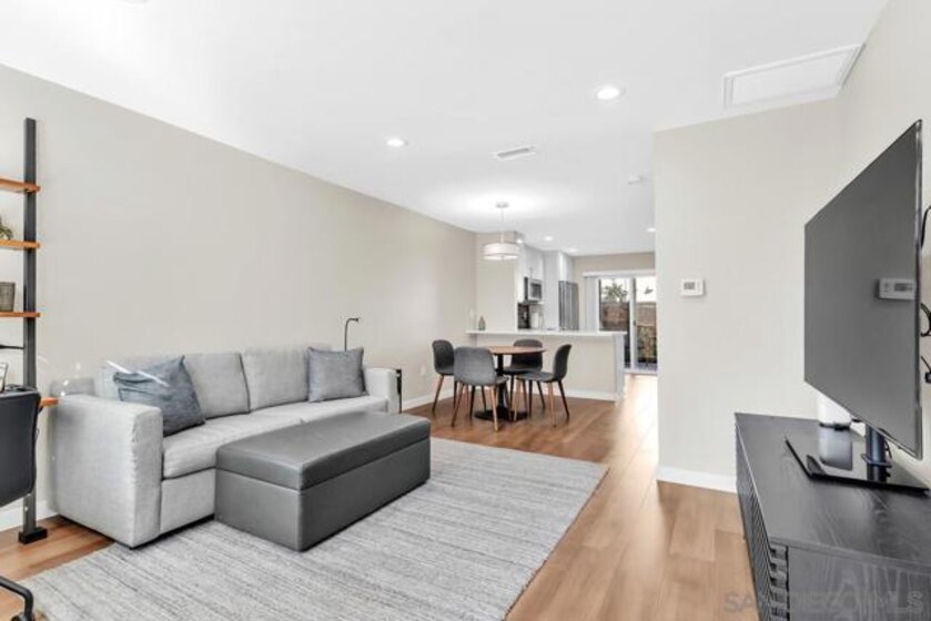 Fully rebuilt in 2022, this stunning 2-bedroom, 1-bathroom home offers modern finishes and thoughtful upgrades throughout. Enjoy new plumbing, wiring, HVAC, drywall, and dual-pane windows for efficiency and comfort. Engineered wood flooring enhances the main level, with carpet upstairs for a cozy touch. The upgraded kitchen and bathroom feature modern cabinetry and countertops, and the primary bedroom includes a walk-in closet. Convenient built-in USB chargers in electrical. Outdoor living shines with a spacious covered patio featuring concrete, turf, and extra storage space. The property also offers a 2-car tandem carport with additional storage. The Carefree community boasts lush landscaping, a sparkling pool and spa, and a great location close to schools, shopping, dining, and Mission Trails Regional Park. Move-in ready and rebuilt with quality craftsmanship—don’t miss this exceptional opportunity!