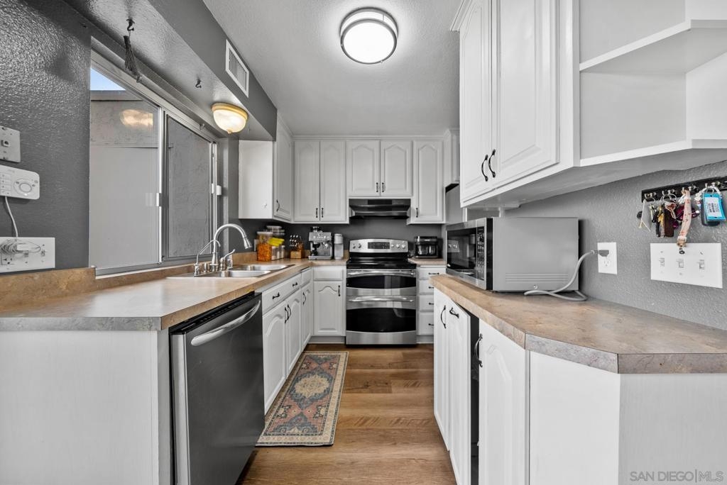 Discover comfort, convenience, and charm in this spacious two-story condo perfectly situated in the heart of Santee. Located just minutes from the scenic trails of Mast Park and the serene beauty of Santee Lakes, and only a mile from Town Center Parkway, where you’ll find shopping and dining. This home features an attached two-car garage with built-in storage shelves accessed through a large, private outdoor patio, perfect for entertaining or relaxing. Upstairs, you will find a recently remodeled bathroom and three well-sized bedrooms, including a spacious primary suite with a walk-in closet. Downstairs, enjoy a dedicated office nook just off the kitchen, ideal for remote work or study space. The home comes complete with stainless steel appliances, including a refrigerator, dishwasher, and a full-size washer and dryer. As part of a friendly, well-maintained community, you’ll also have access to a sparkling pool and relaxing spa. With close proximity to schools, shopping, and easy freeway access, this home offers the perfect blend of lifestyle and location.