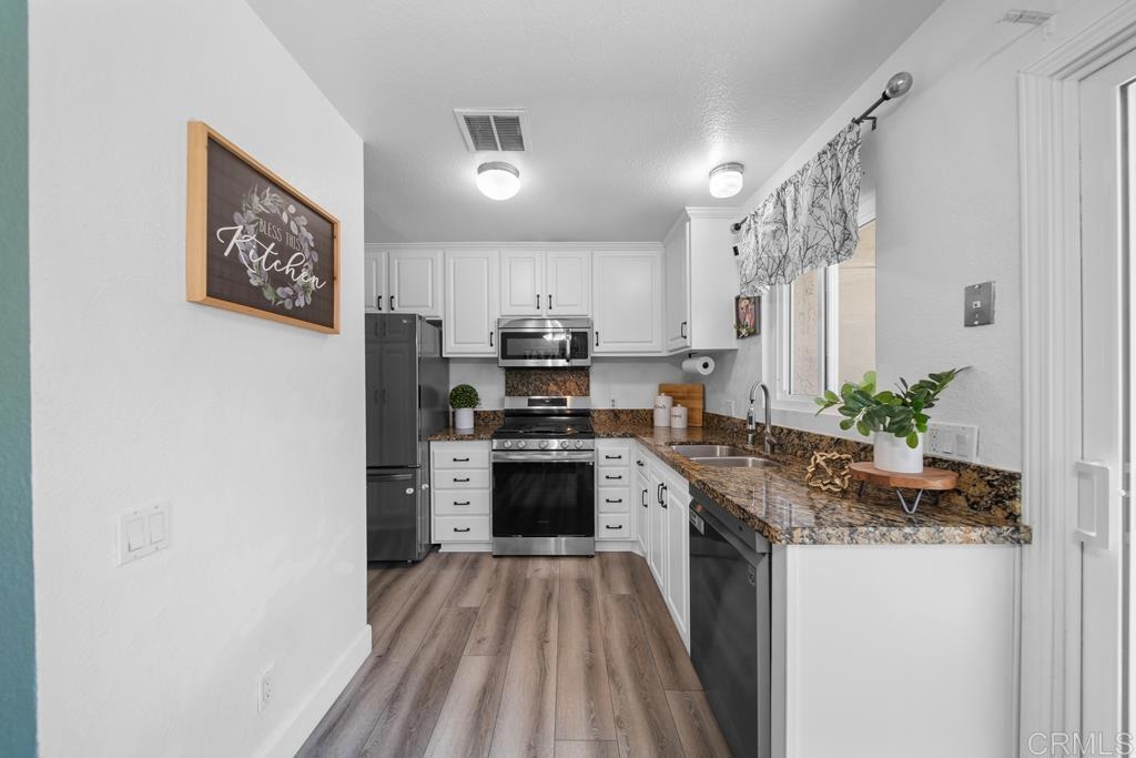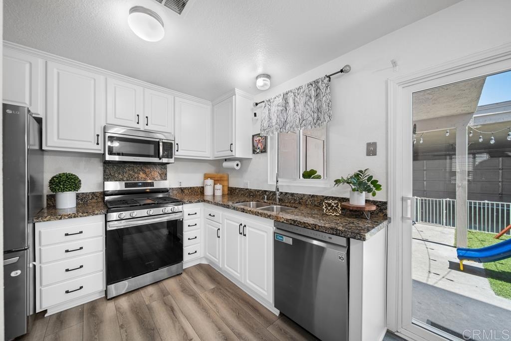 Welcome to your new home in the heart of Santee! Property is VA and FHA APPROVED!! This lovely 4-bedroom, 2.5 Bath condo offers the perfect blend of comfort, style, and convenience. Located in a highly sought-after community, this home is designed for modern living and entertaining. As you step inside, you'll be greeted by an open-concept layout that seamlessly connects the living, dining, and kitchen areas. The spacious and airy design flows effortlessly into the private patio and 2 car garage, providing secured parking, creating an ideal space for hosting gatherings and enjoying outdoor activities. The kitchen features new cabinetry, stainless steel appliances and plenty of storage. The laundry room is located downstairs next to the kitchen for added convenience. Each bedroom is generously sized, providing plenty of room for relaxation and personal space. The primary bedroom boasts a private bathroom, offering a tranquil retreat after a long day. Residents of this wonderful community enjoy access to a sparkling community pool, perfect for those warm California days. Located close to freeways, this home offers easy access to shopping, dining, and entertainment. Whether you're commuting to work or exploring the beautiful surroundings, you'll appreciate the prime location of this home. Don't miss out on this incredible opportunity and make this exceptional condo your new home! NEW HVAC, WINDOWS, STAINLESS STEEL APPLIANCES, WATER HEATER AND FLOORING.