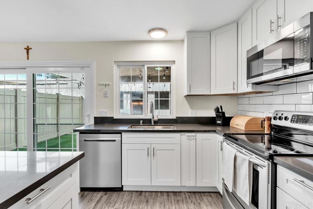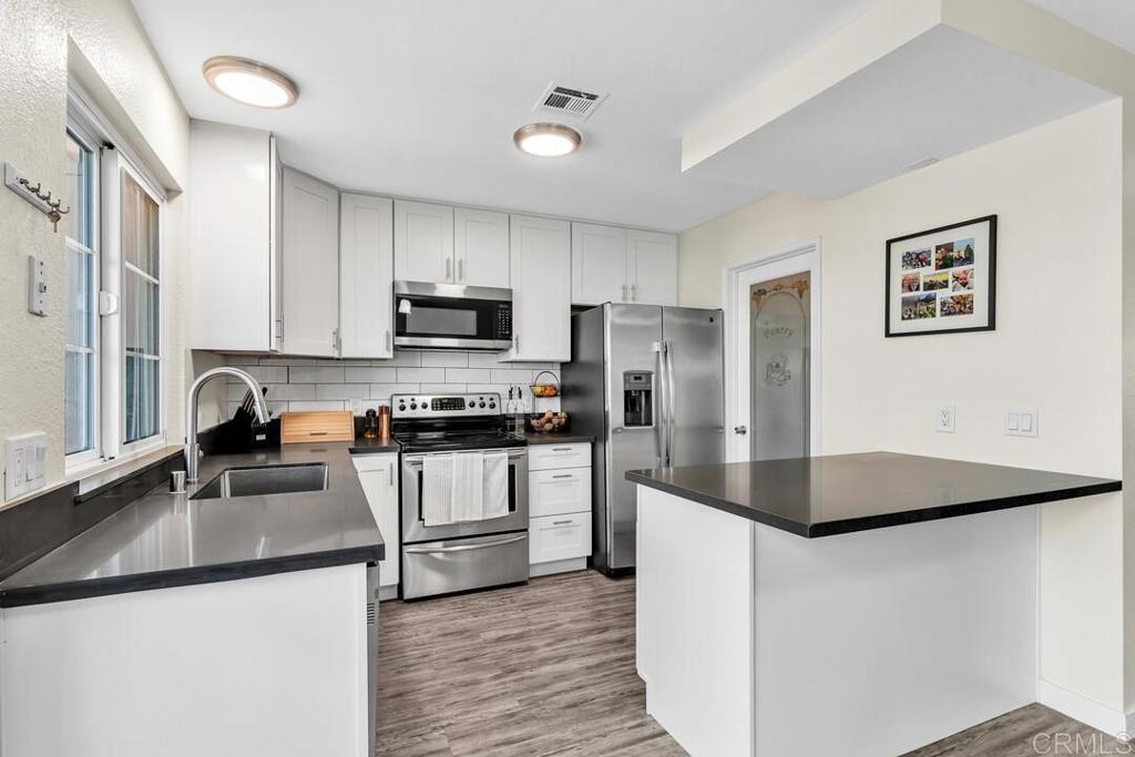 Looking for an affordable family home in a great location!? Don't miss out on this 4 bed/2.5 bath townhome in Santee! The heart of this home is the newly renovated kitchen. Enjoy the flexibility of the breakfast bar and prep area, and the convenience of the walk-in pantry! In addition to the new kitchen, this home is move-in ready with fresh paint and baseboards throughout, and LVP flooring. This home's convenience extends beyond the front door! This home is just a short walk from it all: schools, restaurants, grocery stores, the library, award winning Mast Park, and the HOA pool is just across the street! Keep your home (and your budget) comfortable year round with the energy efficient upgrades to the home, including dual paned windows, new HVAC, and an affordable solar payment! Additional highlights include detached 2-car garage, laundry closet, and new turf in the backyard