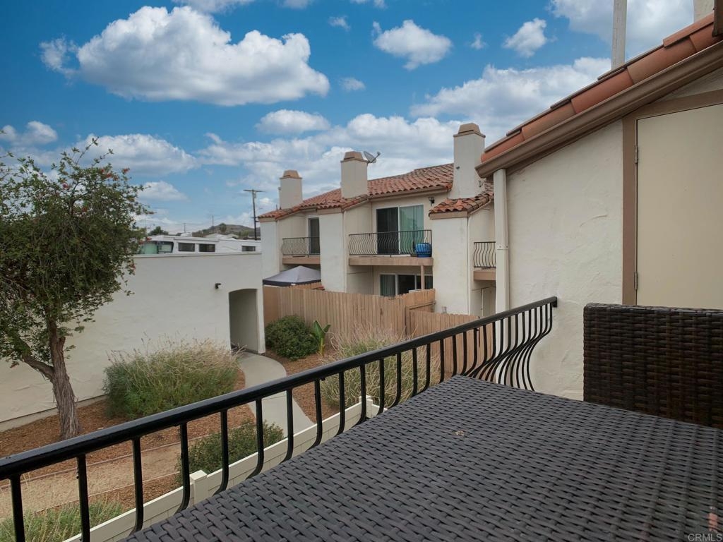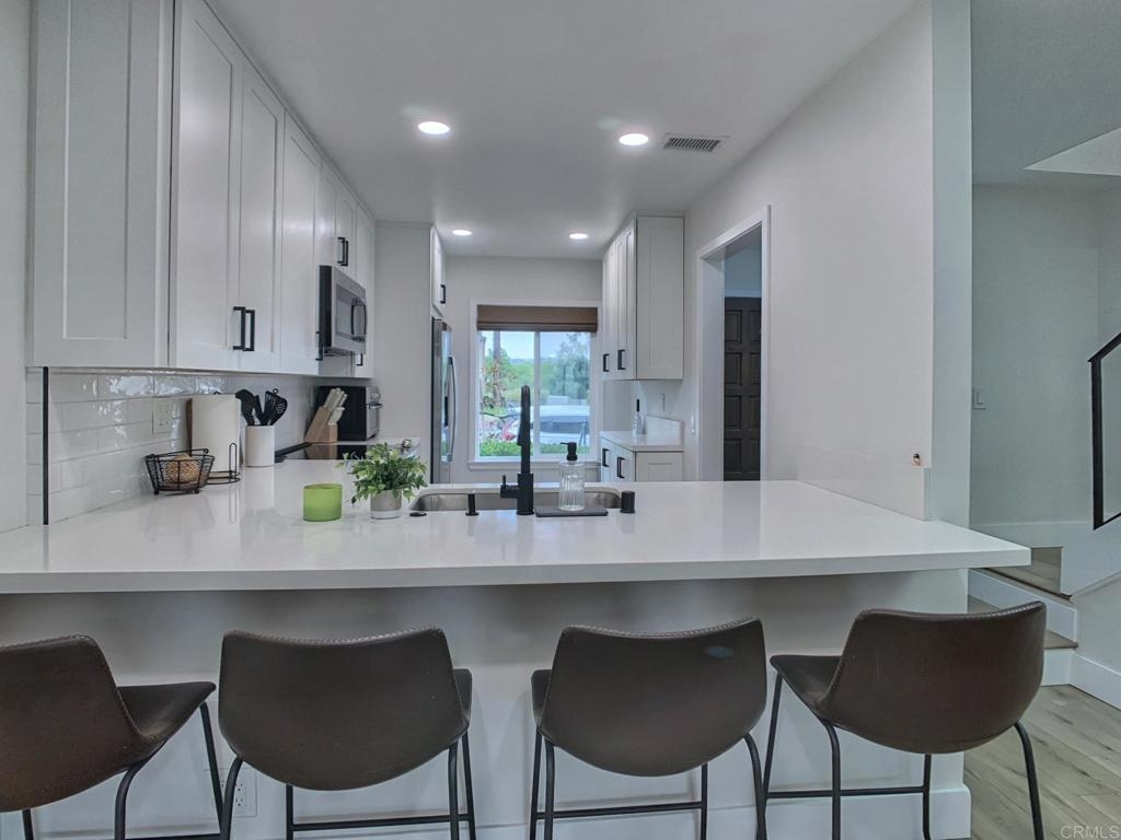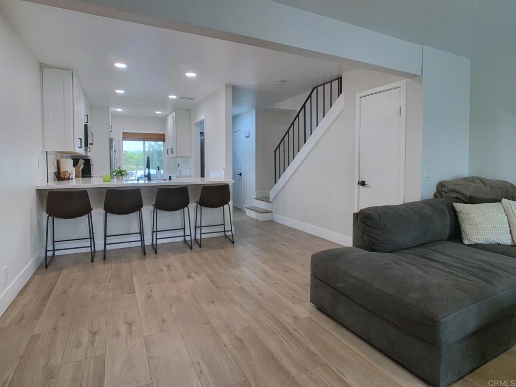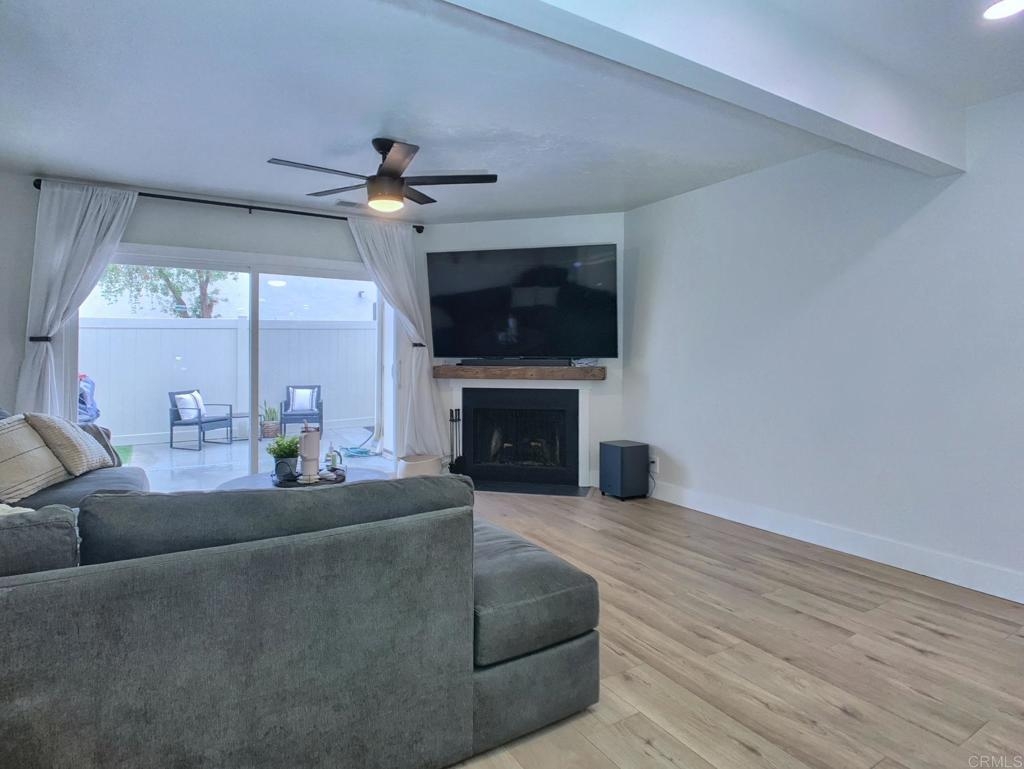 Gorgeous two-story end-unit townhome in Santee!, This one has it all! Lovingly remodeled over the last two years, including, kitchen cabinets, quartz kitchen countertops, stainless appliances, vinyl plank flooring, vinyl windows, lighting, ceiling fans, fireplace mantel and tile, bathroom vanities and tile shower, smart thermostat…must see, too many upgrades to list! Home includes central HVAC, full size laundry closet, and individual water heater. Two upstairs bedrooms with a full bath and a half bath downstairs. This home has just one shared wall, a private, pet friendly patio with upgraded vinyl fencing which flows off the living room and a balcony off the primary bedroom. The property includes one reserved, covered parking space and extra open space parking. Located near Santee Lakes, Carlton Oaks, Mast Park and San Diego River Trails. Easy access to Highway 52, beaches and downtown SD. VA Ok!