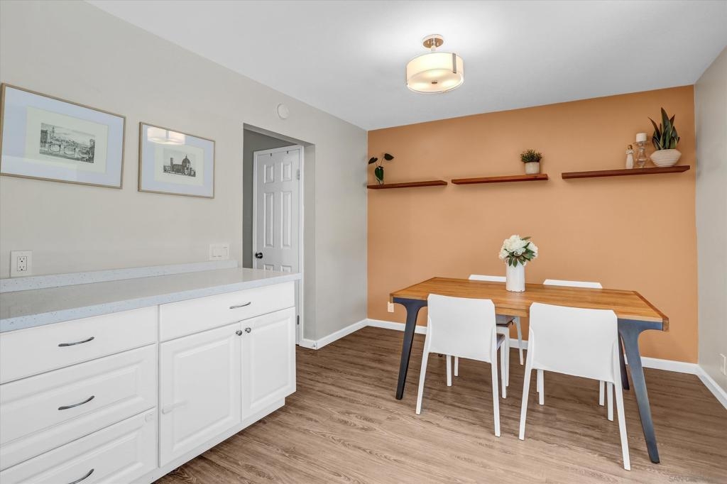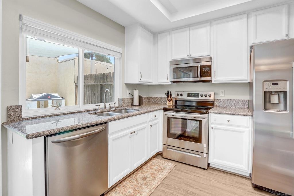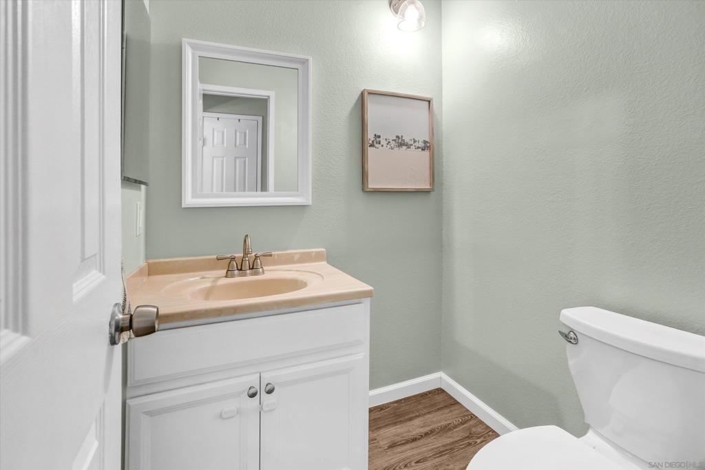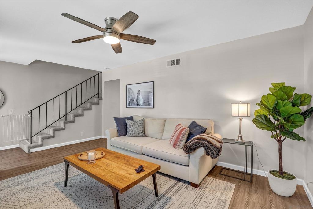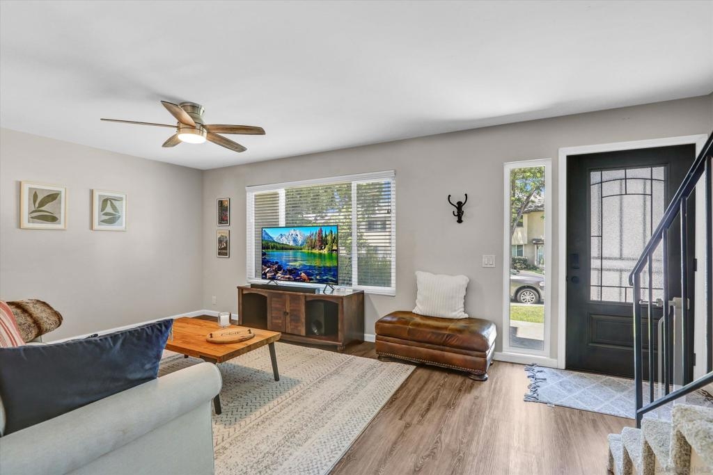 Beautifully Renovated 3-Bedroom Townhome in the Heart of Santee Welcome to this turn-key 3-bedroom, 1.5-bath townhome located in the highly desirable Corsican Villas community of Santee. This spacious and stylishly updated home features dual pane windows, and laminate plank flooring throughout the main living areas. The beautifully upgraded kitchen boasts crisp white cabinetry, gorgeous granite countertops, and stainless steel appliances, and it opens seamlessly to the dining area and light-filled living room—perfect for everyday living and entertaining. Downstairs, you'll also find a convenient laundry room with extra storage space and a guest half-bath. Upstairs, all three bedrooms offer newer carpet flooring and ceiling fans. The generously sized primary suite includes two closets, one of which is a large walk-in, offering plenty of storage. The full upstairs bathroom features dual sinks and modern fixtures. This home offers comfort, style, and a prime location—just minutes from parks, shopping, dining, and top-rated schools.