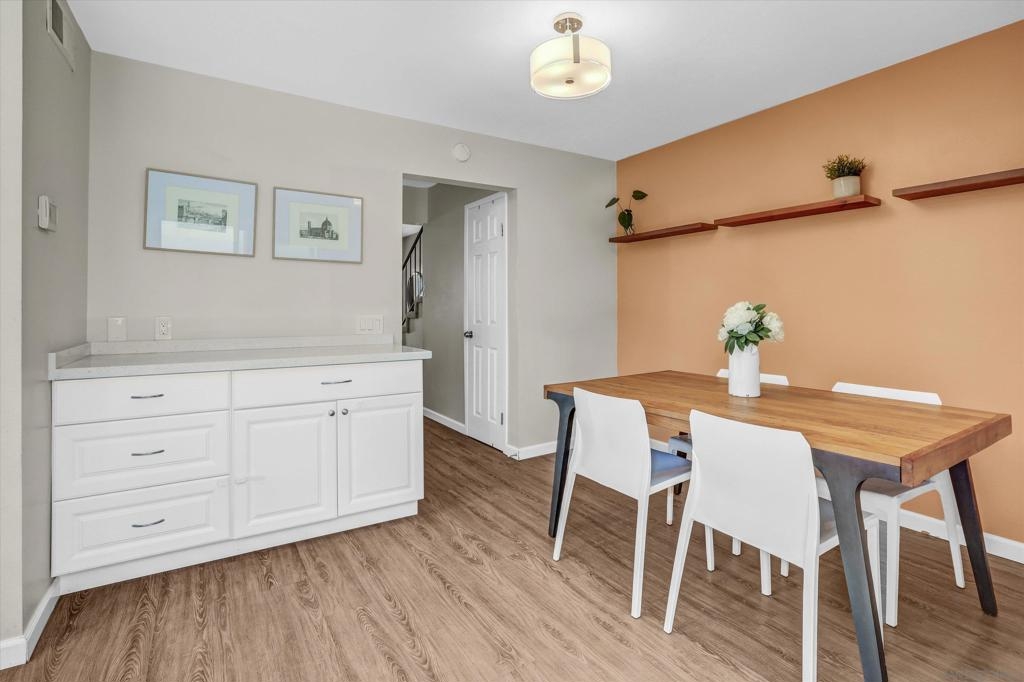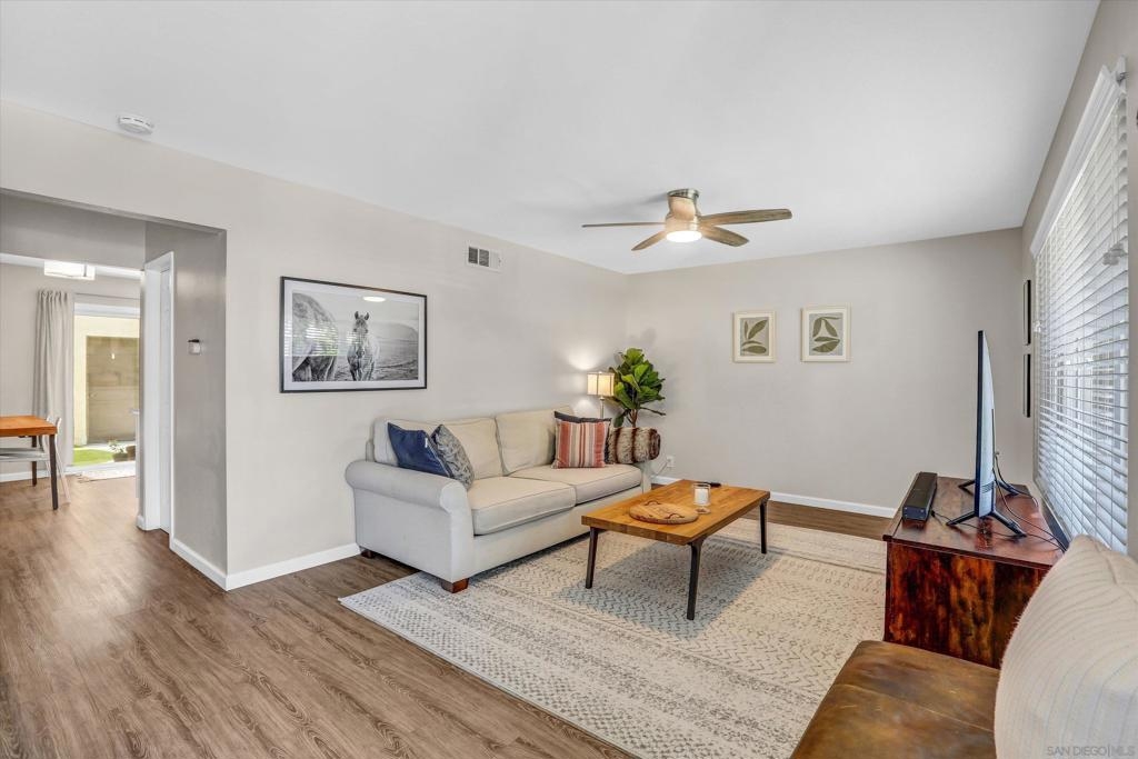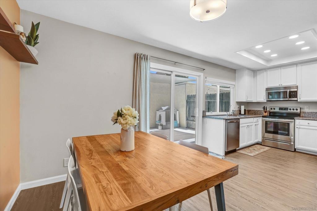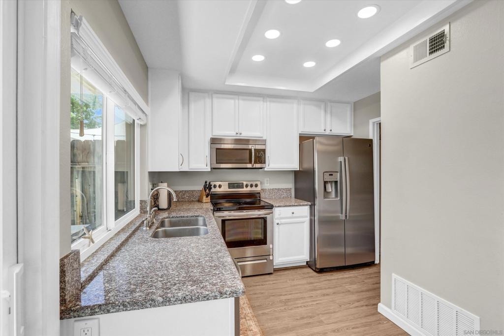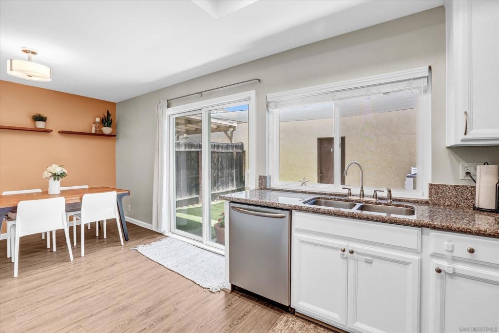 Beautifully Renovated 3-Bedroom Townhome in the Heart of Santee Welcome to this turn-key 3-bedroom, 1.5-bath townhome located in the highly desirable Corsican Villas community of Santee. This spacious and stylishly updated home features dual pane windows, and laminate plank flooring throughout the main living areas. The beautifully upgraded kitchen boasts crisp white cabinetry, gorgeous granite countertops, and stainless steel appliances, and it opens seamlessly to the dining area and light-filled living room—perfect for everyday living and entertaining. Downstairs, you'll also find a convenient laundry room with extra storage space and a guest half-bath. Upstairs, all three bedrooms offer newer carpet flooring and ceiling fans. The generously sized primary suite includes two closets, one of which is a large walk-in, offering plenty of storage. The full upstairs bathroom features dual sinks and modern fixtures. This home offers comfort, style, and a prime location—just minutes from parks, shopping, dining, and top-rated schools.