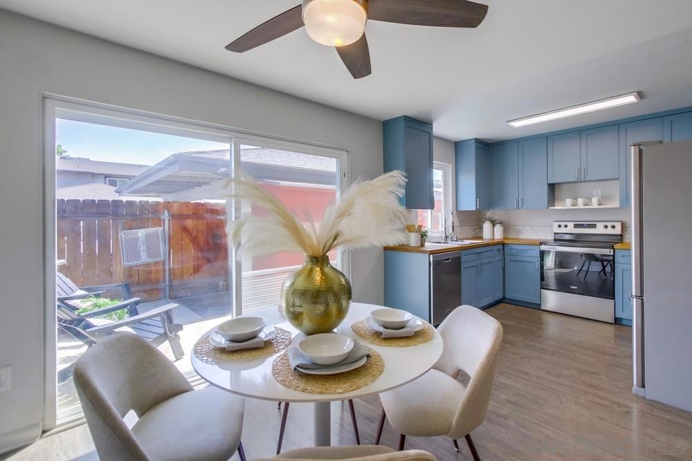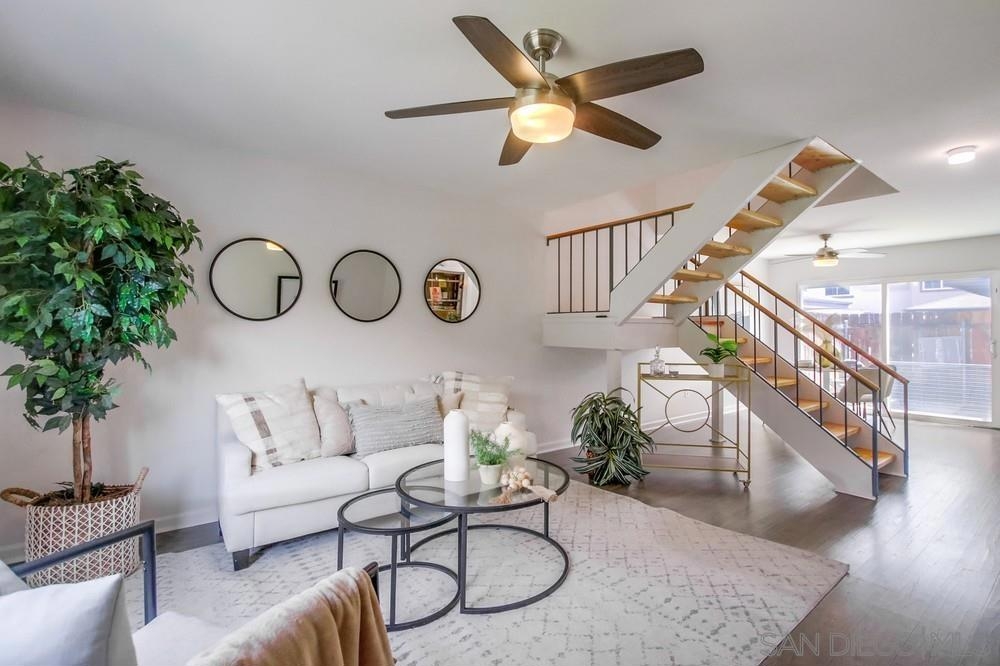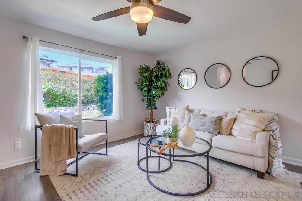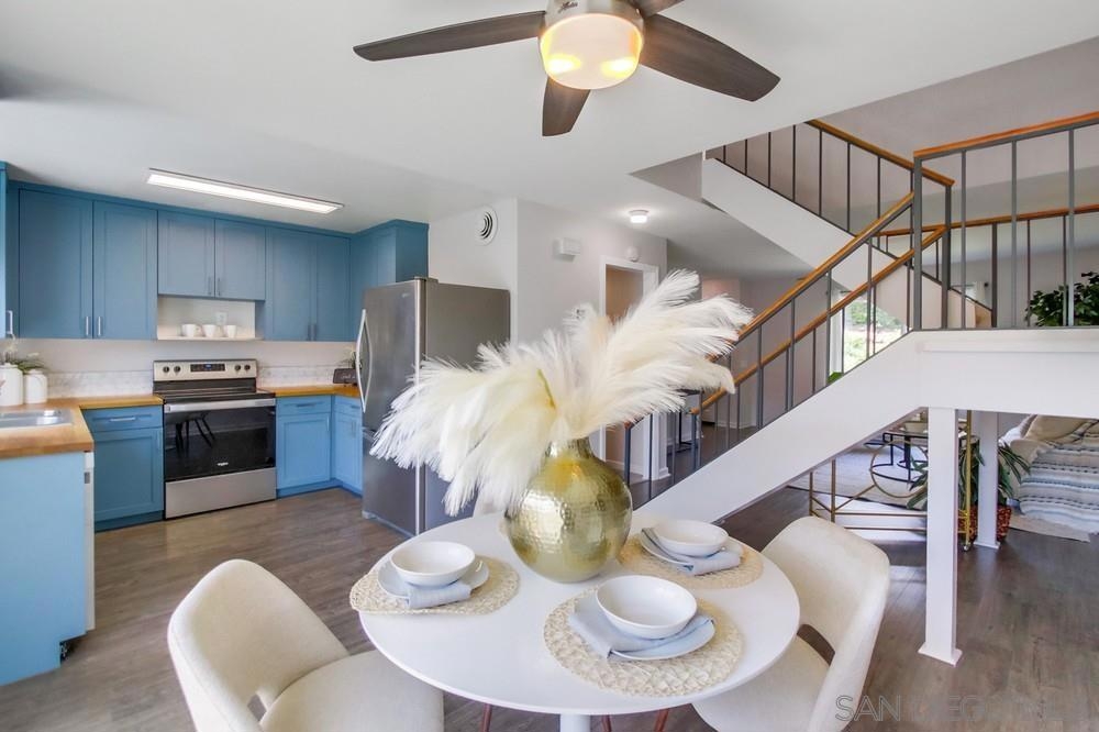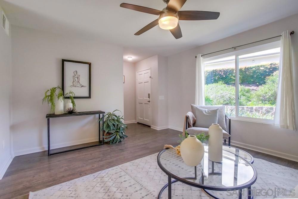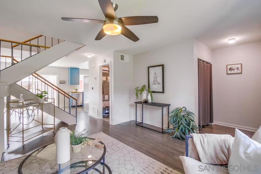 This move-in ready and recently updated townhome in the desirable Del Coronado community of Santee offers the perfect blend of comfort and convenience. This home features fully owned Solar, open concept living area on the first floor with ample space for relaxation and entertaining, a convenient laundry room, a guest-friendly half bathroom, and a new AC system for added comfort. The kitchen is well-equipped with plenty of cabinetry, and new stainless steel appliances, making meal preparation and storage effortless. The upstairs area features refinished stairs and new flooring, adding a modern touch to the home. The large and spacious patio includes a convenient storage shed and is perfect for outdoor dining and BBQs, making it an ideal spot for enjoying the beautiful San Diego weather. The patio also provides direct gate access to a carport and an additional designated parking space providing ease of access. Residents of Del Coronado enjoy a vibrant community with a swimming pool and playground, making it a perfect setting for families. The location is situated close to parks, schools, and a variety of shopping options, ensuring everything you need is just moments away.