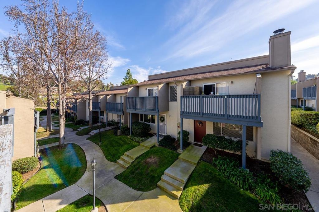 Ready to entertain offers between $525,000 - $540,000. A charming attached home that has the warmth of a well loved property & all the updates needed for comfort. This home is move in ready and features newer laminate wood like flooring , a private patio , newer interior paint, updated bathrooms and more. The layout is open and bright with ample windows, the bedrooms are large in size with great closet spaces. The kitchen has a clean, updated aesthetic with some rustic farm house vibes. The primary bedroom has a private balcony overlooking the community grassy areas and pathways, this unit has private laundry hookups, a cozy fireplace for windy evenings and a HOA maintained pool for those hot days. This corner unit is nestled in a secluded area within the community. Easy freeway access off Mission Gorge Rd, the location is ideal, offering a good mix of the natural Santee landscapes, commercial centers, and schools all within a quick drive from the home. HOA covers Water, Trash and Sewer. Move in Ready homes do not last long, view this home today!