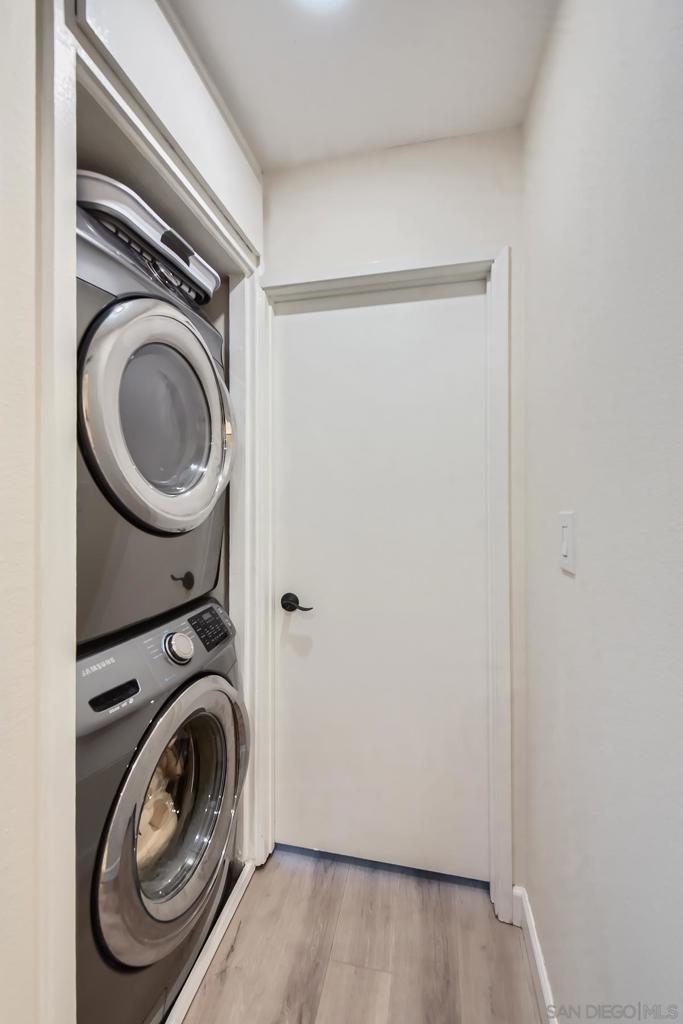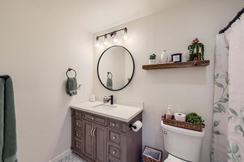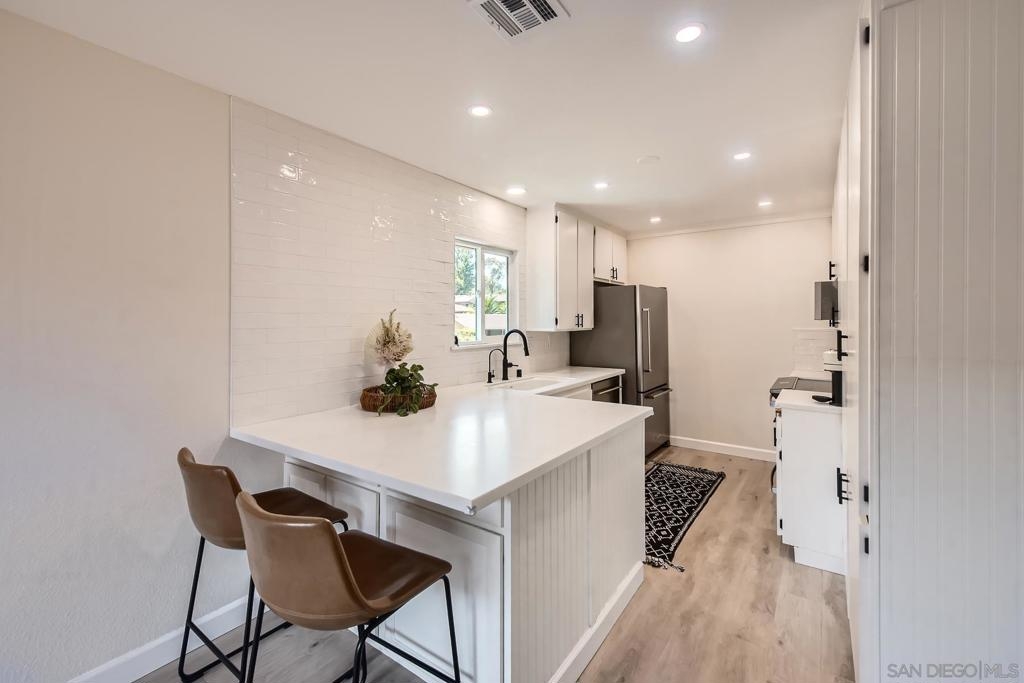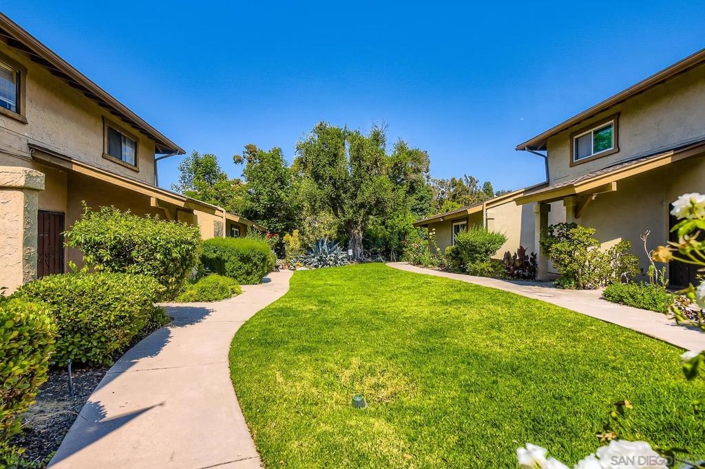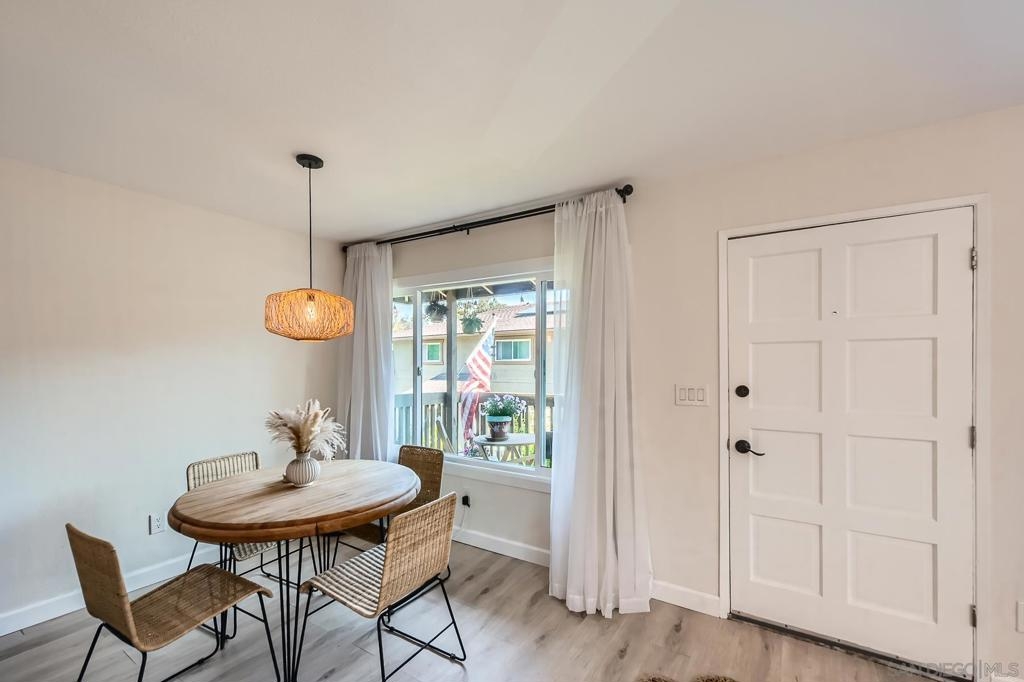 Step into light-filled style and comfort in this beautifully updated 2-bedroom upper-level End Unit condo — perfect for first-time buyers, downsizers craving ease, or investors seeking a move-in ready rental. Located in the heart of Santee, this home offers the ultimate blend of warmth, function, and modern touches. Inside, you'll love the open-concept layout with vinyl flooring, upgraded ceiling fans, and abundant natural light streaming through dual-pane windows. The fresh white kitchen opens seamlessly to a cozy dining nook with designer pendant lighting and peaceful greenbelt views. The second bedroom is currently styled as a sweet nursery but easily transitions into a guest room or home office. Retreat to the spacious primary bedroom featuring a walk-in closet with built-in organization — a rare and practical perk! The updated bathroom boasts neutral finishes and a sleek, modern vibe. Enjoy your own private patio or soak up the sun at the nearby sparkling pool. With a 1-car garage(shared), an additional assigned parking spot, low HOA fees, this VA-approved home is an easy yes. Ideally located near schools, shops, dining, and freeway access, this is the lock-and-leave lifestyle you've been waiting for. Welcome home to Fletcher Valley Villas — where ease meets style in one perfect package.