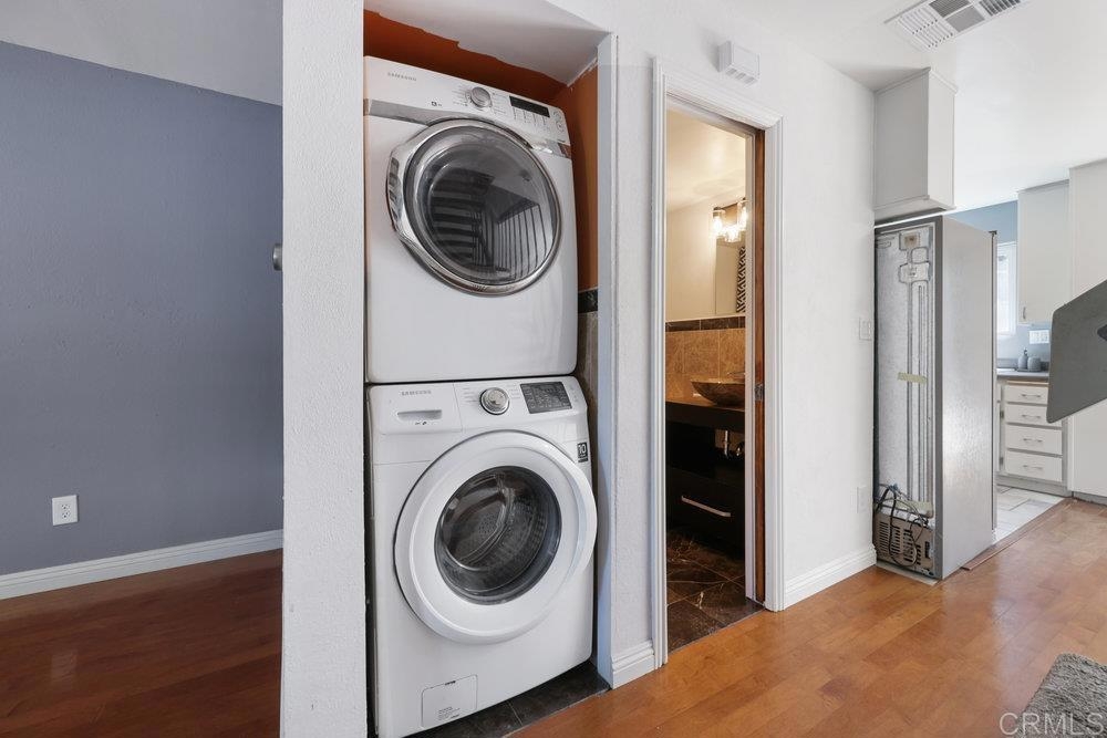 Welcome to your Fletcher Valley Villas townhome! This charming 2 bedroom, 1.5 bathroom, 2 story townhome offers the perfect blend of comfort and convenience. Step inside to find a freshly painted living room with laminate floors, and a bright white kitchen outfitted with upgraded stainless steel appliances. An in-unit full size washer and dryer make laundry day a breeze, and the views of the lush greenspace out the windows provide a serene backdrop, ensuring no neighbors behind for added privacy. Upstairs you’ll find 2 spacious bedrooms complete with newer carpet and a full bath. Outside, you’ll discover a private fenced backyard, perfect for entertaining or simply enjoying a quiet moment. The home includes a dedicated 1 car garage and an additional assigned parking spot, offering ample space for your vehicles. Just steps away, the community pool and spa await, providing a perfect spot to relax and unwind. Conveniently located near top-rated schools, shopping centers, and with easy access to freeways 125, 8, and 52, this townhome is perfectly situated for your daily needs. Don’t miss out on this incredible opportunity to own a beautiful home in a prime location nestled between Santee and Fletcher Hills.