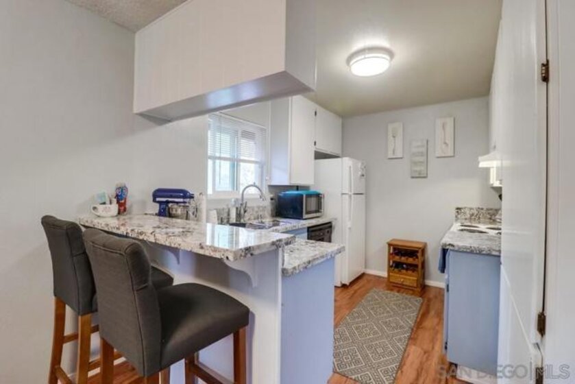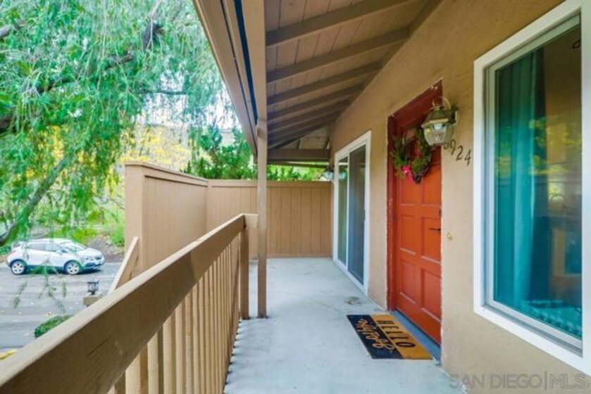 Rarely available large upper corner unit in Fletcher Valley Villas which is located in one of the best pockets of Santee ... just off the 125, Grossmont College Drive and Fanita Drive. There is very little turn over in this shaded, cozy development, and this unit offers generous square footage, a huge primary bedroom and living room, private entry deck, garage plus 2nd space. Sellers are relocating out of state and have priced this unit to move!!! VA approved and ready to go!