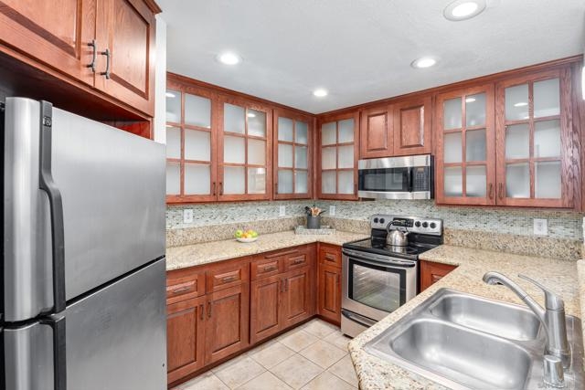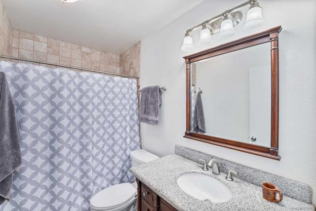 Premium location at Highland Trails in Santee. Rare on market 1st floor, end unit with direct Mission Trails access. Bright 2 bed, 2 bath, 990SF with large all-season balcony. Enjoy steps to the trail for a quick hike or bike. Turnkey inside: updated kitchen with pull-out shelves and granite, refreshed baths, custom natural-gas fireplace, updated lighting, newer carpet. Practical perks: W/D in attached 1-car garage plus assigned space, heated pool and spa, HOA covering water, sewer, trash. Central AC/heat. Lifestyle Bonus: Premium location, zero through traffic, and balcony space you’ll actually enjoy, like an extra room. Minutes to 52 and 125, yet wrapped in nature. Perfect for trail lovers, work-from-home peace seekers, and anyone who wants resort vibes at home. Ready to fall in love? This is the right space. Includes W/D in garage.