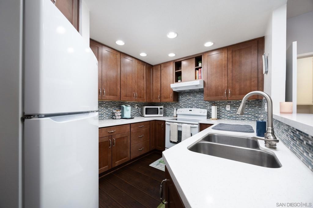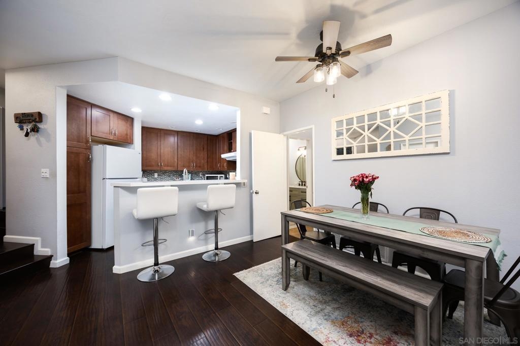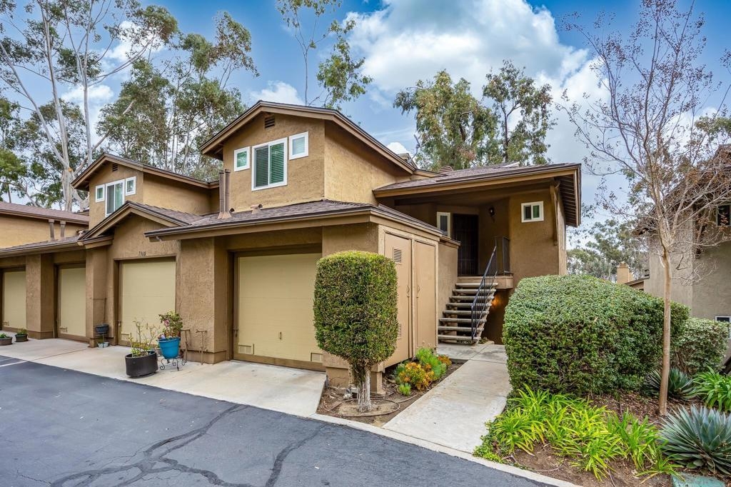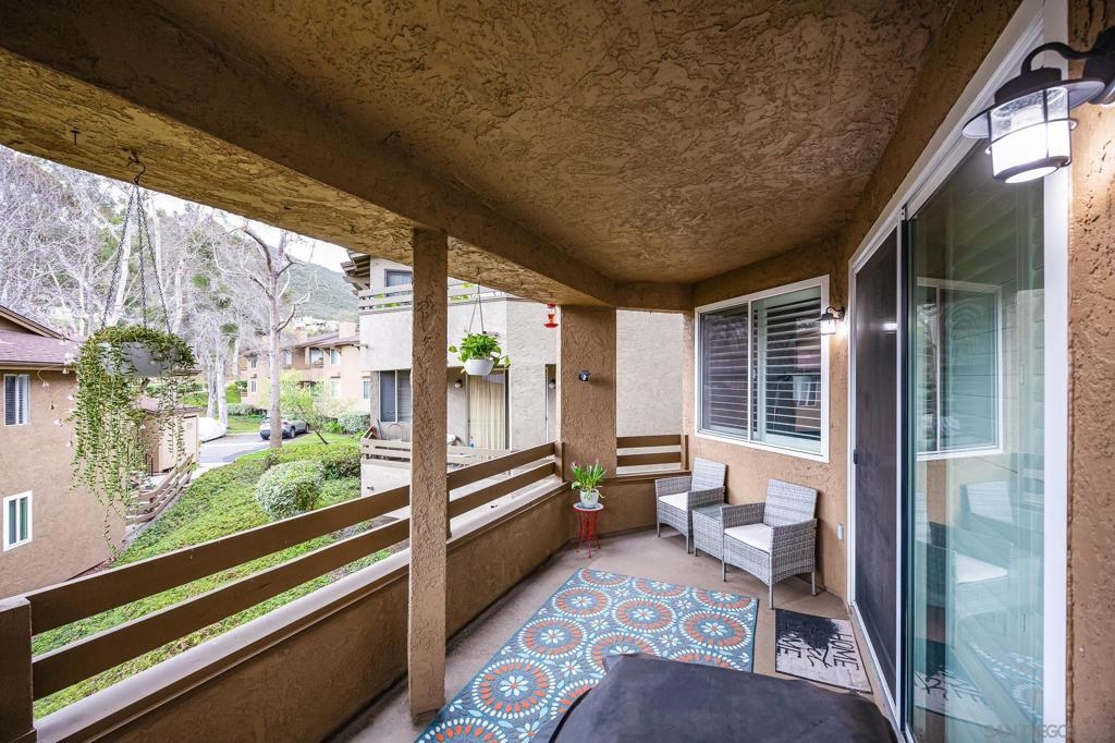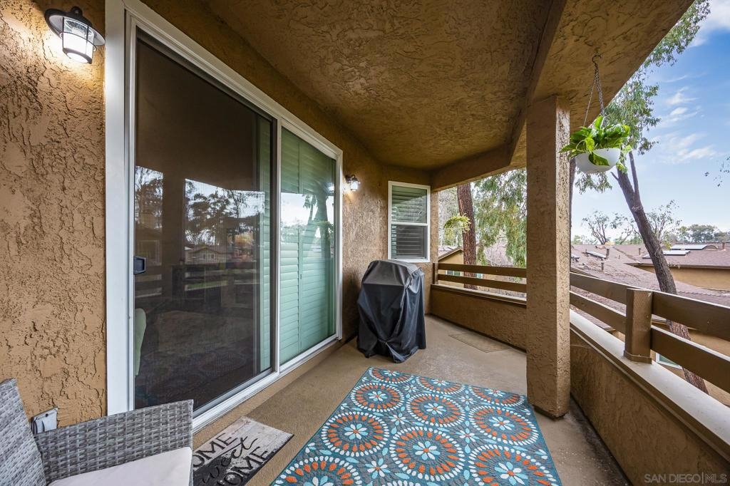 Discover this beautifully updated townhome in the west foothills of Santee, offering modern style and convenience! This 2-bedroom, 2-bathroom home is designed for comfort, with bedrooms positioned on opposite sides of the unit, creating a dual primary suite feel—ideal for privacy. Featuring hard flooring throughout, a stylish tiled fireplace, and a bright, open layout, this home exudes contemporary charm. The updated kitchen boasts newer cabinets, natural stone countertops, and ample storage, making it perfect for home chefs. Enjoy the convenience of an attached one-car garage equipped with an EV charger, as well as a washer and dryer. The home also provides two additional assigned parking spaces! Step outside to your large private patio, which overlooks a lush green space, providing a peaceful retreat. With community amenities like a swimming pool, spa, playground and your own access to mission trails hiking trails this property provides it all!