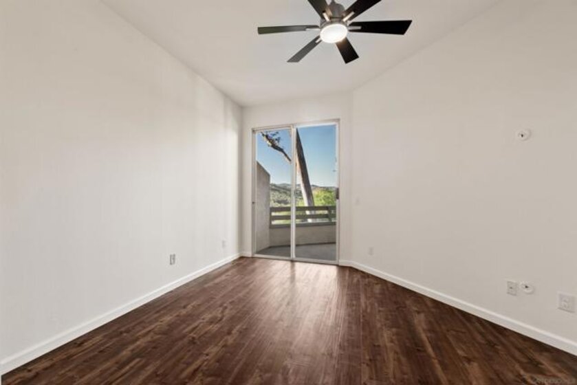 Set along the edge of Highland Trails, surrounded by natural beauty at the base of Mission Trails Regional Park. This light-filled top-floor residence offers one of the most desirable locations in the community, capturing sweeping mountain views from every room, offering a rare and immersive natural backdrop throughout the home. Featuring the most sought-after floor plan with dual primary suites, soaring ceilings, multiple skylights, and a cozy fireplace create an inviting living space. The kitchen includes a full suite of stainless appliances, breakfast bar, and walk-in pantry. Enjoy direct access to your private attached 1-car garage with full-size washer and dryer, added storage, and EV charger, plus an additional assigned parking space. Recent upgrades include fresh interior paint, new LED lighting, ceiling fans, and new carpet on the staircase and in closets. Bordering over 5,800 acres of preserved parkland with miles of scenic trails, including Cowles Mountain and Lake Murray, this home offers a rare blend of tranquility and convenience. Ideally located near freeways, shopping, and just minutes to Santee Lakes Recreation Preserve. Community amenities include a pool and spa, with HOA covering water, sewer, trash, and basic cable. VA and FHA approved.