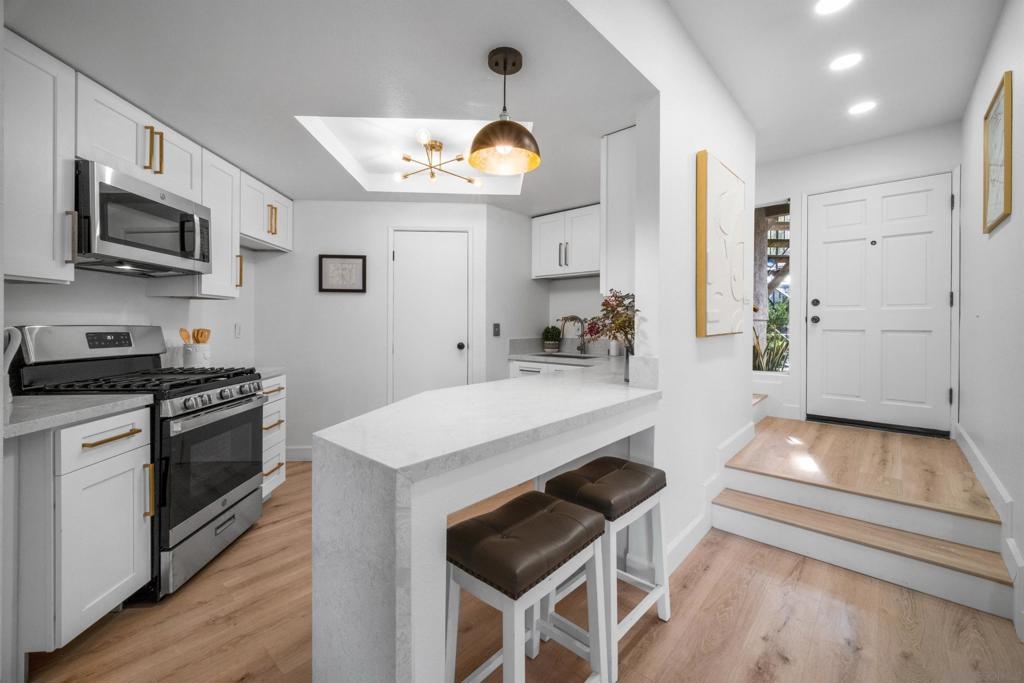 Beautifully renovated 2-bedroom, 2-bathroom condo in Santee, offering a modern and inviting living space spanning 990 sqft. This thoughtfully updated residence features a brand-new kitchen with contemporary finishes and walk-in pantry. The bathrooms have been luxuriously designed, and large windows fill the space with abundant natural light, creating a bright and welcoming ambiance. Adding to the charm and value of this exquisite property is a spacious balcony that offers serene views of the surrounding trees and nature, providing a peaceful retreat for relaxation or entertainment. With a convenient location close to shopping, dining, and parks, this condo is ideal for individuals, couples, or small families seeking comfort, style, and a touch of nature's tranquility.