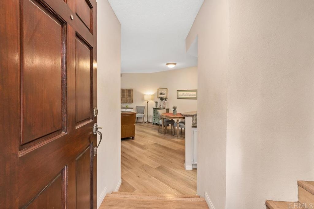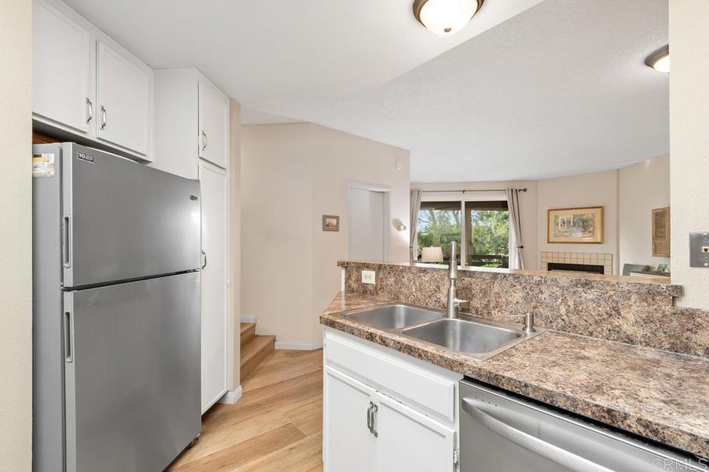Stunning Condo in Highland Trails Community of West Santee. Welcome to this stunning single-story end unit 2-bed, 2-bath condo in Highland Trails. With 990 sqft of luxurious living space, this home exceeds expectations. Upgrades include new double-pane windows and waterproof vinyl plank flooring throughout. Cozy up by the fireplace or entertain on the outdoor patio deck with breathtaking views of open space and Mission Trails Park. The open floor plan is perfect for relaxation and entertaining. The kitchen features newer appliances and central A/C. High ceilings create a spacious and airy ambiance, welcoming you home You'll have an attached garage and assigned parking. The HOA covers water, trash, insurance, and basic cable. Enjoy easy access to nature, shopping, and dining. Additional outside amenities include a swimming pool, hot tub, toddler playground, and small basketball court. The location offers a short drive to freeways, ensuring a convenient commute. Don't miss out on this exceptional home. Contact us today for a private viewing.