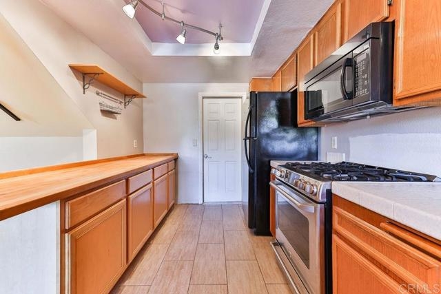 This home features a spacious floor plan with a balcony, a patio and is the largest unit in the complex. Entry level is to the living room, with direct access from garage to the kitchen. Both bedrooms, each with their own en-suite are located downstairs, one with its own private patio area. Come see this very desirable model and complex surrounded by Mission Trails Regional Park. VA and FHA approved. Besides the one car attached garage, you have an assigned parking spot.