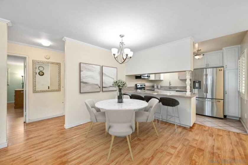 Rare end-unit single level home with no neighbors above or below! This updated residence offers modern comfort with OWNED SOLAR, SELLERS HAVE ZERO ELECTRIC BILL, dual-pane windows, durable LVP flooring, remodeled bathrooms, and a beautifully appointed kitchen featuring stainless steel appliances, crisp white cabinetry, and granite countertops. The spacious primary suite includes patio access, a walk-in closet, and a private en-suite bath. Enjoy the convenience of in-unit laundry and a private patio. Carport right behind unit, direct access into home from patio. Community amenities include a pool, and the home comes with TWO ASSIGNED PARKING SPACES—one carport and one uncovered. Ideally located in Horizon Village, just minutes from shopping, dining, and easy access to freeways 52 and 125.