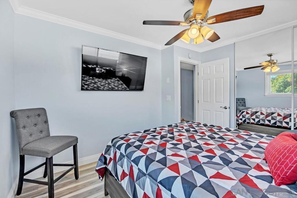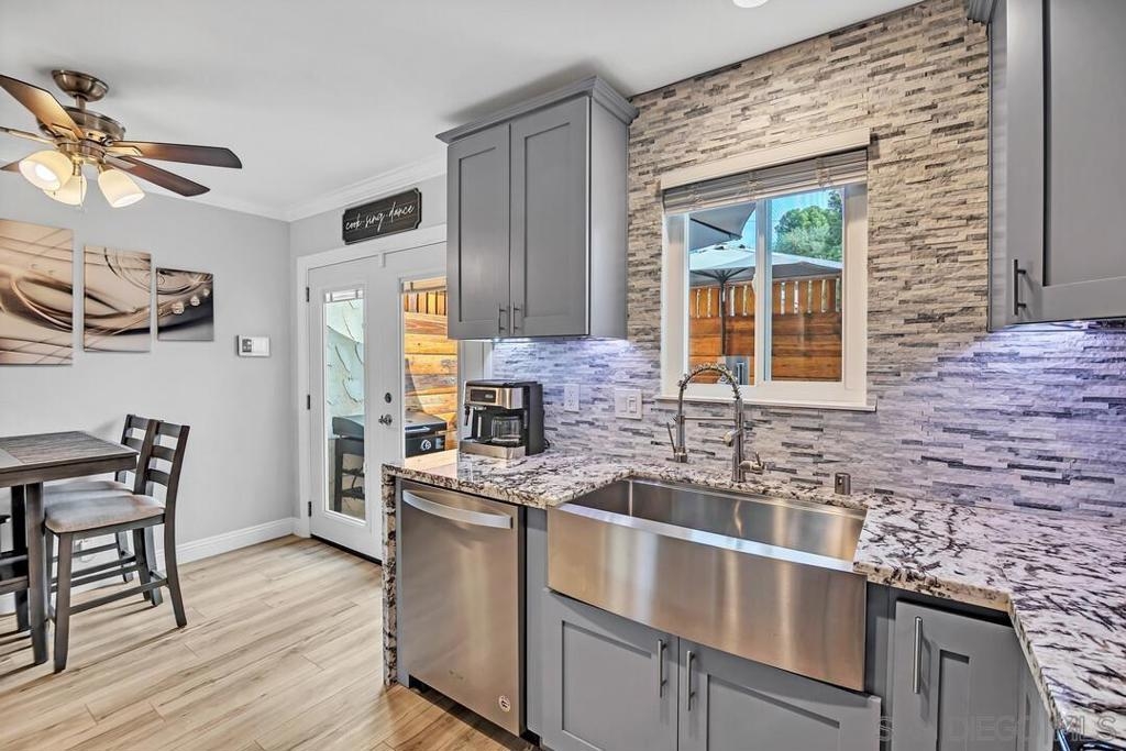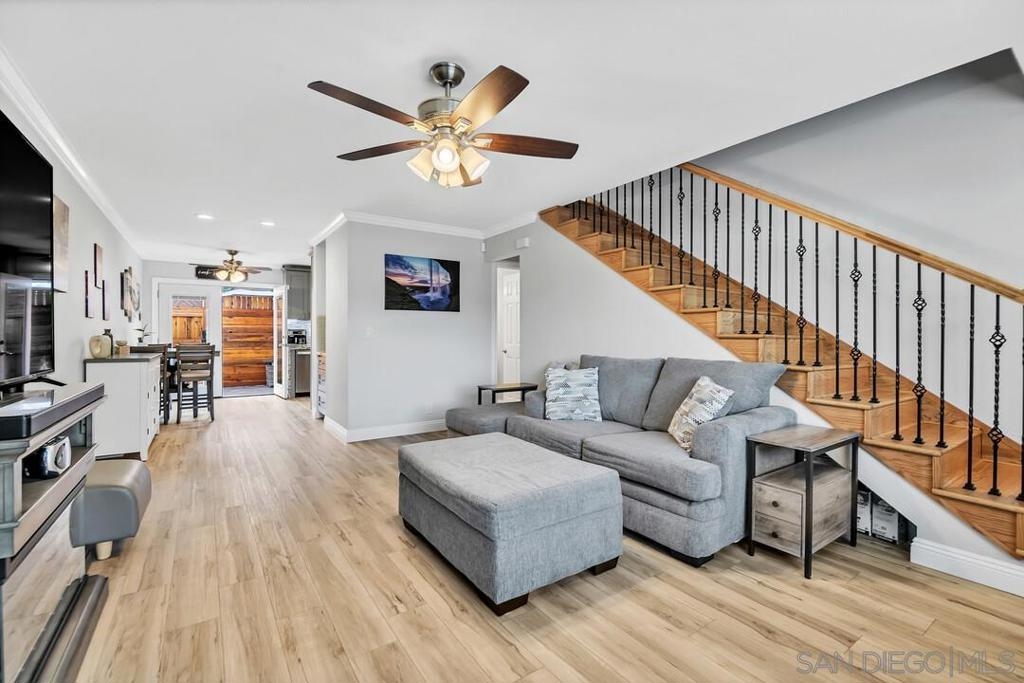 Welcome to this stunningly updated home in Santee! Step inside to discover newly laid flooring that seamlessly extends throughout each spacious room, complemented by ceiling fans, modern lighting, and a fresh coat of paint. Elegant crown molding and sophisticated interior doors add a luxurious touch to these spaces. The contemporary kitchen, equipped with sleek stainless-steel appliances, stylish cabinetry, and under-cabinet lighting, awaits to ignite your culinary creativity. Fully renovated bathrooms boast modern fixtures and chic vanities, elevating the home's appeal. This extensively upgraded home includes a new electric box, dual pane windows, and fully finished closets. Step out through the double doors onto the meticulously finished patio, featuring a freshly stained redwood fence, tile flooring, and an upgraded, full-sized washer and dryer closet. Ample storage space, including a micro space with a pull-down ladder, ensures convenience. Nestled within a community offering a sparkling pool and covering hot water, sewer, and trash utilities, this unit embodies convenience and luxury. With its impressive array of features, this home stands out as a must-see gem. Broker and Broker's Agents do not represent or guarantee accuracy of the square footage, permitted or un-permitted space, bd/ba count, lot size/dimensions, schools, or other information concerning the conditions or features of the property. Buyer is advised to independently verify the accuracy of all information through personal inspection & w/ appropriate professionals to satisfy themselves.