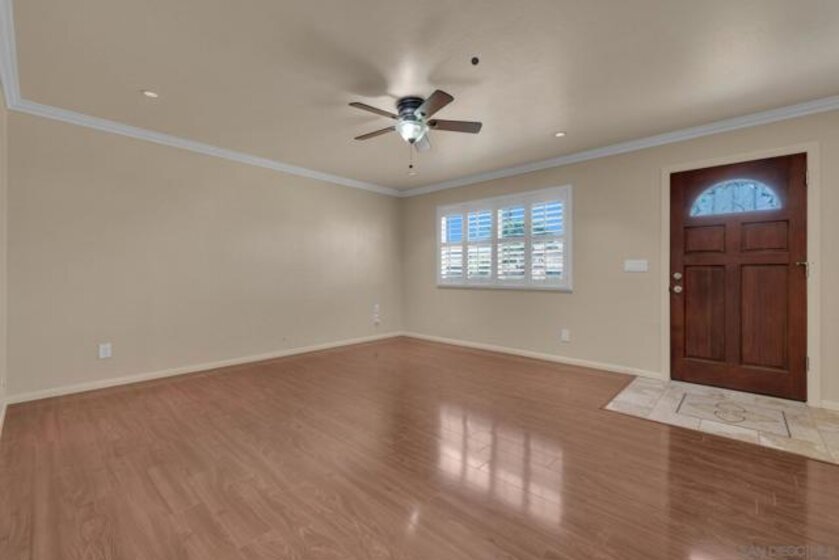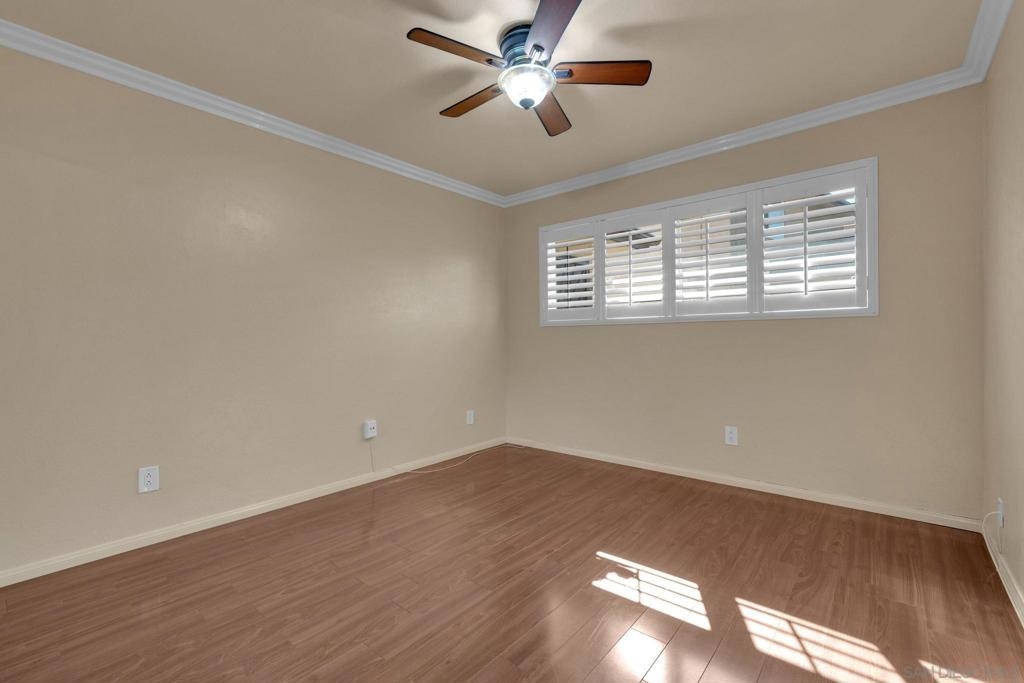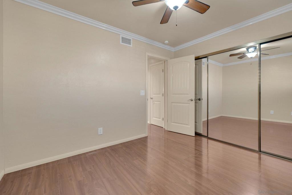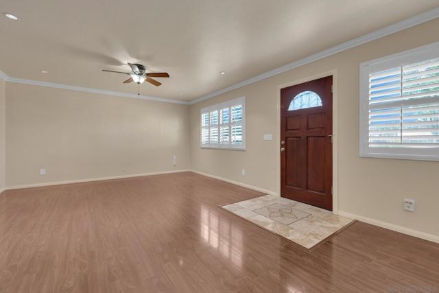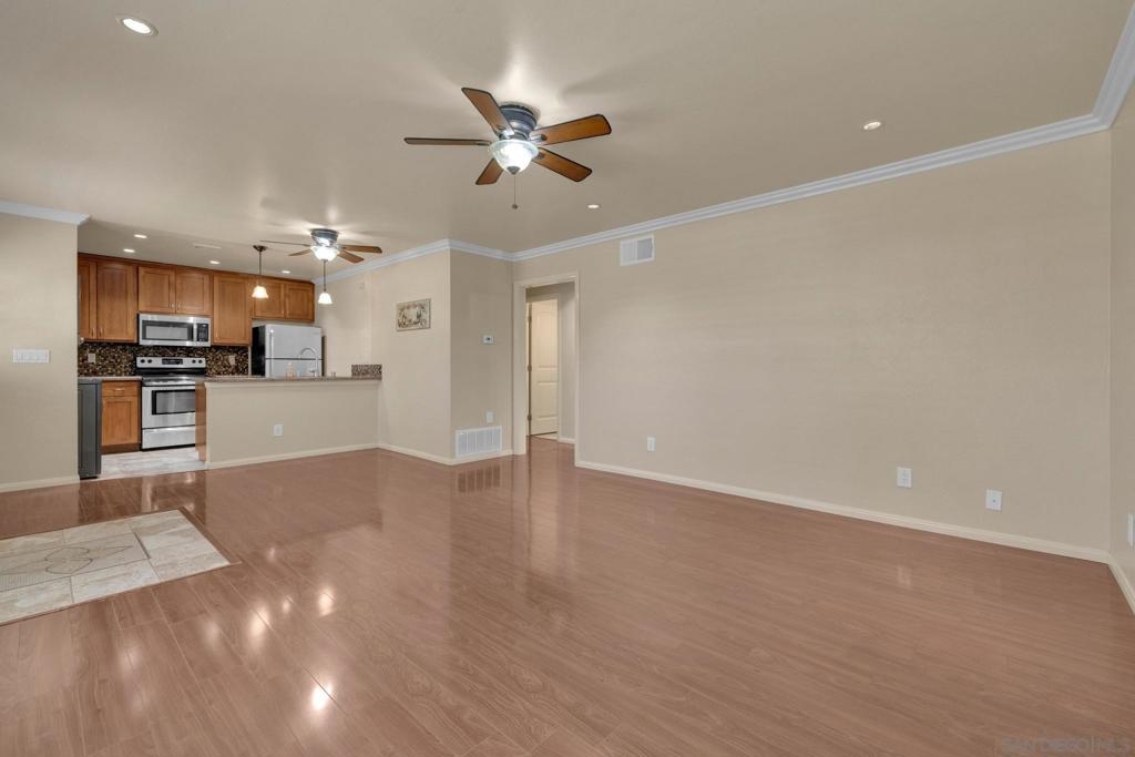 Welcome to this beautifully renovated 2-bedroom, 1-bathroom single-level condo, ideally situated in one of the most sought-after areas of theMission La Vega community in Santee. This light-filled lower-level unit offers an inviting open floor plan with wood flooring throughout, acharming galley-style kitchen with a breakfast bar, granite countertops, and stainless steel appliances — perfect for comfortable living andeffortless entertaining. Thoughtful upgrades include double and triple-pane windows, plantation-style blind shutters, modern lighting andplumbing fixtures, and central A/C and heat to keep you comfortable year-round. Unwind in the relaxing jacuzzi tub after a long day, or enjoythe convenience of two generously sized bedrooms with ample closet space. The updated bathroom features a stylish shower-in-tub combo foradded functionality. With its unbeatable location close to shopping, dining, parks, and freeway access, this move-in-ready home offers theperfect blend of privacy, comfort, and convenience. Don’t miss your chance to own this rarely available gem in Mission La Vega!