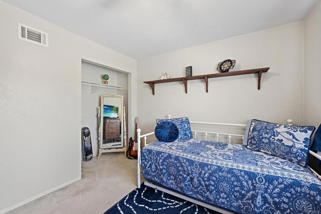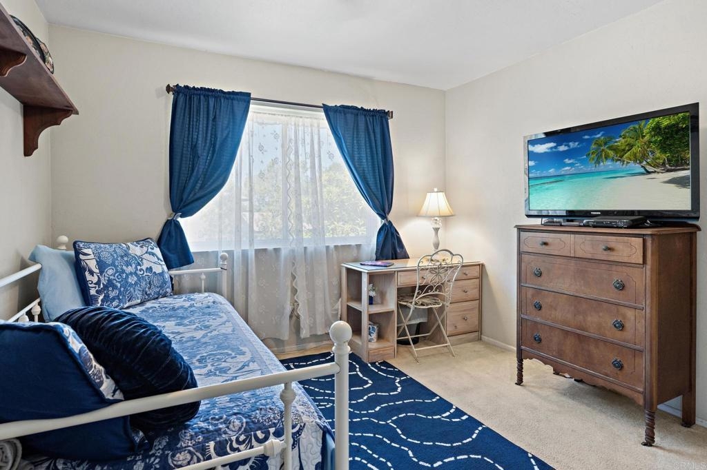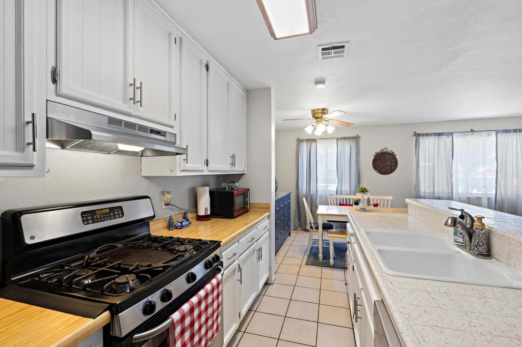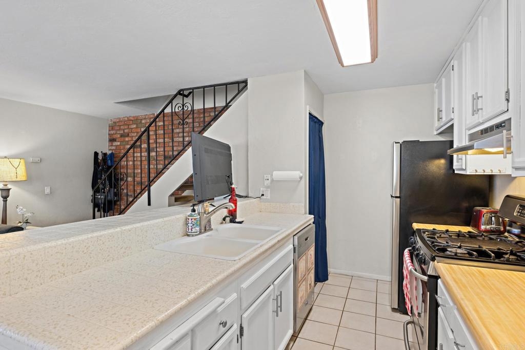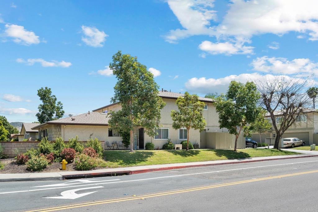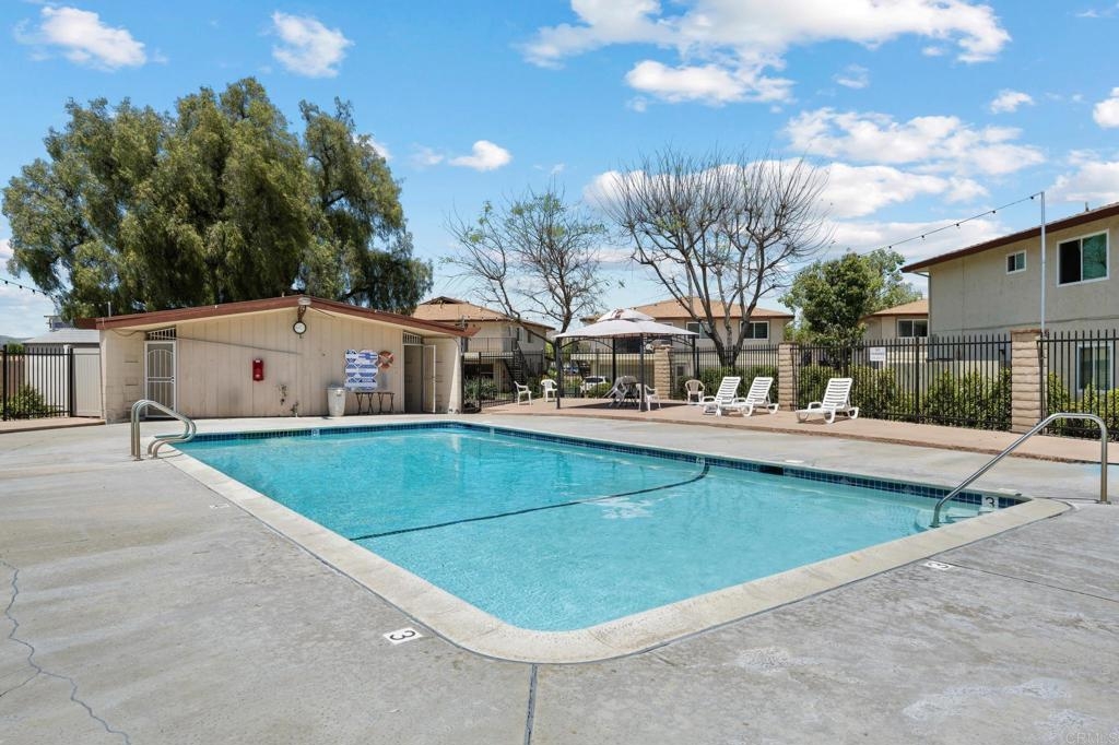 This beautiful corner-unit condo is the best deal in Santee. Dual paned windows, with tile floors & counters, walk-in closet, ceiling fan, and central air. No neighbors above or below and lives like a single-family home. HOA covers hot and cold water, trash, common area maintenance, and the pool! Walking distance to shopping and trolley! The shared garage/carport has storage.