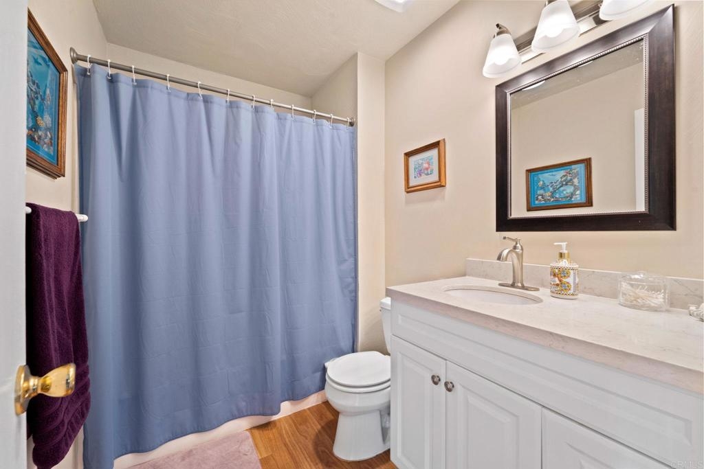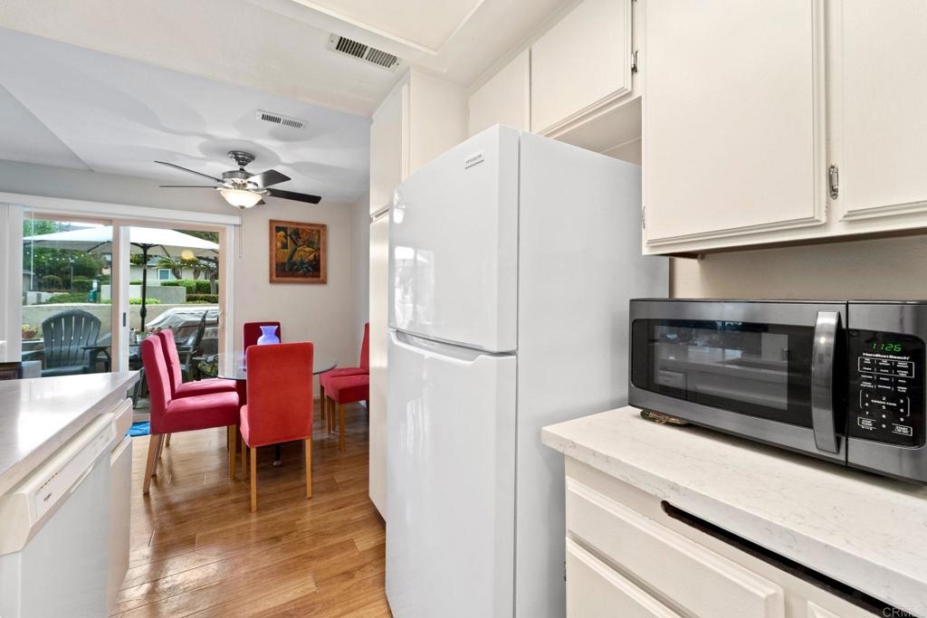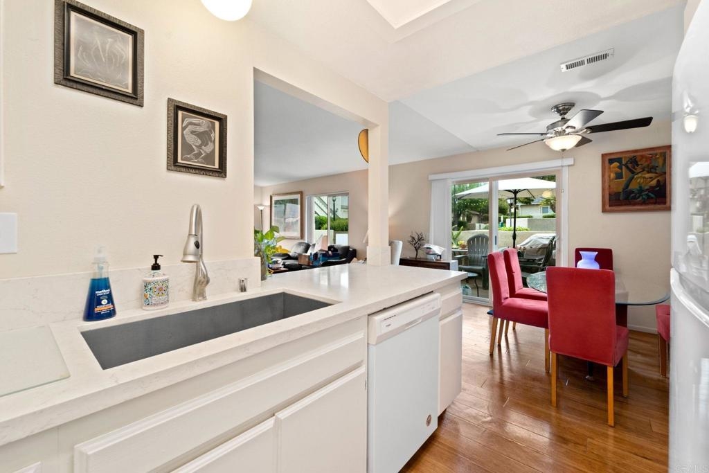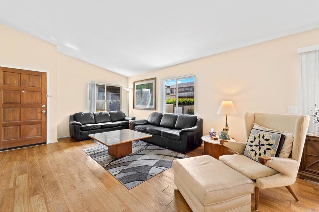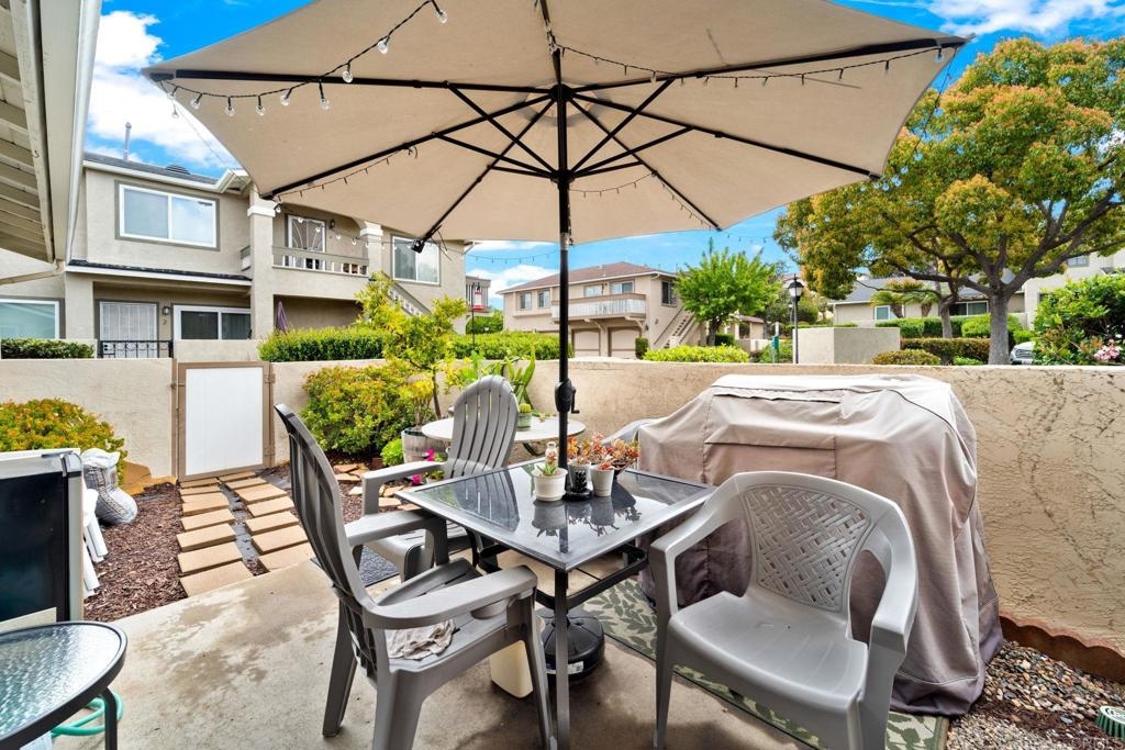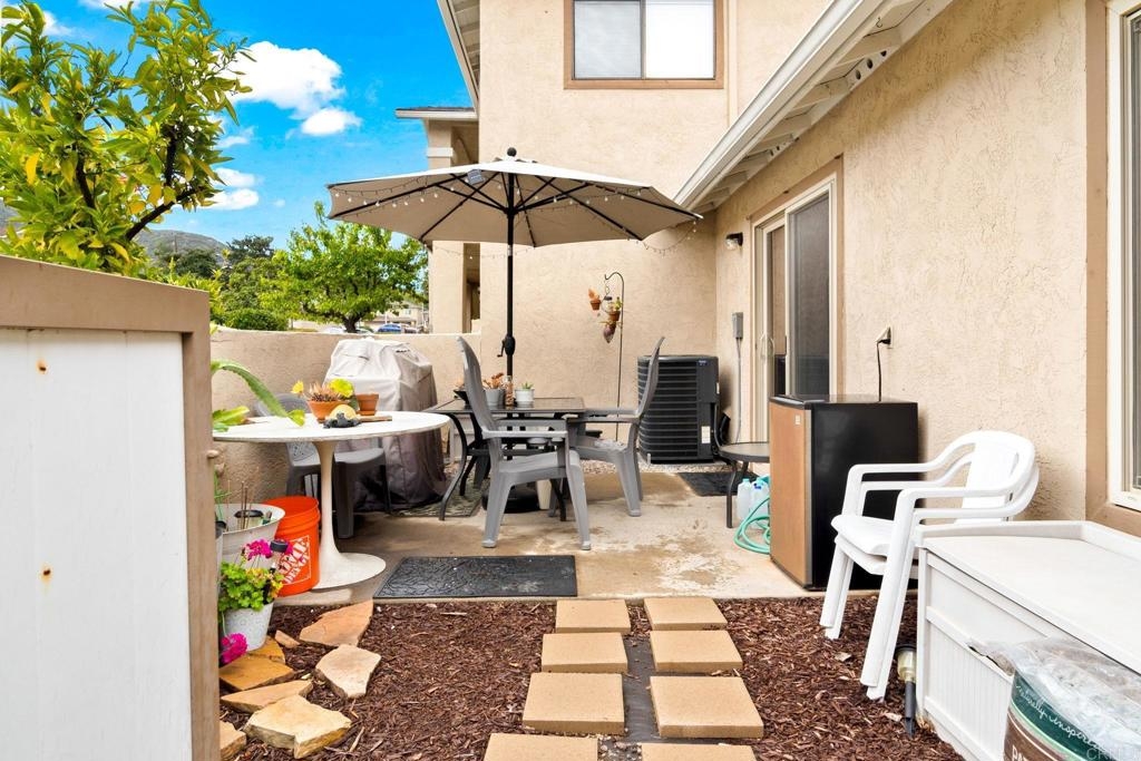 Welcome to 7974 Arly Ct #5, Santee – a delightful 3-bedroom, 2-bathroom townhome nestled in a serene community setting. This end unit boasts an inviting open floor plan spanning 1,086 square feet, offering both comfort and convenience. As you step inside, you are greeted by the airy living room adorned with vaulted ceilings, while natural light floods the interior through the dual paned windows. New A/C, water heater, and windows! The heart of this home is its well-appointed kitchen, seamlessly flowing into the dining area. Sliding glass doors lead out to the expansive fenced-in patio, offering a private oasis for outdoor relaxation or al fresco dining. Additionally, a 1-car detached garage provides convenient parking and extra storage space. Retreat to the large primary suite featuring dual sinks and ample closet space, providing a serene sanctuary to unwind. The two additional bedrooms also boast generous closets and charming window shelves, offering versatility for guests, a home office, or a hobby room. This townhome is part of a vibrant HOA community that offers a community in ground pool, and HOA dues cover water and trash, ensuring hassle-free living. Conveniently located in Santee, residents enjoy access to excellent schools, abundant shopping, and dining options just minutes form Towne Center. With easy access to major freeways including the 125 and 52, commuting to neighboring areas is a breeze. Don't miss the opportunity to make this charming townhome your own!