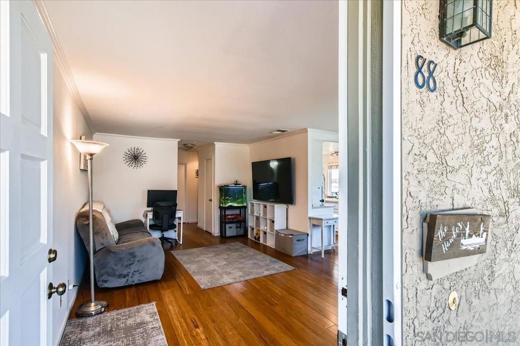 Welcome to Unit 88— A RARE, highly sought-after 2-bed, 2-bath CORNER UNIT offering peace and privacy with no neighbors above or below and only one shared wall while also allowing for more natural light. Located in a quiet, well-kept community, this upgraded home blends comfort and style in all the right ways. Enjoy fresh paint, ¾” engineered bamboo wood flooring, and large living area. The kitchen features modern finishes, while both bathrooms have also been tastefully updated. The spacious primary suite includes a bigger than usual walk-in closet. Equipped with extras like central A/C, dual-pane windows, and in-unit laundry add everyday ease. Relax or entertain on your oversized private balcony with synthetic turf and peaceful views. A spacious private 1-car garage (with upgraded door) directly below unit, a second assigned parking spot, and ample guest parking add even more value. Located in a VA-approved, low-HOA community just minutes from parks, hiking/walking trails, top-rated schools, shopping, and major freeways. You don't want to miss out!