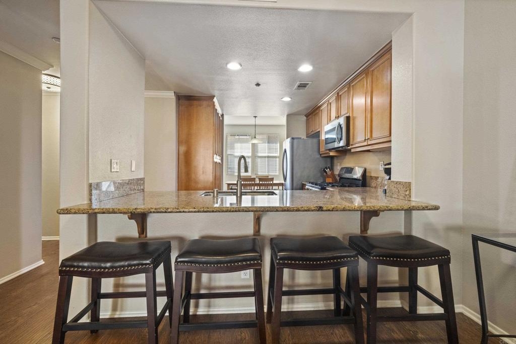 Welcome to Morningside Villa in Santee. One of the largest floor plans in this gated community offers 4 bedrooms 4 baths with no neighbors above or below you! There's a single bedroom with a full bath on the first floor perfect for roommate or in-law situation! Teens will love this room, too! Newer LVP flooring, newer paint, & new tankless water heater. Kitchen with private dining room and opens up to your living space. Newer appliances convey including full-size washer/dryer! Attached two car garage, AC and in-home laundry room. Plenty of storage throughout! Resort-style amenities including pool and spa, picnic/BBQ area, children's play equipment and enough greenery for furry-friends to enjoy. Close to all major freeways, schools, shopping, and restaurants. FHA/VA approved complex!! No Mello-Roos!