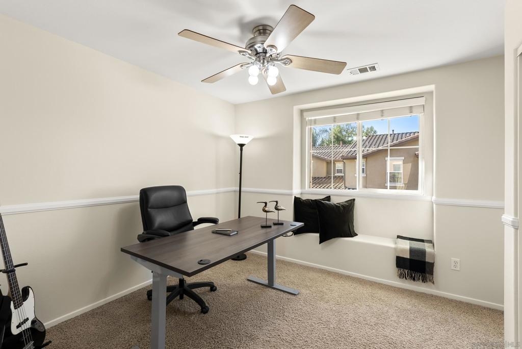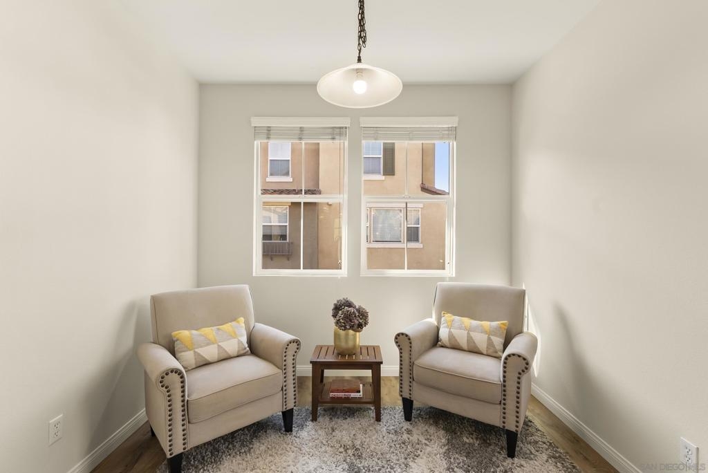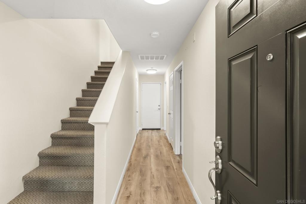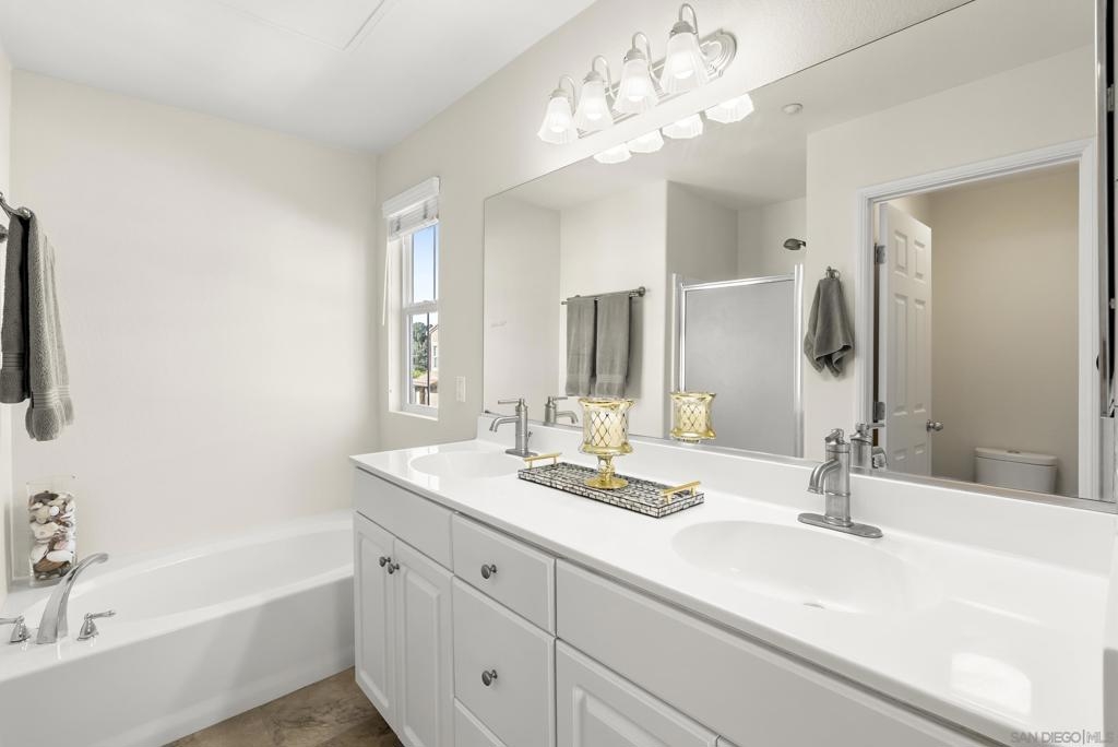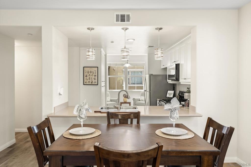 Welcome home to a peaceful and thoughtfully designed townhome in the Morningside Villa Community of Santee. This contemporary tri-level offers 4 bedrooms and 4 bathrooms along with an open plan living/dining area on the main floor. Move-in ready, with fresh paint, updated hardwood flooring, master tiling and recessed lighting. Quiet end unit boasts additional windows, providing extra light and cross-breeze. Enjoy a versatile, first level bedroom and en-suite bath. Entertain with ease in the open-plan second level, where the kitchen, dining, living room and covered balcony flow seamlessly into one another. The cheery kitchen extension can be used as a breakfast nook, another office or a nice spot to kick up your feet and read. Another generously sized bedroom and bath are nestled into the corner on this floor. Enjoy your own retreat in the upstairs primary suite which includes a private balcony, walk in closet, luxurious soaking tub, separate shower and dual sinks. An additional bright bedroom on this floor is also en suite. Attached two-car garage, lower level laundry room, updated appliances and ceiling fans in every room add to the convenience and comfort of this beautiful home. Residents enjoy access to community amenities such as a sparkling pool, spa, picnic and BBQ area, and children's play equipment. With its scenic surroundings and well-maintained facilities, Morningside Villa is a place you'll love to come home to!