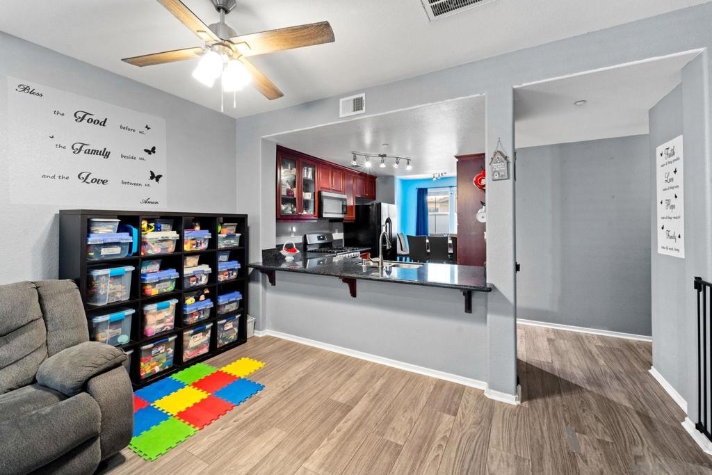 Spacious, 4 bed, 4 full bath in a gated community. 3 story townhome with luxury vinyl plank throughout. Kitchen has an island granite countertops, cherry wood cabinets and expansive living space with 2 dining areas. 1 bedroom and 1 full bath on the first floor. Beautiful complex with sparkling pool, spa, bbq and play area. Primary bedroom with full bath and walk in closet. Separate laundry room and entry level, 2-car garage. Beautiful complex with sparkling pool, spa, bbq and play area within walking distance to shops and public transportation.