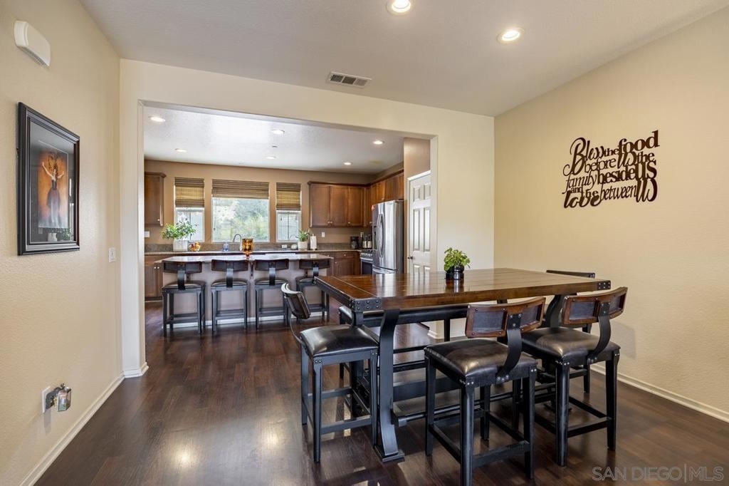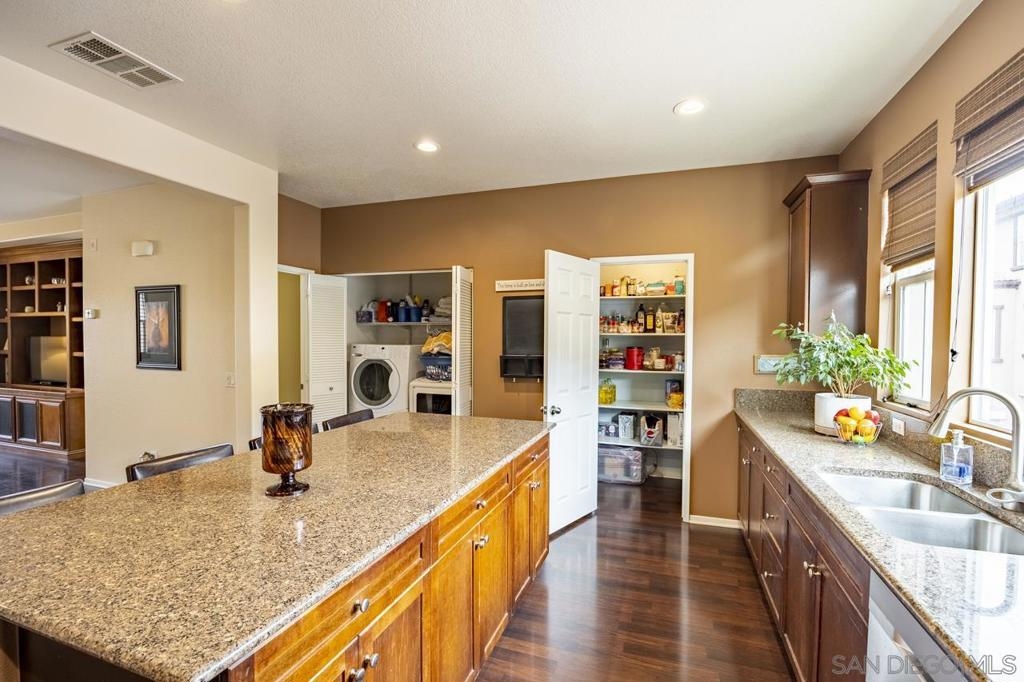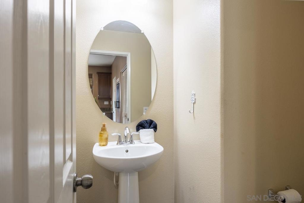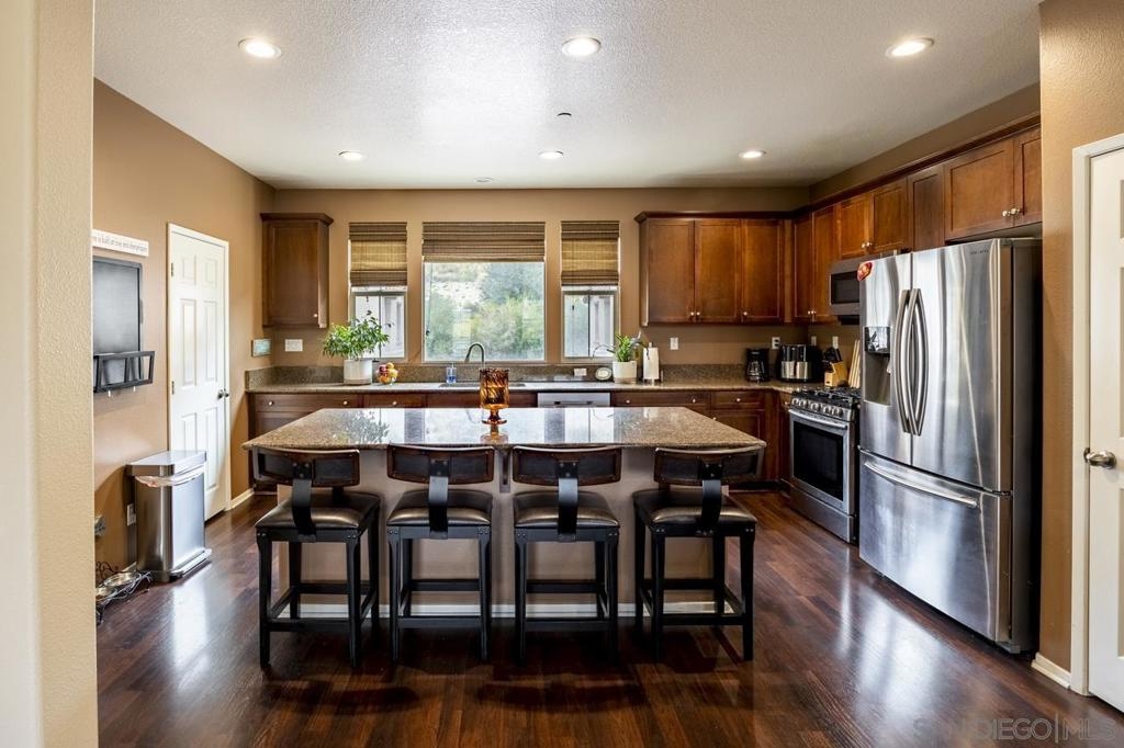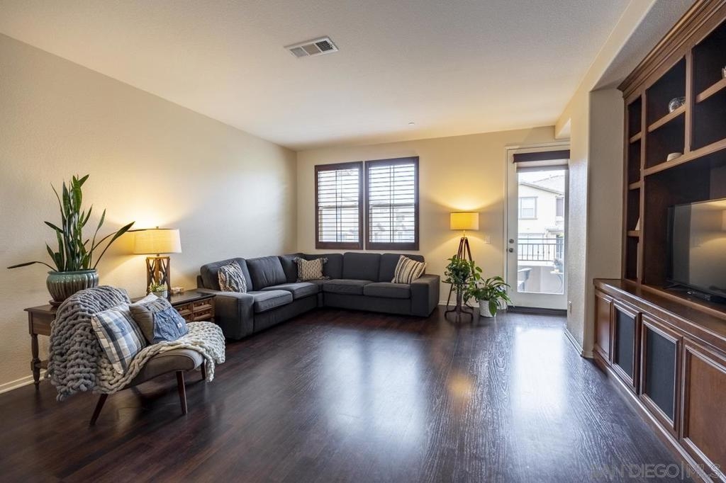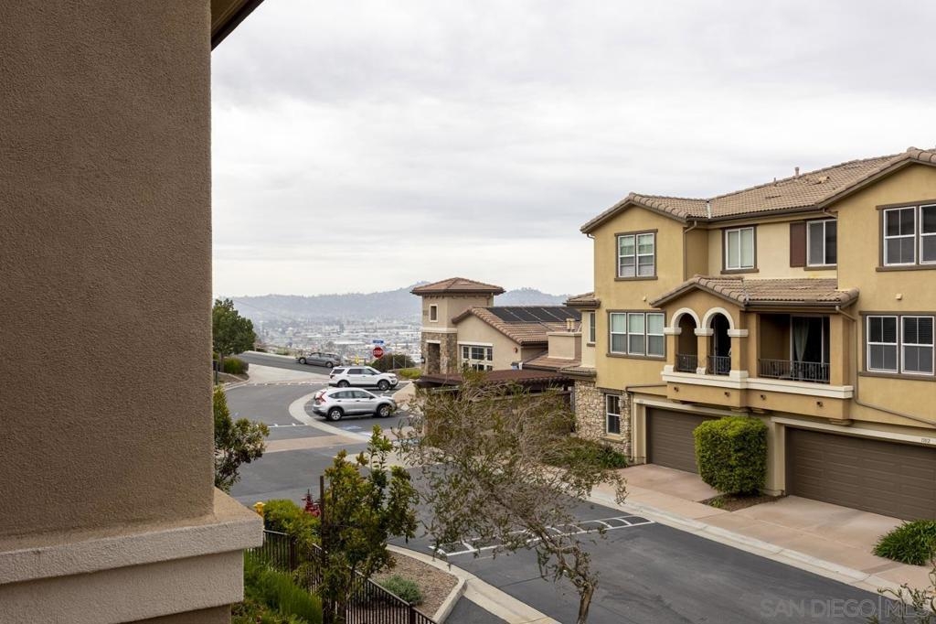 Hilltop living in Sky Ranch catches the breeze and the view for an experience unparalleled in Santee. This townhouse offers quality finishes and an attached, direct-entry two car garage. The large kitchen, which flows into the great room, features a seated island, granite counter tops, stainless steel appliances, walk-in pantry and incredible storage. Great room details include custom built-in and beautiful wood laminate floors. The great room opens to a view balcony - perfect for winding down at the end of a long day. All bedrooms have en-suite bathrooms. A first-floor bedroom suite, separate from the rest of the living space, could be a rental. Property is tucked away yet only minutes from the 67, 52 and 8 freeways. HOA allows for two "ordinary" household pets and requires "aggressive breeds" be kept indoors or muzzled to prevent injury. Please call the HOA for further clarification.