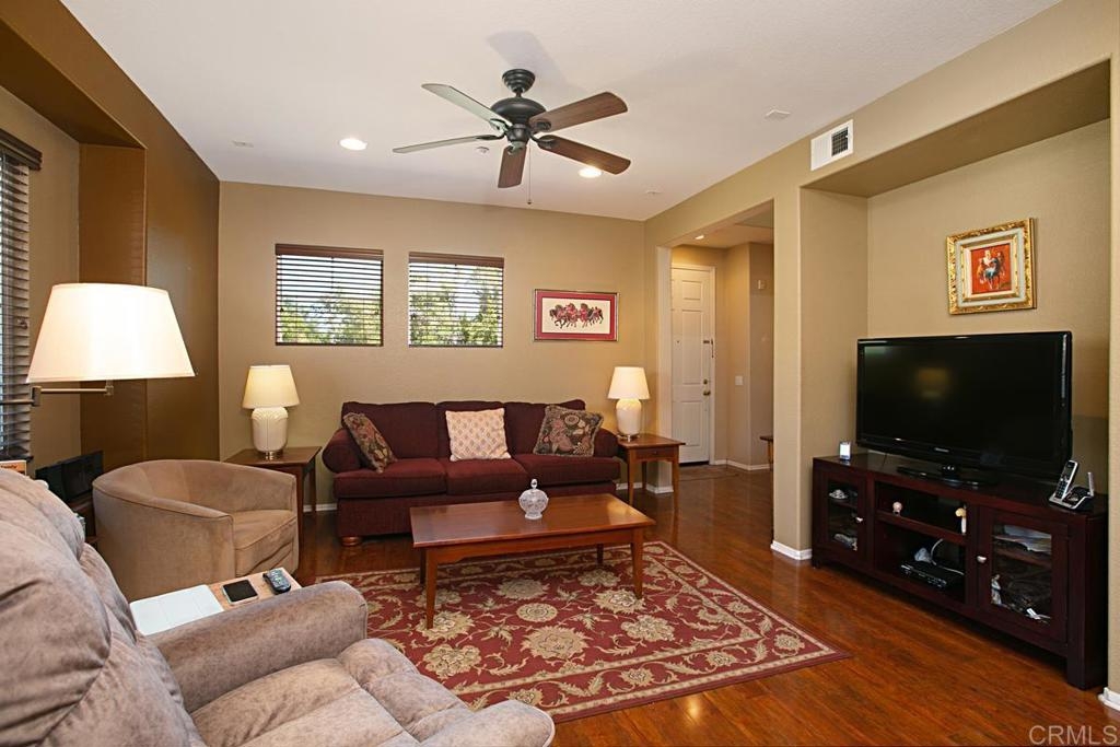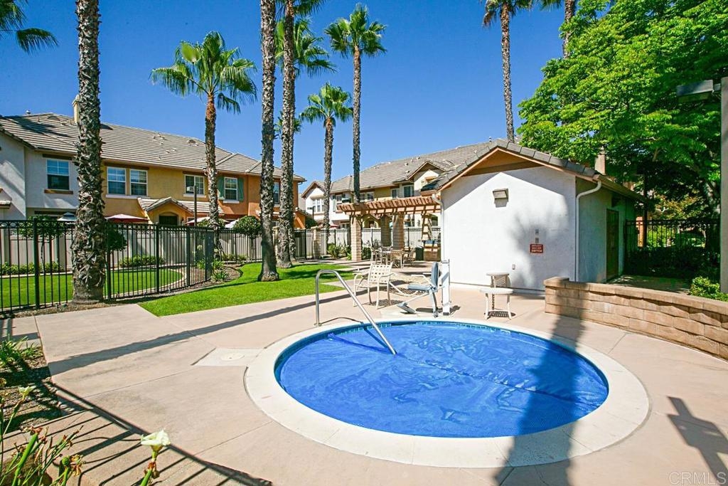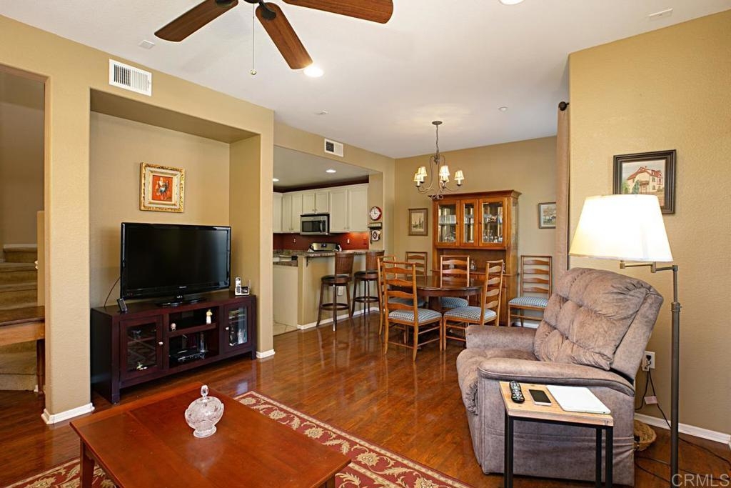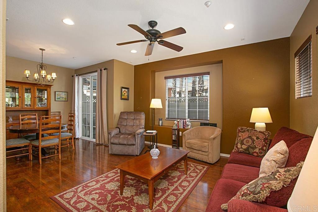 Must See! Beautiful 2 story 2005 Palmilla Townhome (VA loan approved) with Tree-lined view; located within walking distance to Mast Park Trails, Rio Seco school, stores, restaurants, Sportsplex, and Town Center; open living room, dining room, and kitchen floor plan; one adjoining wall with 10 ft ceilings in downstairs living spaces; back yard patio to relax and BBQ on; walk out the back gate to your community BBQ and spa areas; primary bathroom has garden tub with separate shower and walk-in closet; 2 car direct access garage; laundry room; stainless steel kitchen appliances, as well as Washer and Dryer convey; wood plank flooring in entryway, living and dining room; tiled kitchen and bathrooms; split stairs, hallway, and bedrooms carpeted.