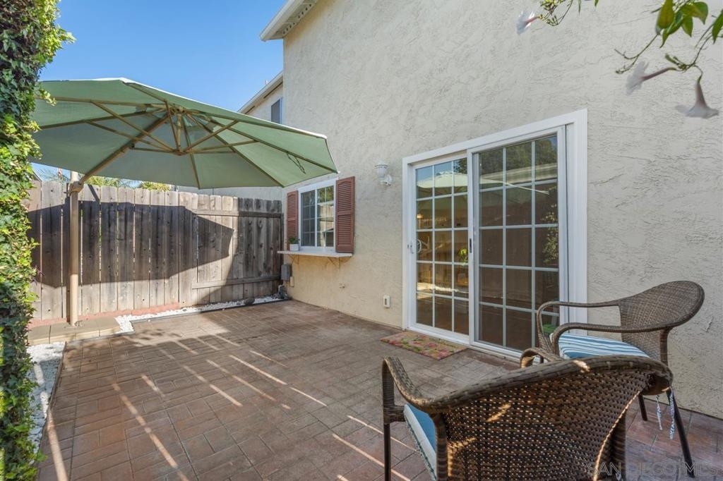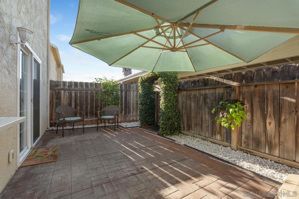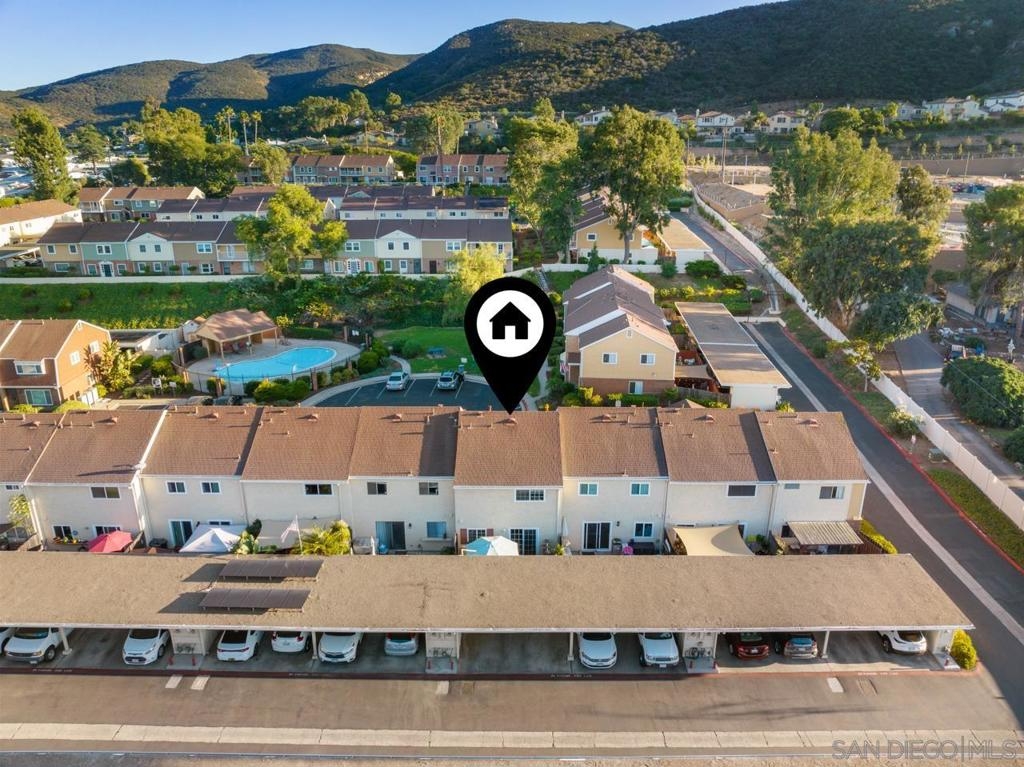 Experience comfortable living in this charming move-in ready townhouse. Nestled within a beautifully maintained, park-like complex, this home offers a tranquil retreat. Imagine lazy afternoons by the pool, just steps away, or entertaining friends and family on your oversized private patio, accessible directly from the two assigned parking spaces in the carport. Just off the carport is a large shed that provides ample storage and off the kitchen you will find a half bath and full sized laundry room. Enjoy convenience in this desirable West Santee location, with close proximity to many amenities and just a mile from Highway 52. Don't miss the chance to make this meticulously cared-for townhouse your own oasis.