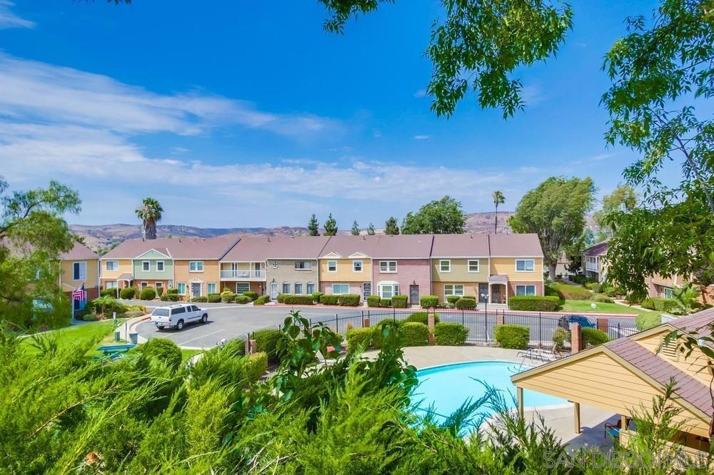 Inviting well-maintained townhome with bright rooms, large windows and two assigned parking spots! Upgraded bathrooms and well appointed kitchen boasting matching stainless steel appliances, pantry and a built in microwave. This unit has newer vinyl flooring and a full bath downstairs. Comfortable and open main living area complemented by a ceiling fan and cool A/C. Convenient direct access from parking to kitchen through gated patio with shady pergola. Ample storage with walk in plus secondary closet in primary bedroom, large linen closet upstairs and two outdoor storage units. Complex features a tot lot, pool and nearby guest parking. Santee is known for Santee Lakes & camping, Summer concerts and community events as well as pickle ball and disc golf rec areas.