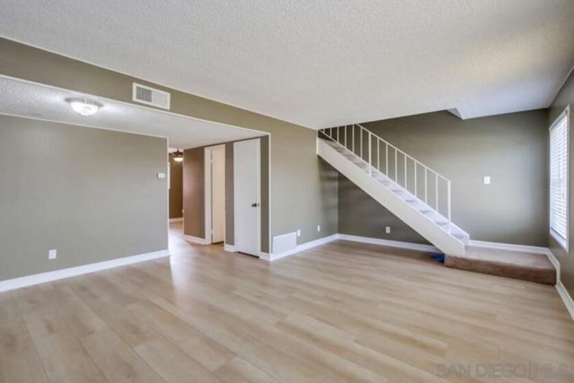 Inviting well-maintained townhome with bright rooms, large windows and two assigned parking spots! Upgraded bathrooms and well appointed kitchen boasting matching stainless steel appliances, pantry and a built in microwave. This unit has newer vinyl flooring and a full bath downstairs. Comfortable and open main living area complemented by a ceiling fan and cool A/C. Convenient direct access from parking to kitchen through gated patio with shady pergola. Ample storage with walk in plus secondary closet in primary bedroom, large linen closet upstairs and two outdoor storage units. Complex features a tot lot, pool and nearby guest parking. Santee is known for Santee Lakes & camping, Summer concerts and community events as well as pickle ball and disc golf rec areas.