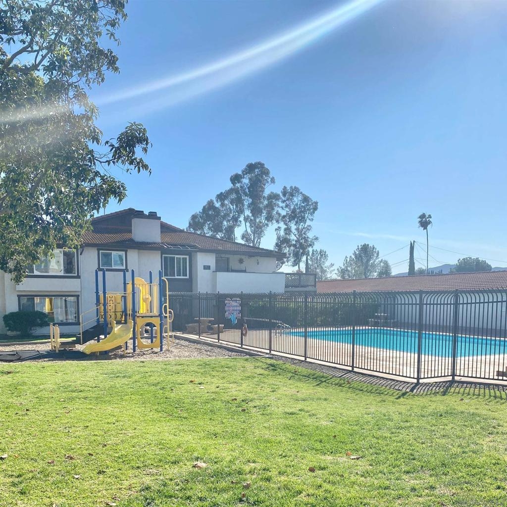 Updated, Single level, Clean 3 Bed/2 Bath corner unit upstairs in a prime Santee GATED Community! Unit includes One Car Detached Garage and One designated parking space, Large Enclosed Private Balcony, Spacious living room with fireplace and FULL SIZE In-unit Laundry Closet! This unit boasts extra large, updated vanities in both bathrooms, lots of natural light, mirrored wardrobe doors, vinyl plank flooring and tons of storage! Central location to conveniences, schools and surrounding freeways makes for easy commute. Complex offers a low $180/mo HOA offering multiple pools/spas, playground, dog run, tons of greenspace, excellent upkeep, fully gated entries and is VA Approved! Complex Features: ,,, Sewer: Public Sewer Topography: LL