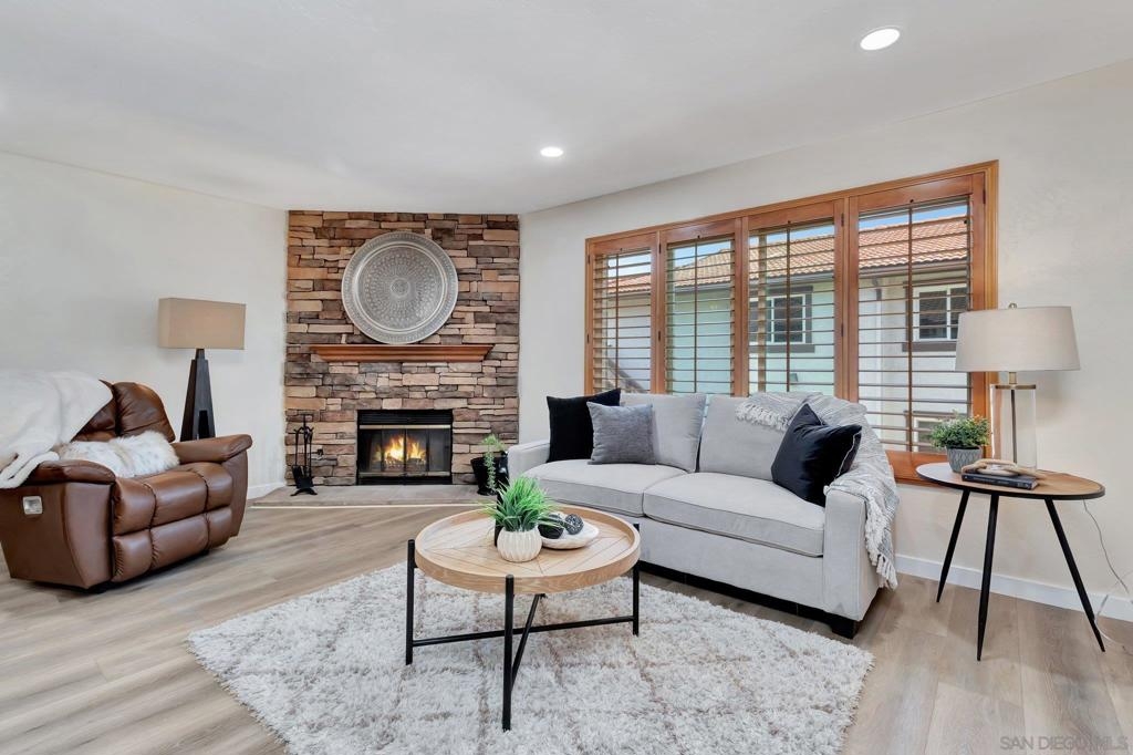 Step into the tranquil embrace of Riderwood Gardens, an exclusive gated enclave nestled in the heart of Santee, CA. This recently updated 3-bedroom, 2-bathroom condo awaits, offering a refined sanctuary on the second floor. Indulge in the luxury of all-new 20mil LVP flooring that spans the entire unit, complemented by freshly installed recessed lighting, paint, door hardware, and baseboards. Dual-paned windows invite natural light to dance gracefully throughout, while cedar-lined closets provide a touch of rustic elegance. The primary retreat beckons with an en-suite bathroom featuring a jetted tub/shower combo, alongside a meticulously organized closet. Gas cooking and granite countertops adorn both the kitchen and bathrooms, enhancing both form and function. Convenience is key with included washer and dryer nestled within the in-unit laundry closet. Your abode is accompanied by a personal 1-car garage and an additional parking space, situated nearby for ease of access. Beyond the confines of your home, Riderwood Gardens boasts an array of community amenities, including two pools, three parks, and meticulously manicured grounds. Enjoy the convenience of proximity to schools, grocery stores, parks, and restaurants, all within walking distance of your doorstep. Welcome to a lifestyle of comfort, convenience, and community at Riderwood Gardens.